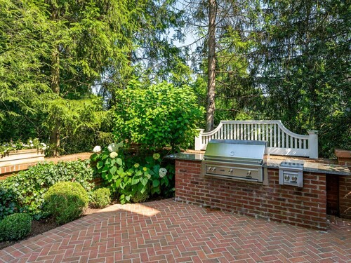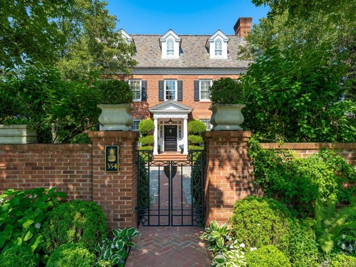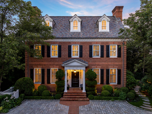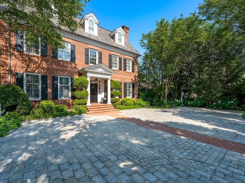 Experience extraordinary living in this sophisticated, estate-style majestic brick townhouse with slate roof - a truly unique custom-built home showcasing timeless elegance & impeccable architectural detail across 4 expansive levels. A gracious gated entrance opens to a charming cobblestone courtyard, setting the stage for an unmatched living experience. Inside, you'll find beautifully appointed formal living and dining rooms, both featuring elegant fireplaces & rich millwork. The heart of the home is the open-concept chef's kitchen, with a spacious breakfast area & inviting family room with coffered ceiling & fireplace. Walk out to the professionally landscaped brick patio, where you'll enjoy a built-in BBQ, outdoor fireplace, & covered seating areas-perfect for year-round entertaining. The luxurious primary suite is a private retreat, offering a cozy sitting area, fireplace, dual dressing rooms, & 2 spa-inspired ensuite bathrooms. 4 additional bedrooms-each with their own ensuite bath & walk-in closet-ensure ultimate comfort & privacy for family & guests. The home also features 3 dedicated home offices, ideal for today's flexible lifestyle, & an elevator. The impressive lower level is designed for entertaining & relaxation, featuring a fireplace, coffered ceiling, bar, wine cellar, billiards, & well-appointed exercise room. Professionally landscaped with mature trees & perennial gardens, offers exceptional privacy & natural beauty. An architectural masterpiece.