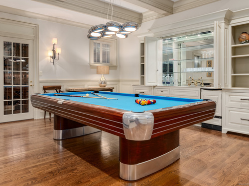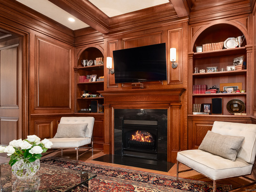 9 ft+ Ceilings, Built-Ins, Wet Bar, Gas Log Fireplace, Hardwood Floor
