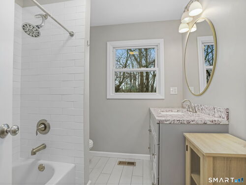 Welcome to 36 Craig Lane - a mint-condition, move-in ready home ideally located in a convenient center-of-town Trumbull neighborhood. Offering over 1,500 SF of living space with city water and city sewer, this home has been thoughtfully updated and impeccably maintained, making it an exceptional value in today's market. The exterior features low-maintenance vinyl siding, a new paver walkway, and the added bonus of an EV charging station. Inside, the home has been professionally painted throughout and showcases beautifully refinished hardwood floors and upgraded lighting and electrical fixtures. The updated kitchen is both stylish and functional with shaker-style white cabinetry trimmed to the ceiling, a center island with seating, light stone countertops, and newer appliances. The sun-filled living room features an expansive picture window and a stunning white-washed fireplace with a reclaimed wood mantel as the focal point. An enclosed sunroom/den with vaulted ceiling and lots of windows offers a flexible space for relaxing, working, or entertaining. The finished lower level adds valuable bonus space with newer flooring, sheetrock ceiling, and recessed lighting. Step outside to a back deck overlooking a private yard, perfect for gatherings or quiet enjoyment. A turnkey opportunity in a desirable Trumbull location - simply unpack and enjoy.