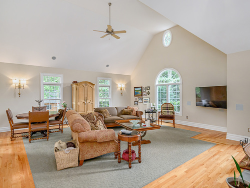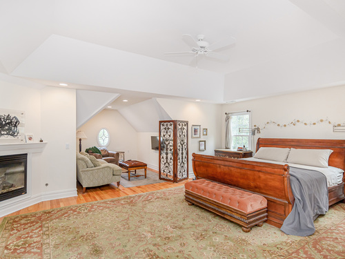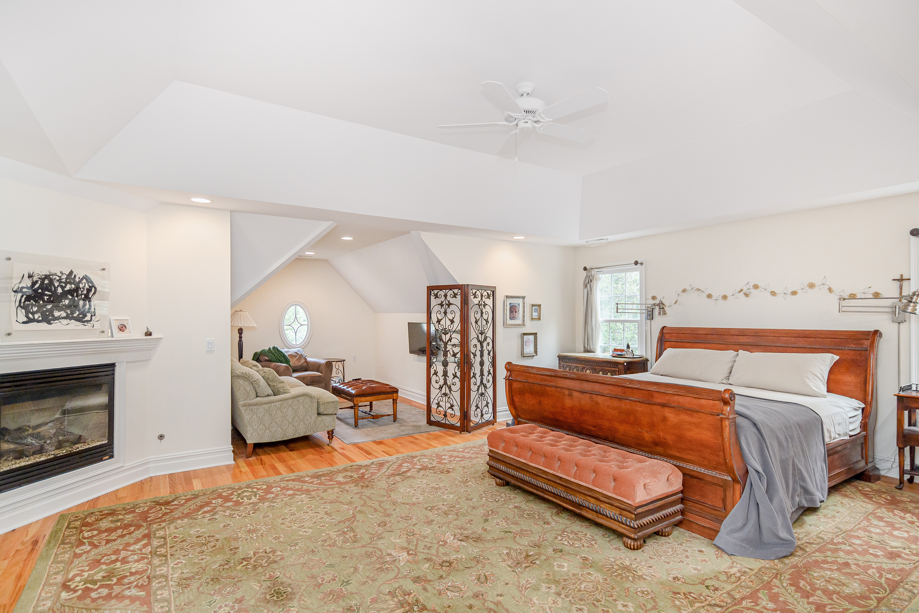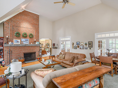 Vaulted Ceiling, Ceiling Fan, Fireplace, Hardwood Floor