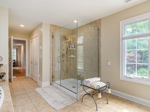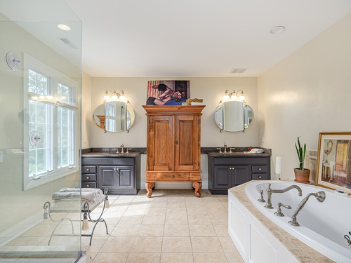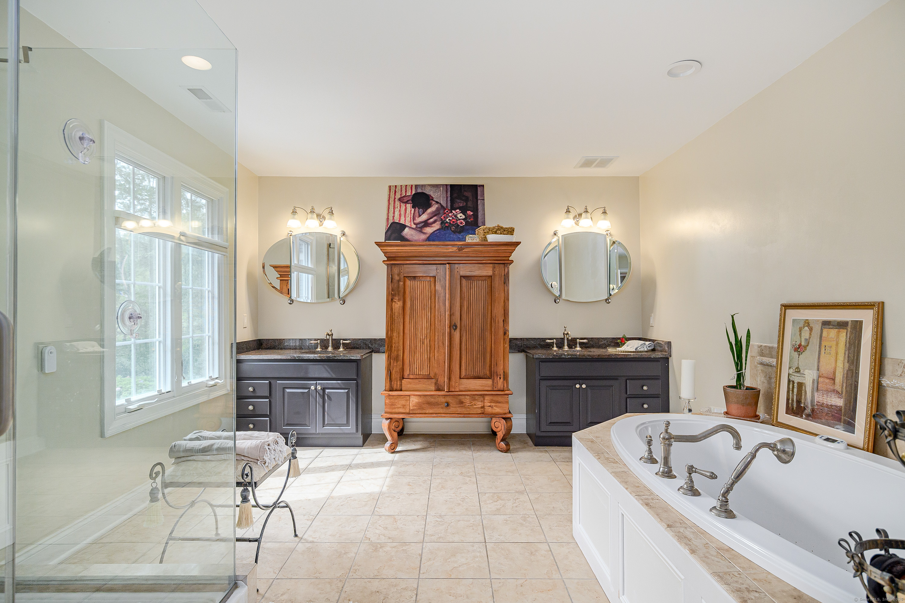 Granite Counters, Double-Sink, Stall Shower, Whirlpool Tub, Tile Floor