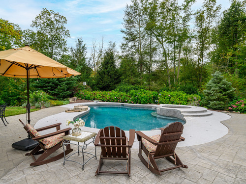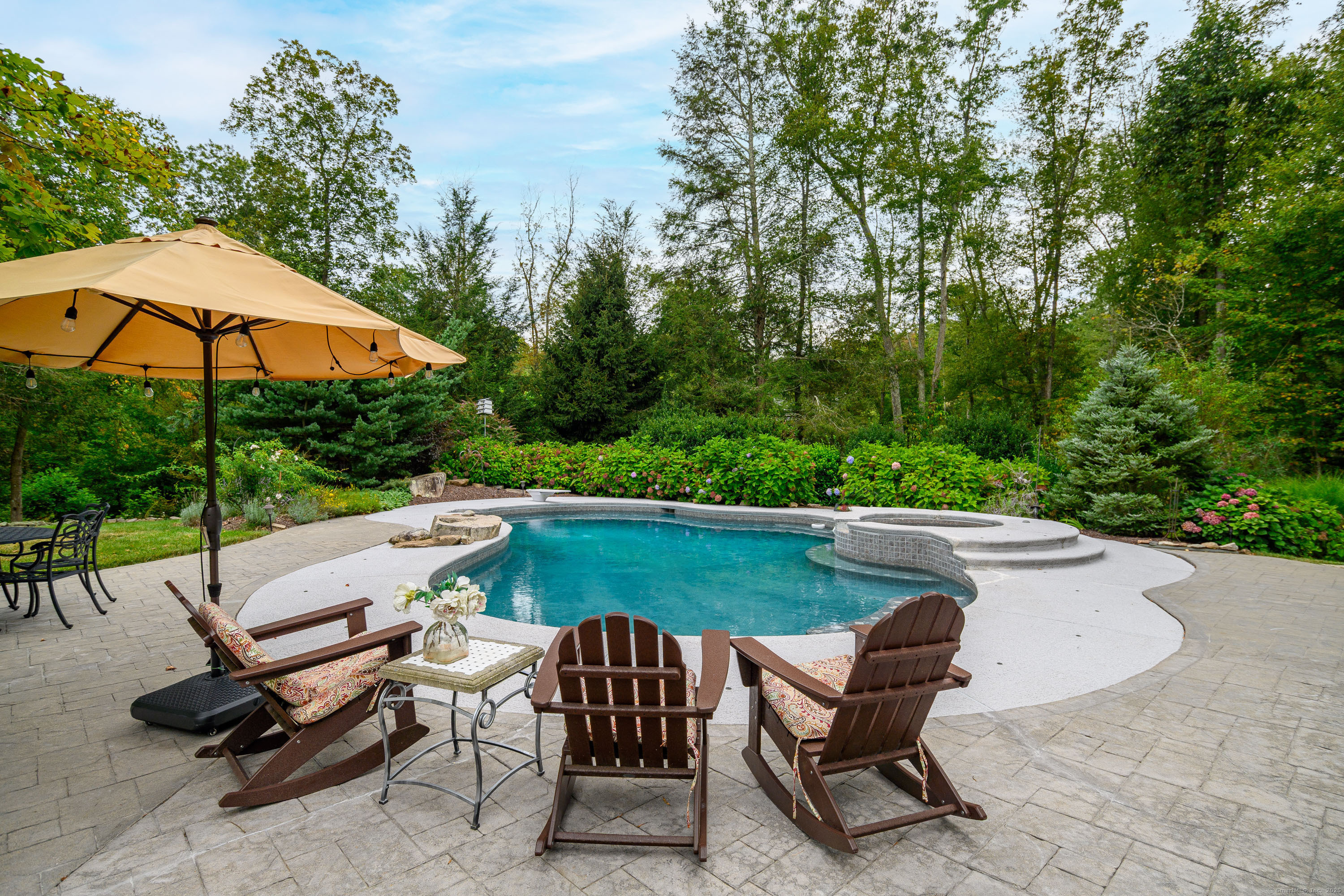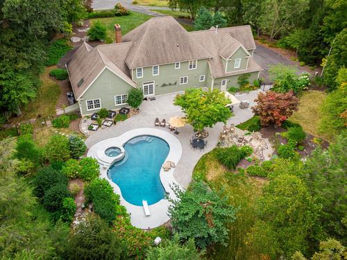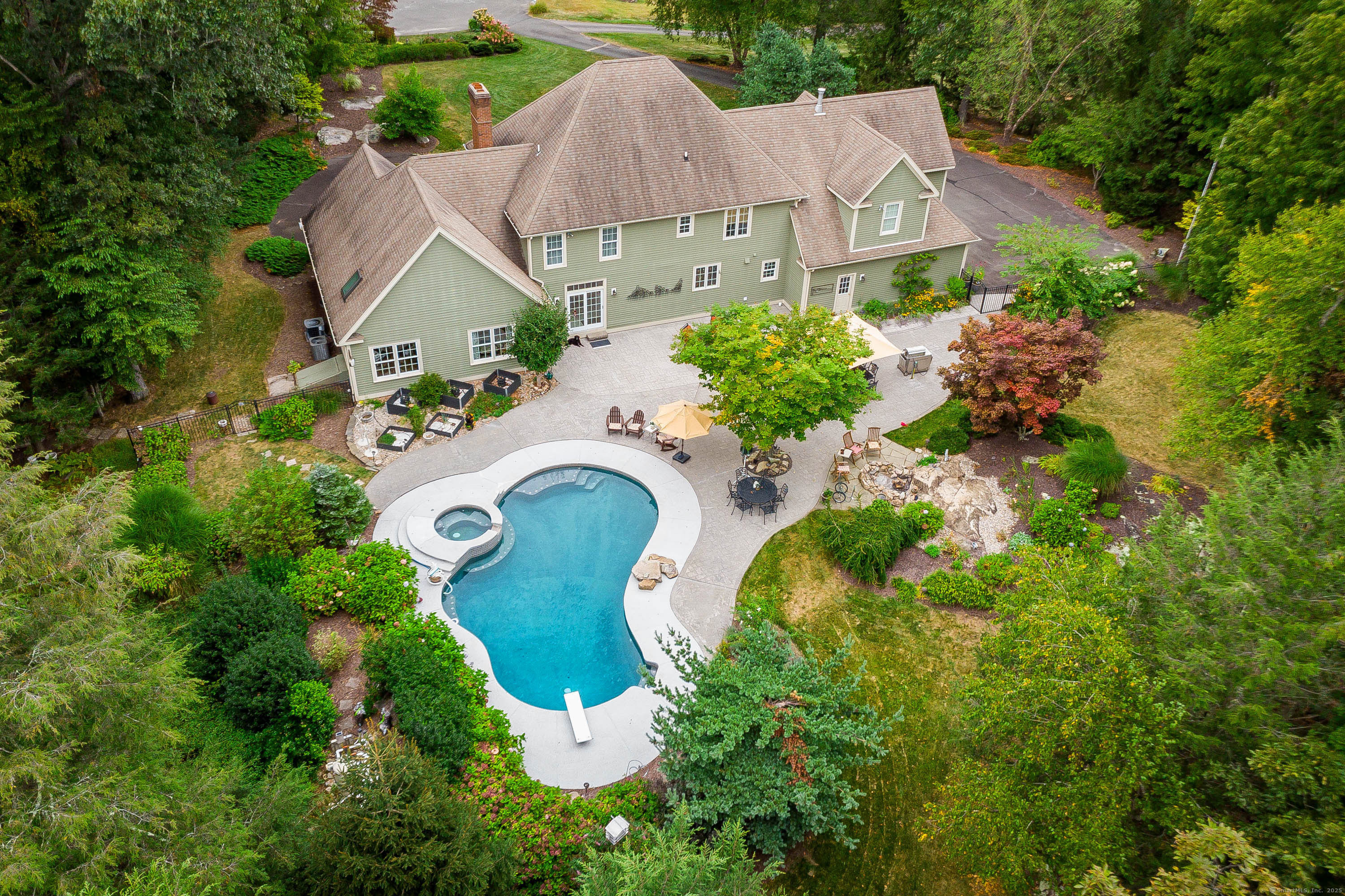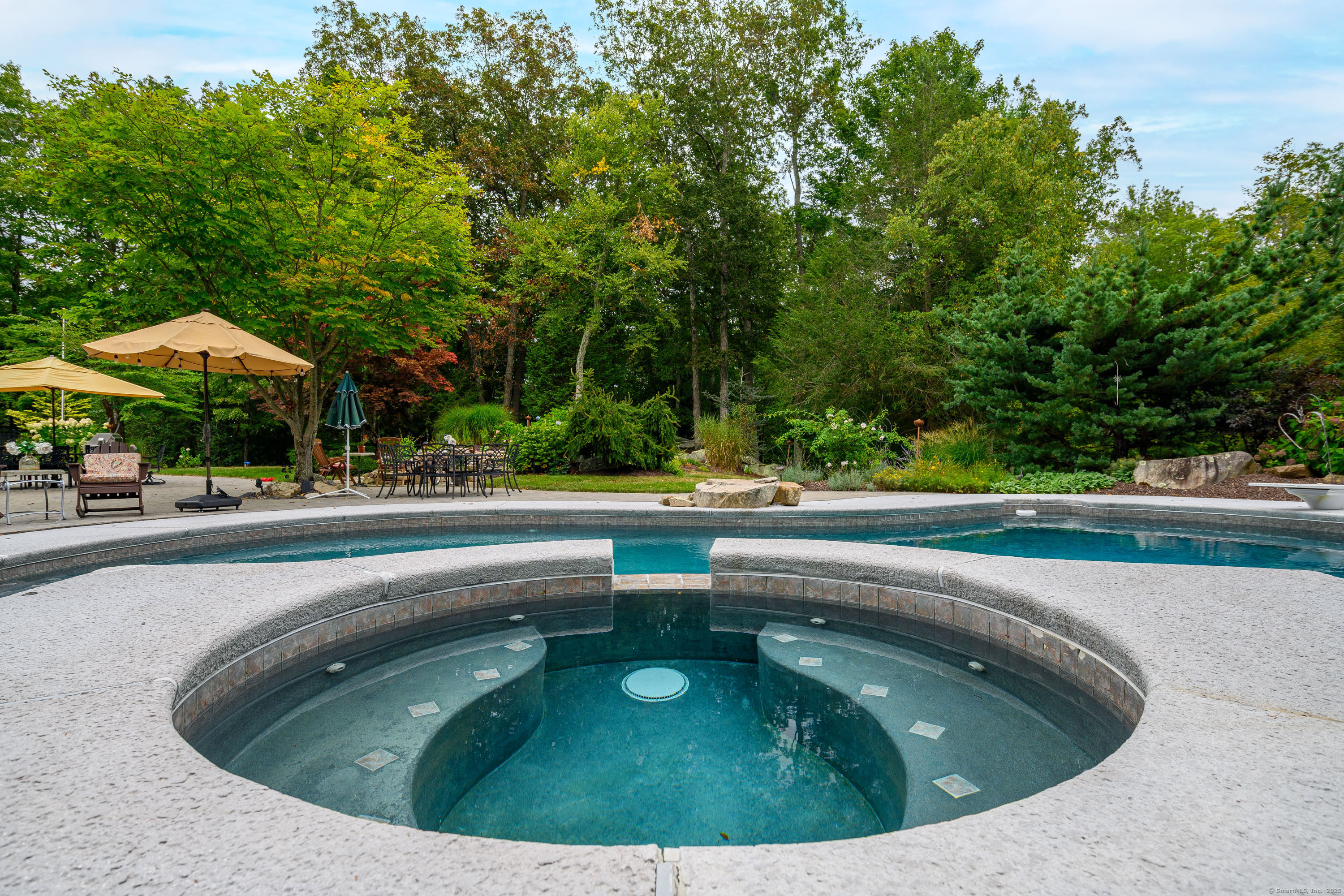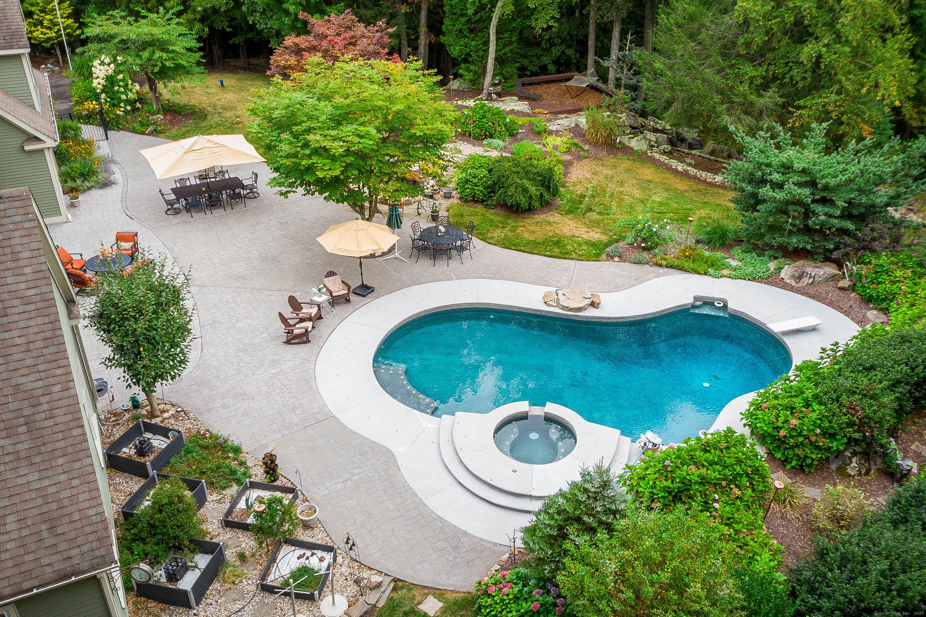 Nestled at the end of a peaceful cul-de-sac, this stunning home offers access to the scenic trails of Paugussett State Forest. Set on 2.1 acres of beautifully landscaped grounds, this private oasis features a heated gunite pool and spa, surrounded by a spacious, resort-style outdoor living area-ideal for relaxation and entertaining. Inside, the flexible floor plan offers room to grow and adapt, with 4 generously sized bedrooms and 3.5 bathrooms. Detailed with extensive trimwork throughout, the home exudes elegance and craftsmanship in every room. Whether you're seeking tranquility, space to entertain, or access to nature right from your backyard, this property offers it all. Don't miss the opportunity to make this serene retreat your own!