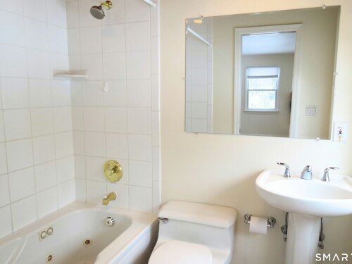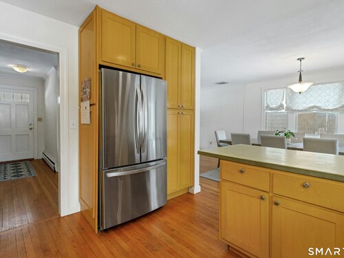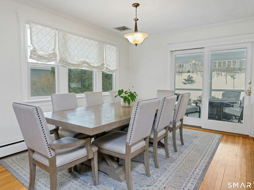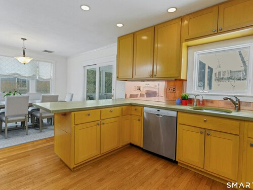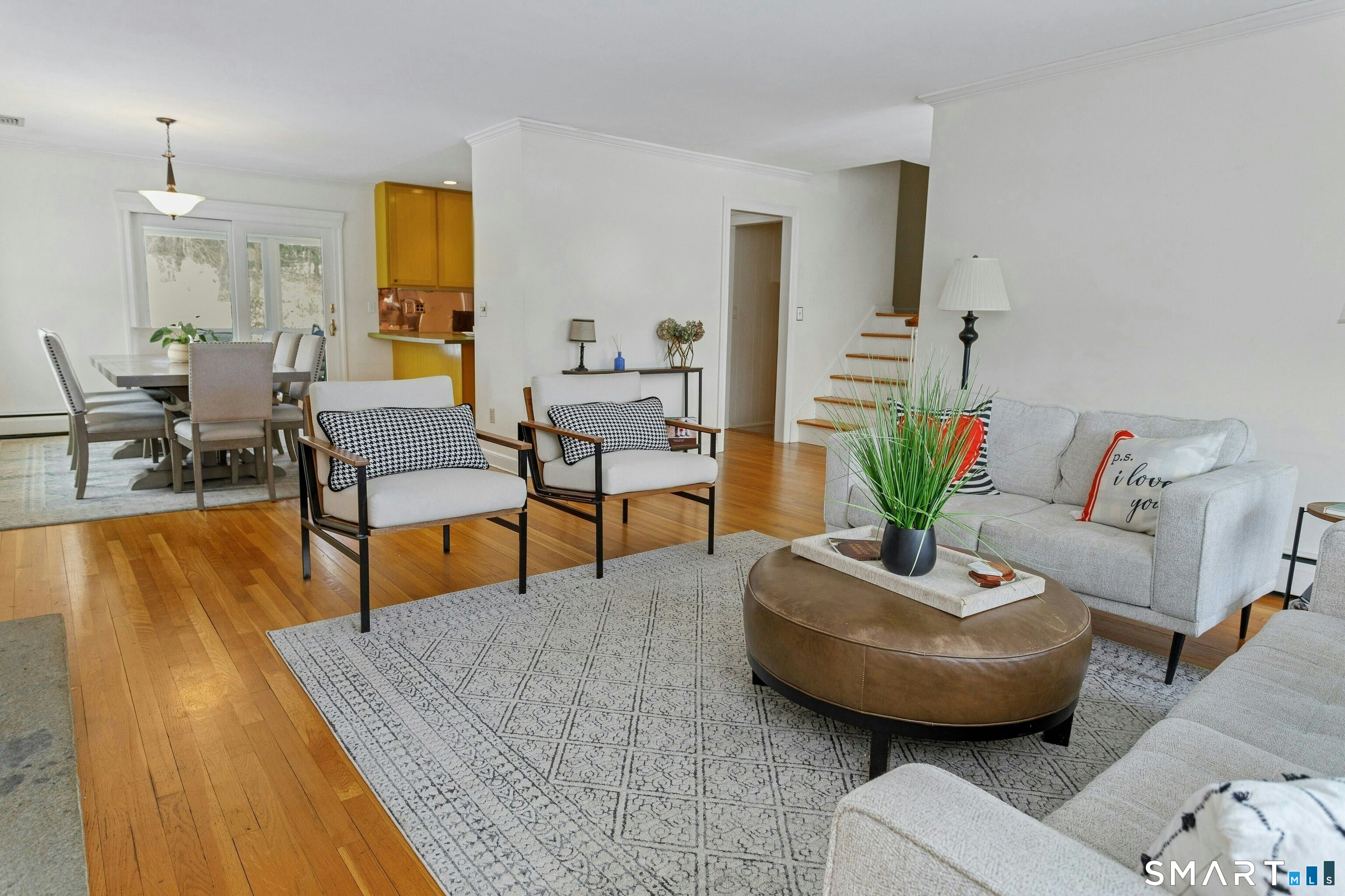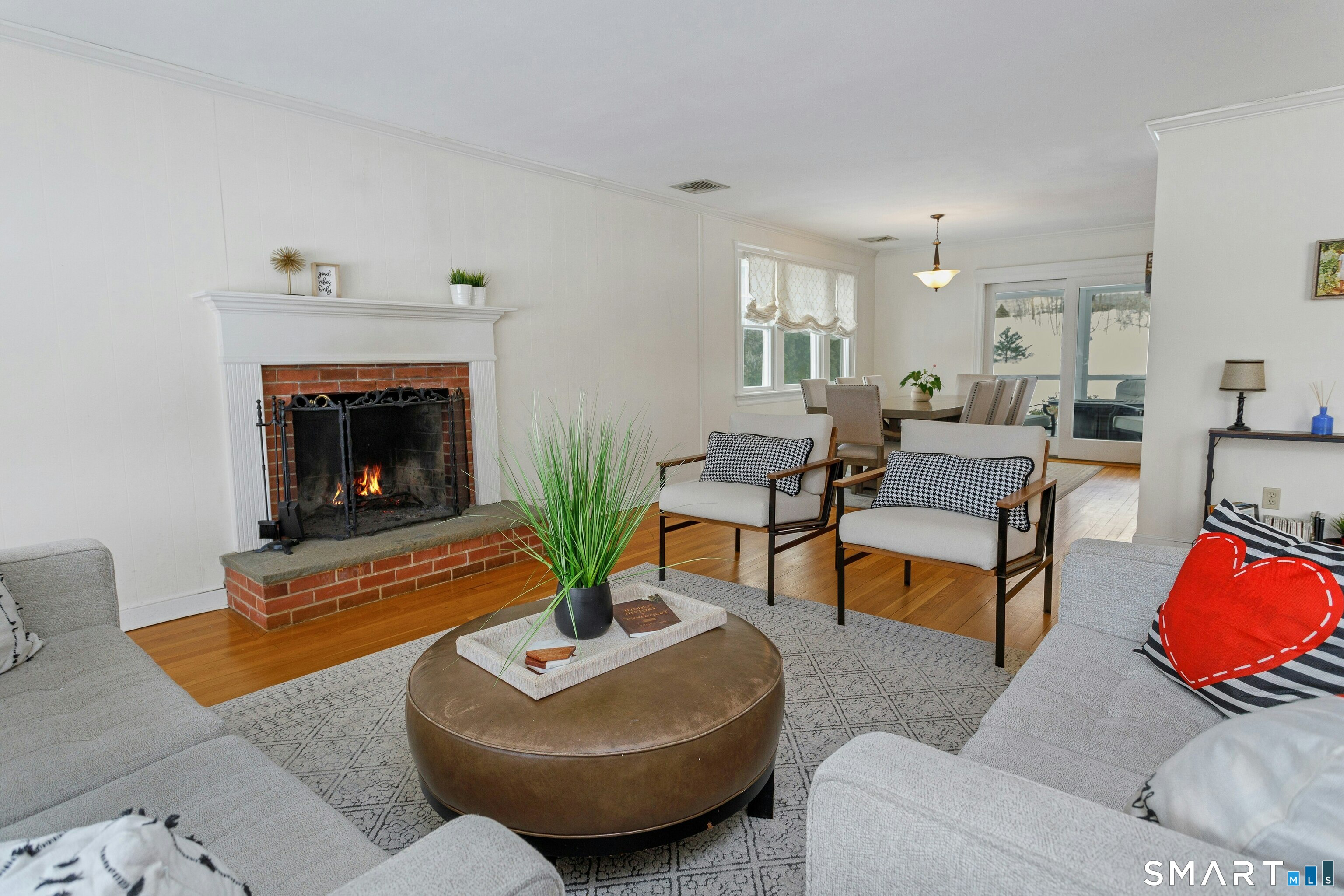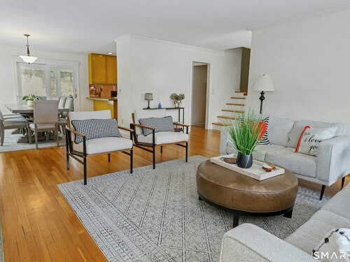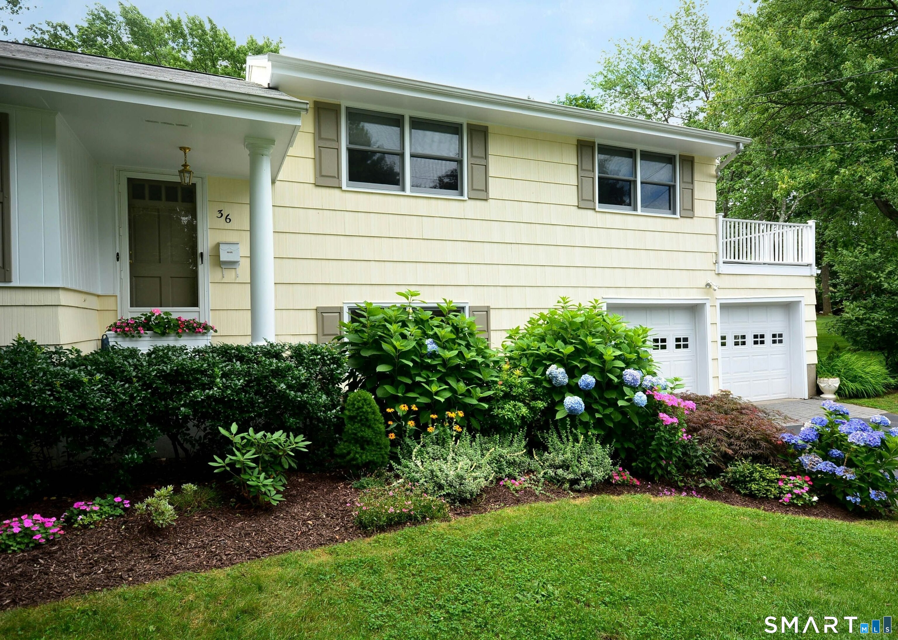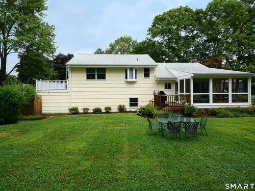 Location dream! Charming Colonial styled split level home is picture perfect in sought after neighborhood with newly paved sidewalks to schools, YMCA, Waveny Park and town! This well cared for home lives large with over 2200SF and an open concept flow. Sunny and spacious Living and Dining areas open to a fabulous screened porch and deck overlooking the manicured yard. Enjoy mature landscaping and room for playscapes and lawn games. The bay window and wood-burning fireplace are the focal points in the Living Room and the Dining area opens to Kitchen with custom wood cabinets, Viking gas cooktop & stainless appliances. A main floor family room is convenient with laundry room and access to garage while the lower level media room w/closet can be additional guest area, playroom or office. Hardwood floors throughout offer a contemporary feel. The spacious upstairs Primary Suite has walk-in closet, full bath and opens to an upper level deck. Two other good sized bedrooms and full bath across the hall. Extra deep two car garage and large parking area in driveway allows plenty of space for a bball hoop! Town water and sewer and natural gas hook-up in street for easy switch if desired as well as expansion possibilities make this home a great opportunity. Being sold as is. Tenants are currently in place, Showing appts required.