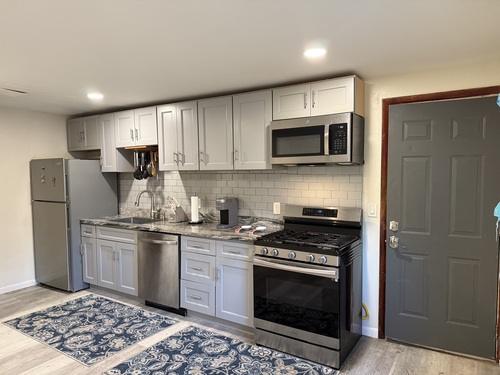 Beautiful Cape Cod home in Bridgeport's desirable North End! The main level features 2 bedrooms, 1 full bath, an updated kitchen with stainless steel appliances, and a cozy den with a fireplace and sliders leading to the backyard. The upper level is set up as an in-law space, offering a bedroom, full bath, kitchen, and private balcony with sliding doors. The finished lower level adds valuable living space with an additional full bathroom-ideal for guests, recreation, or extended family. Outside, enjoy a large deck perfect for entertaining, plus the convenience of a one-car garage. Located close to Sacred Heart University, Trumbull Mall, Main Street, parks, the library, major highways, and more. A fantastic opportunity in a highly sought-after neighborhood!