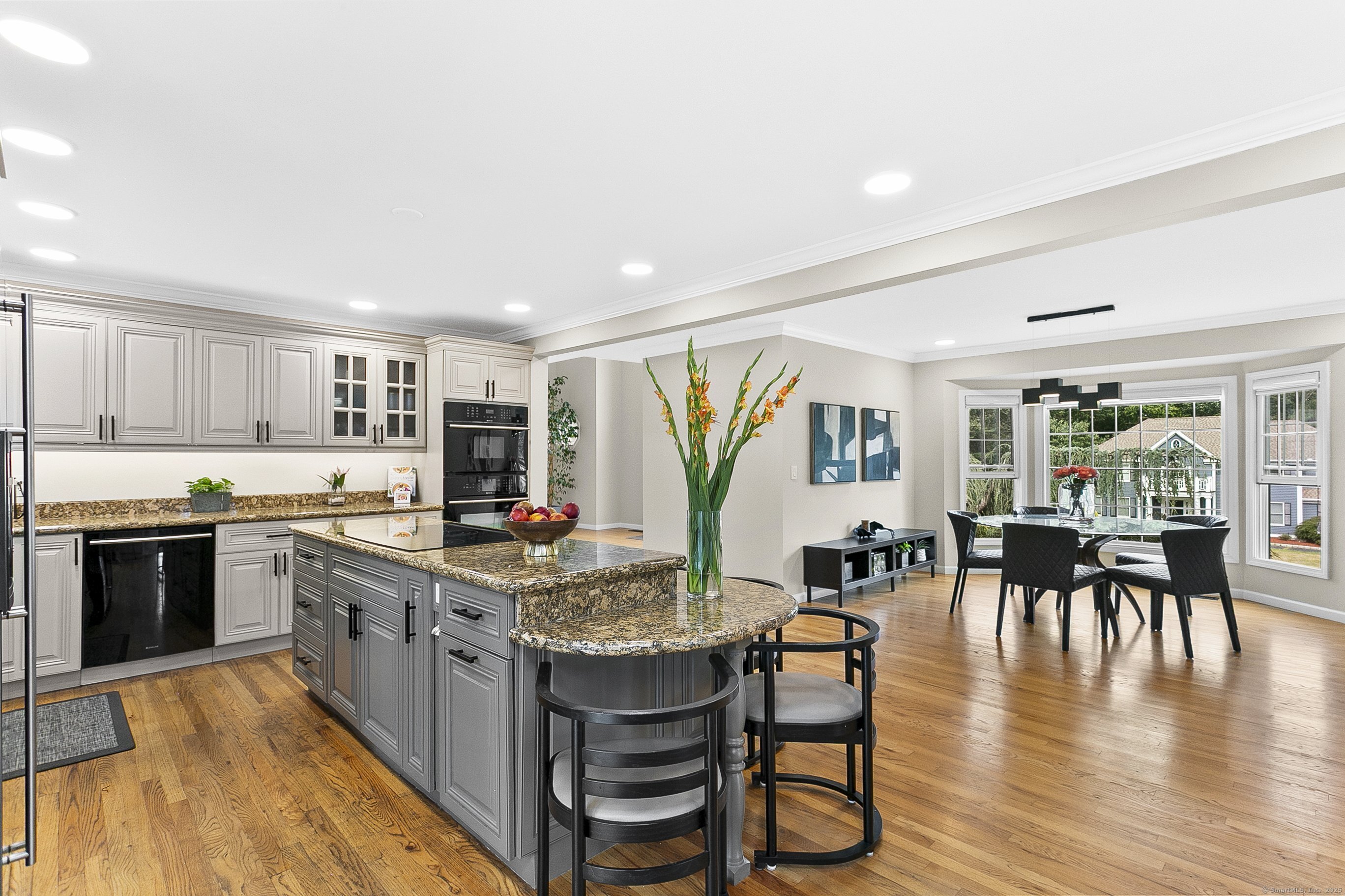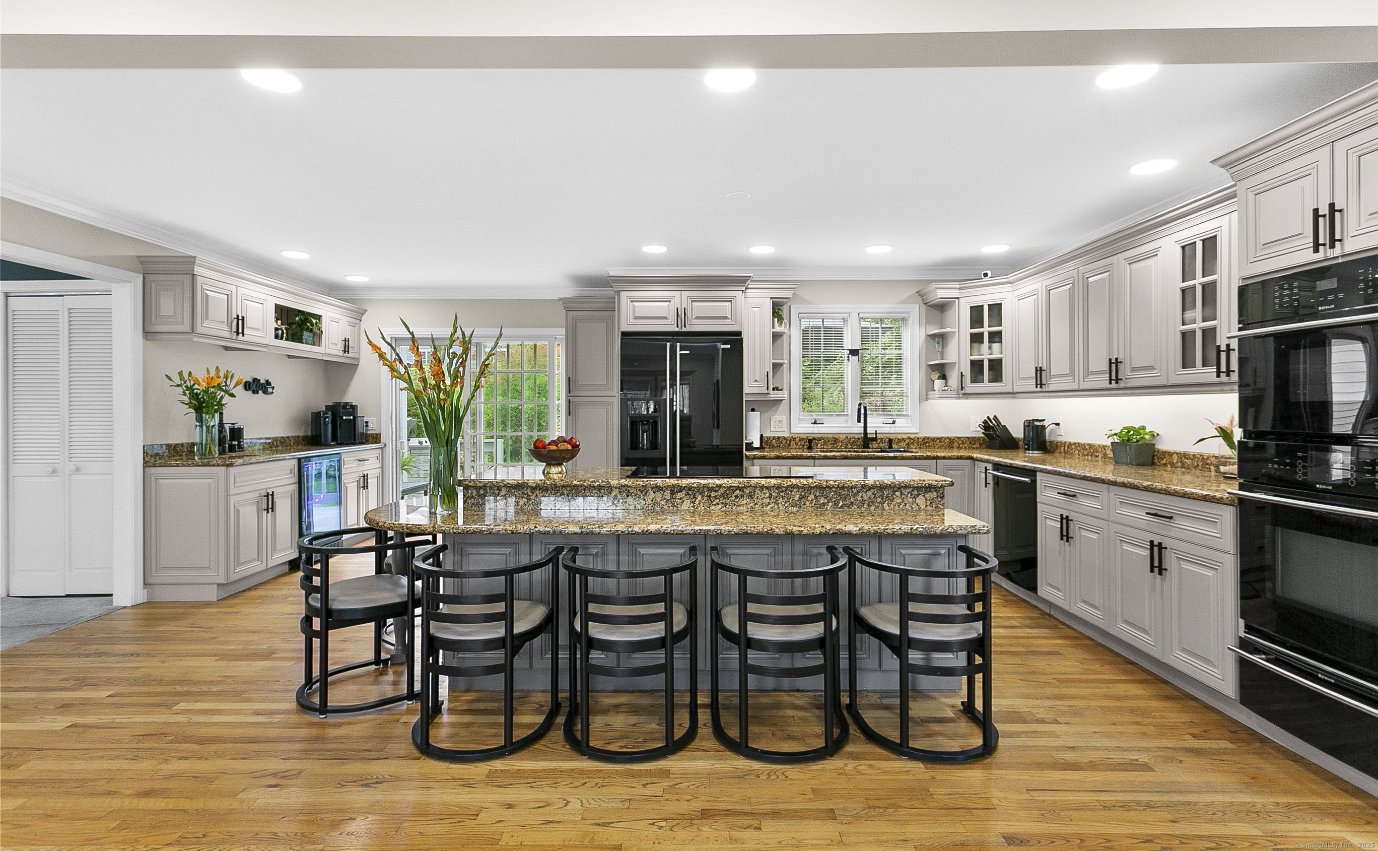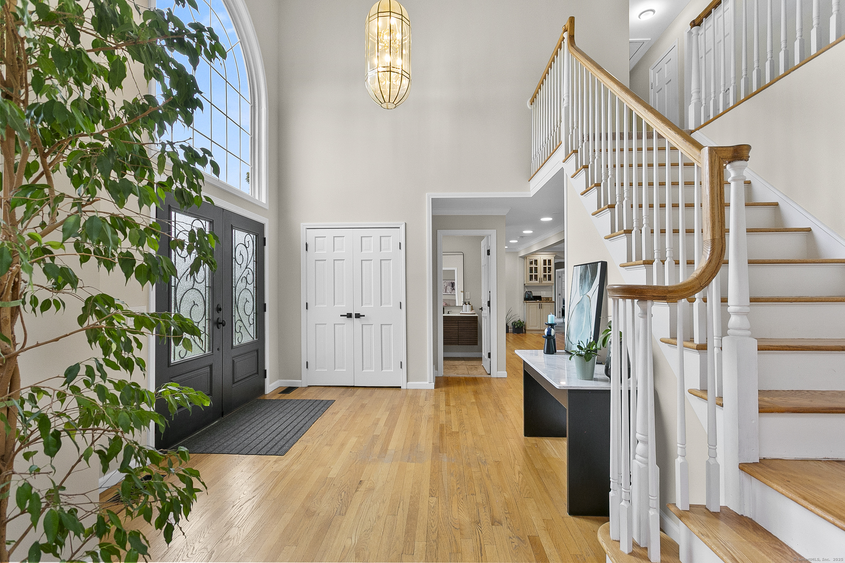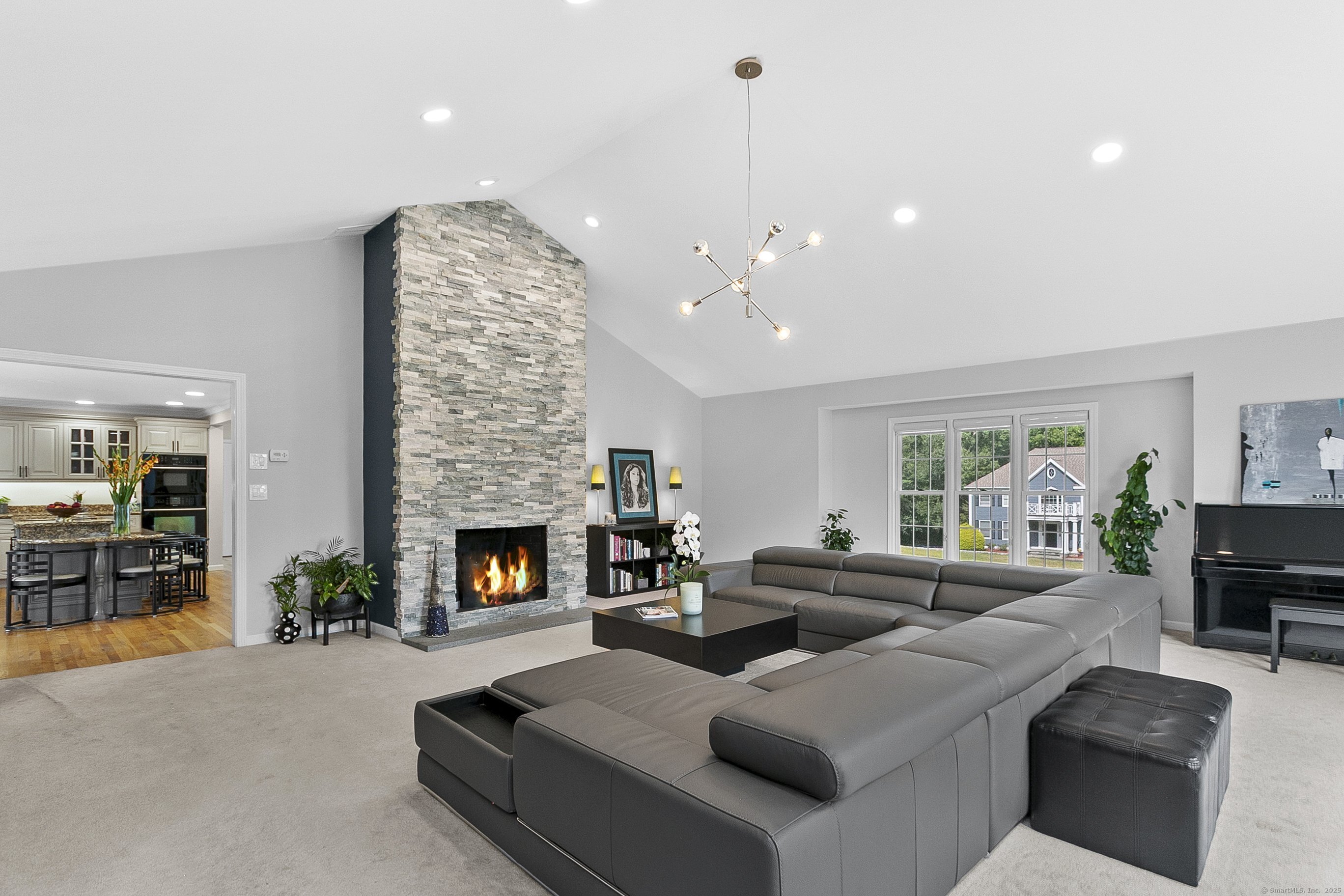 Welcome to a gracious 4,287-sq-ft, 5-bed, 4.5-bath home designed for hosting and everyday ease-set on a private 1-acre lot in Trumbull, tucked away yet 3 minutes to Rt. 25 and connected to Tashua School (K-5), with gas heat and potential space for a future pool. The heart of the home is a massive, chef-ready kitchen with counter bar, cafe bar, twin ovens, and a sunny breakfast nook. It flows and connects to a spacious dining room and out to a rear deck and fire-pit patio-seamless indoor-outdoor entertaining. A secondary pantry doubles as a smart laundry/utility zone to keep cleanup out of sight. An oversized powder room and a welcoming foyer-overlooked by a balcony and statement chandelier-complete the arrival experience. A huge family room with fireplace opens to a large sunroom/office for comfortable living. The first-floor guest suite offers privacy with an en-suite bath and dedicated storage. Upstairs, the vaulted-ceiling primary suite features a bath with dual vanities and a jetted soaking tub. Bedroom 3 includes its own en-suite; Bedroom 4 is served by a twin-sink hall bath. Downstairs, lower level expands your living space and connects to a utility room and an attached three-car garage. Attic storage adds convenience. Nicely done circular driveway, Thoughtful and thorough landscaping ties the outdoor zones together.