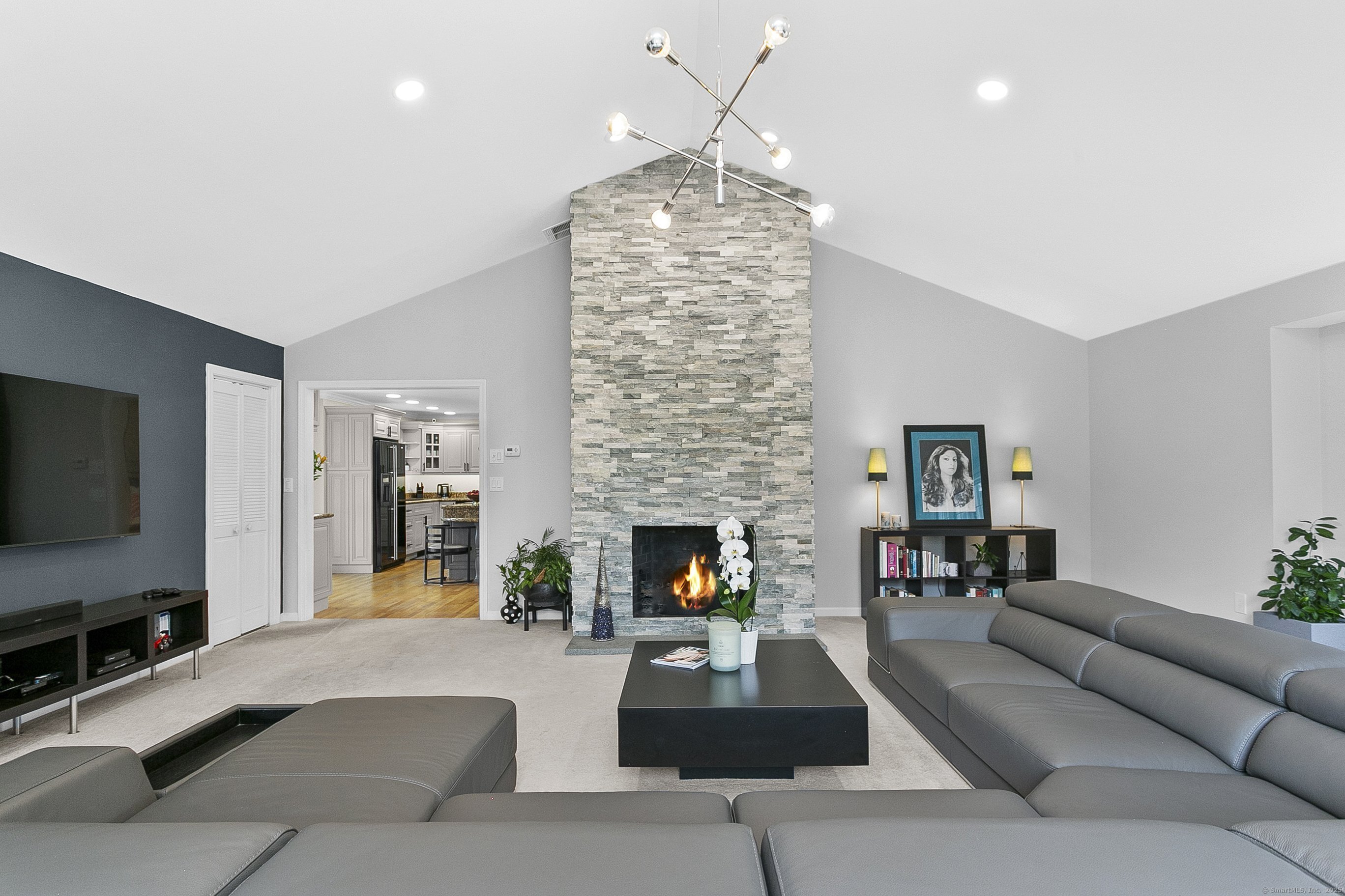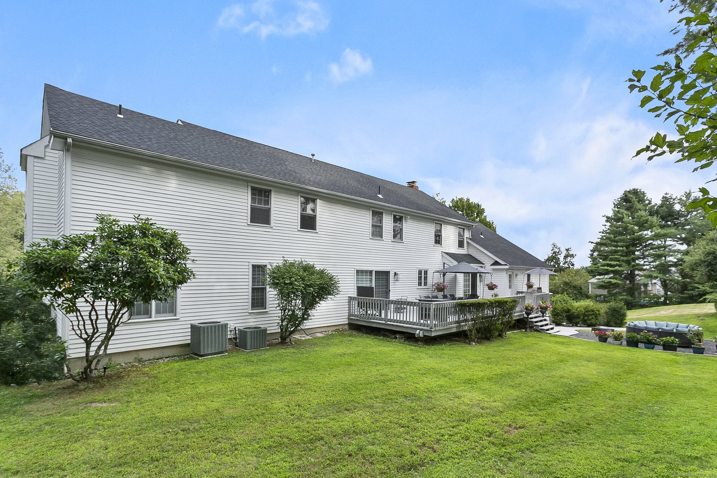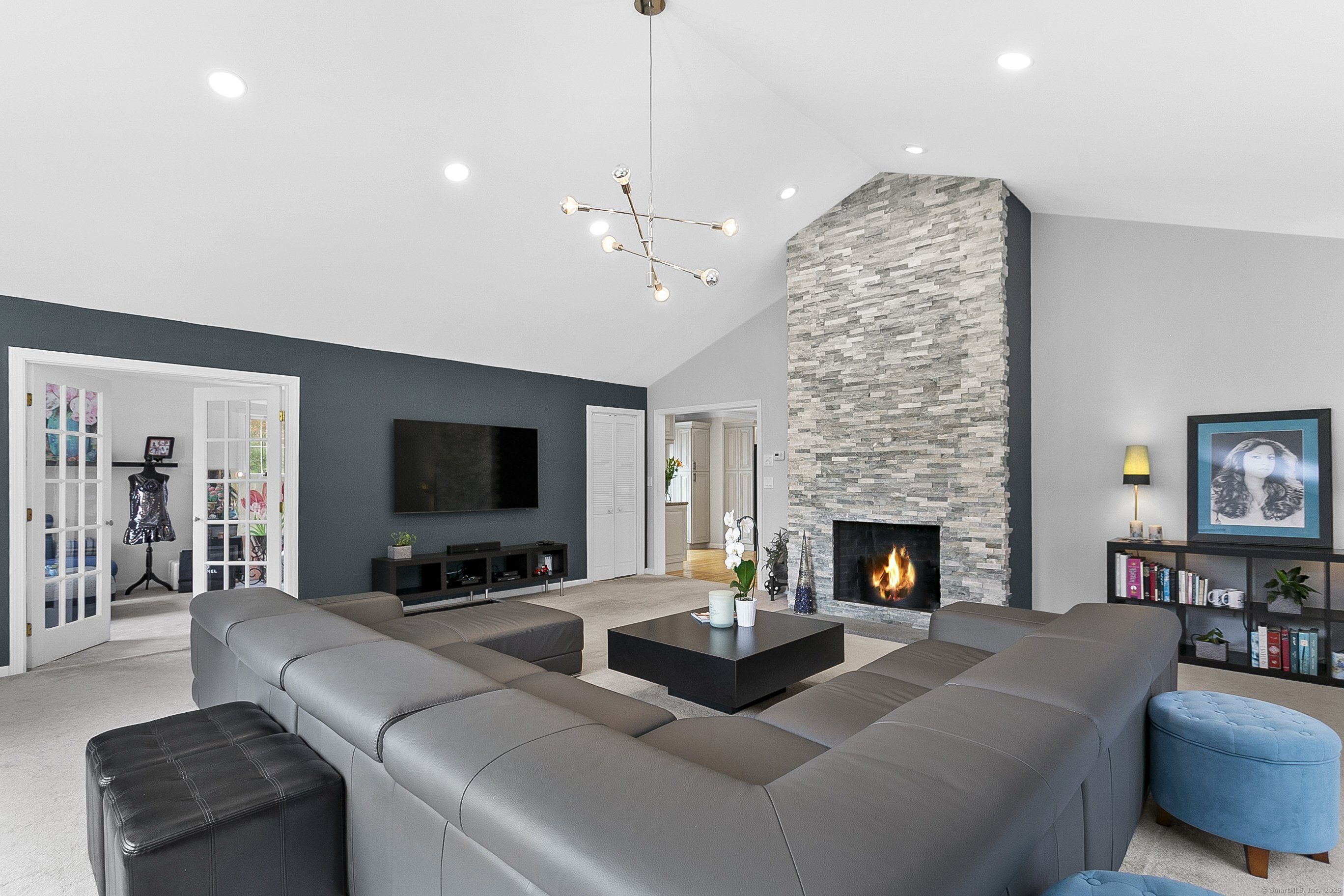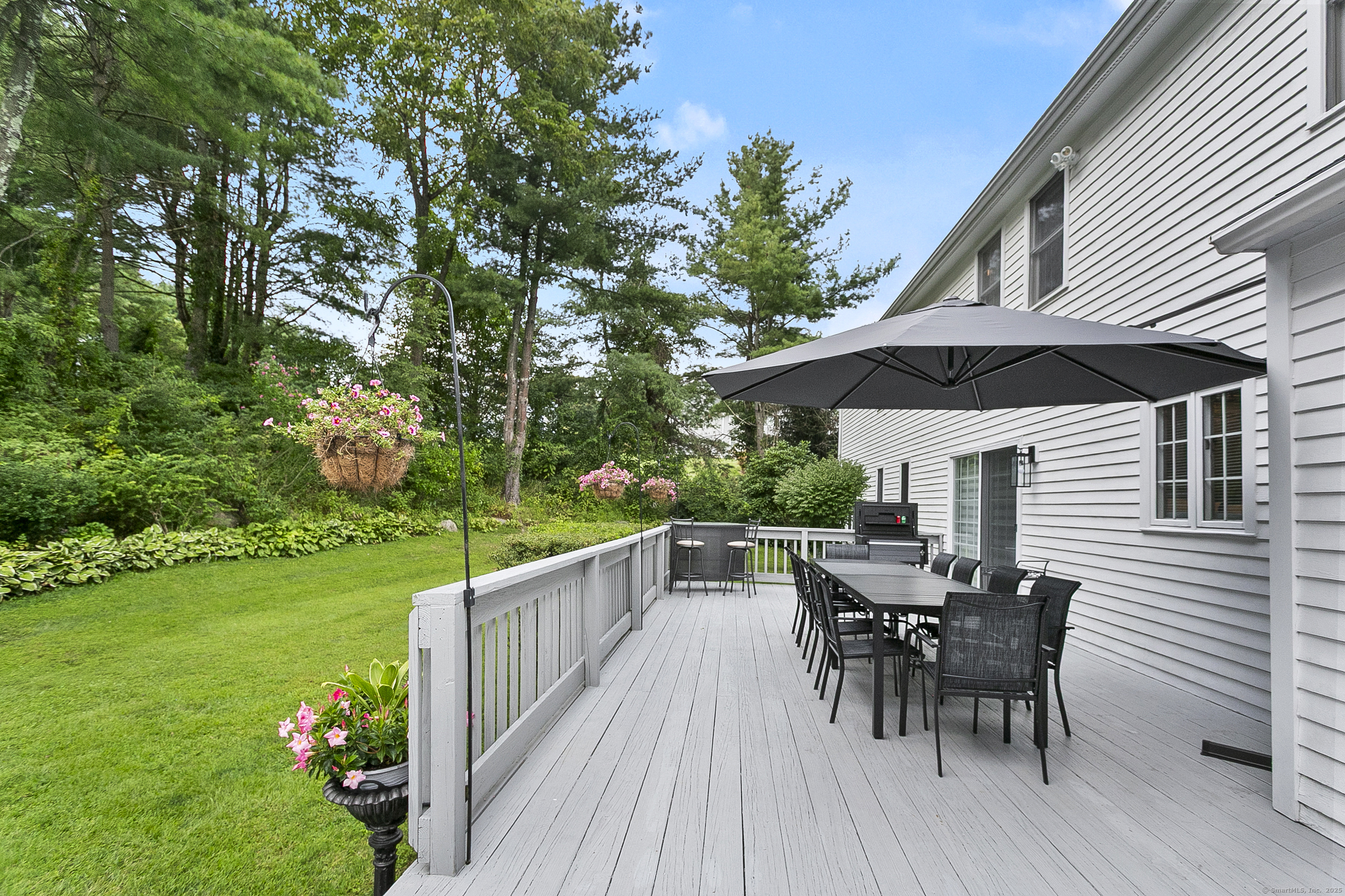 Welcome to a gracious 4,287-sq-ft, 5-bed, 4.5-bath home designed for hosting and everyday ease-set on a private 1-acre lot in Trumbull, tucked away yet 3 minutes to Rt. 25 and connected to Tashua School (K-5), with gas heat and potential space for a future pool. The heart of the home is a massive, chef-ready kitchen with counter bar, cafe bar, twin ovens, and a sunny breakfast nook. It flows and connects to a spacious dining room and out to a rear deck and fire-pit patio-seamless indoor-outdoor entertaining. A secondary pantry doubles as a smart laundry/utility zone to keep cleanup out of sight. An oversized powder room and a welcoming foyer-overlooked by a balcony and statement chandelier-complete the arrival experience. A huge family room with fireplace opens to a large sunroom/office for comfortable living. The first-floor guest suite offers privacy with an en-suite bath and dedicated storage. Upstairs, the vaulted-ceiling primary suite features a bath with dual vanities and a jetted soaking tub. Bedroom 3 includes its own en-suite; Bedroom 4 is served by a twin-sink hall bath. Downstairs, lower level expands your living space and connects to a utility room and an attached three-car garage. Attic storage adds convenience. Nicely done circular driveway, Thoughtful and thorough landscaping ties the outdoor zones together.