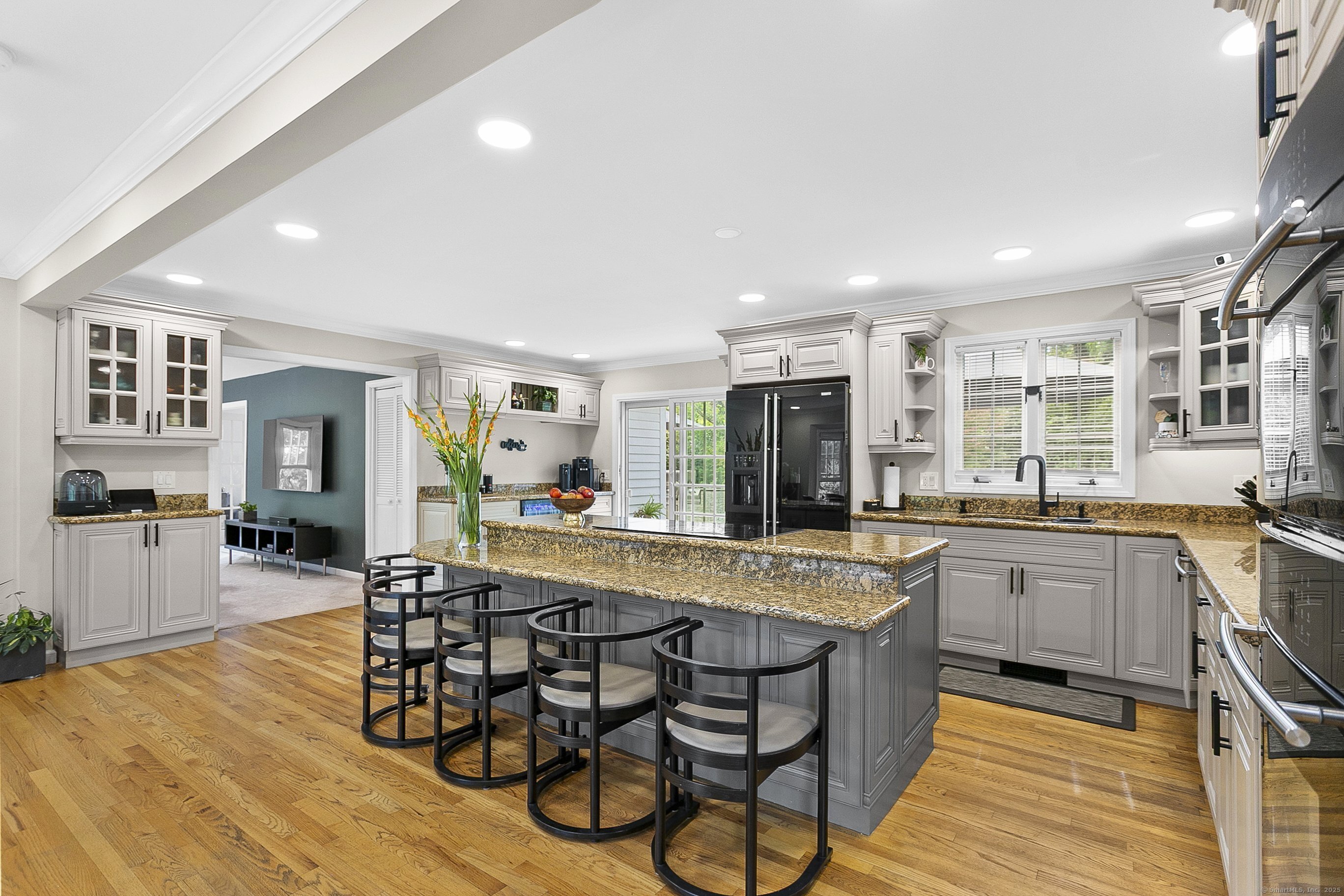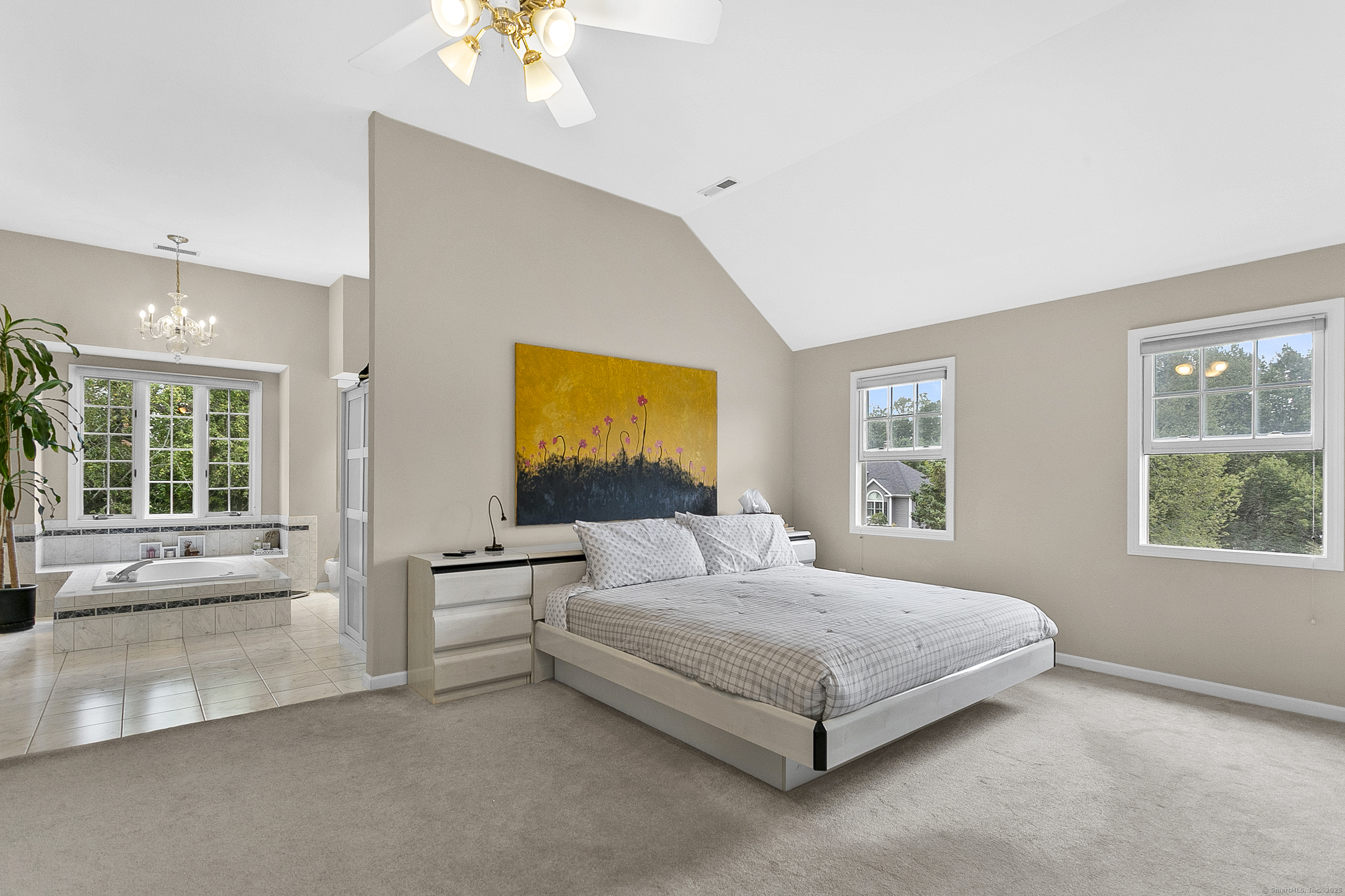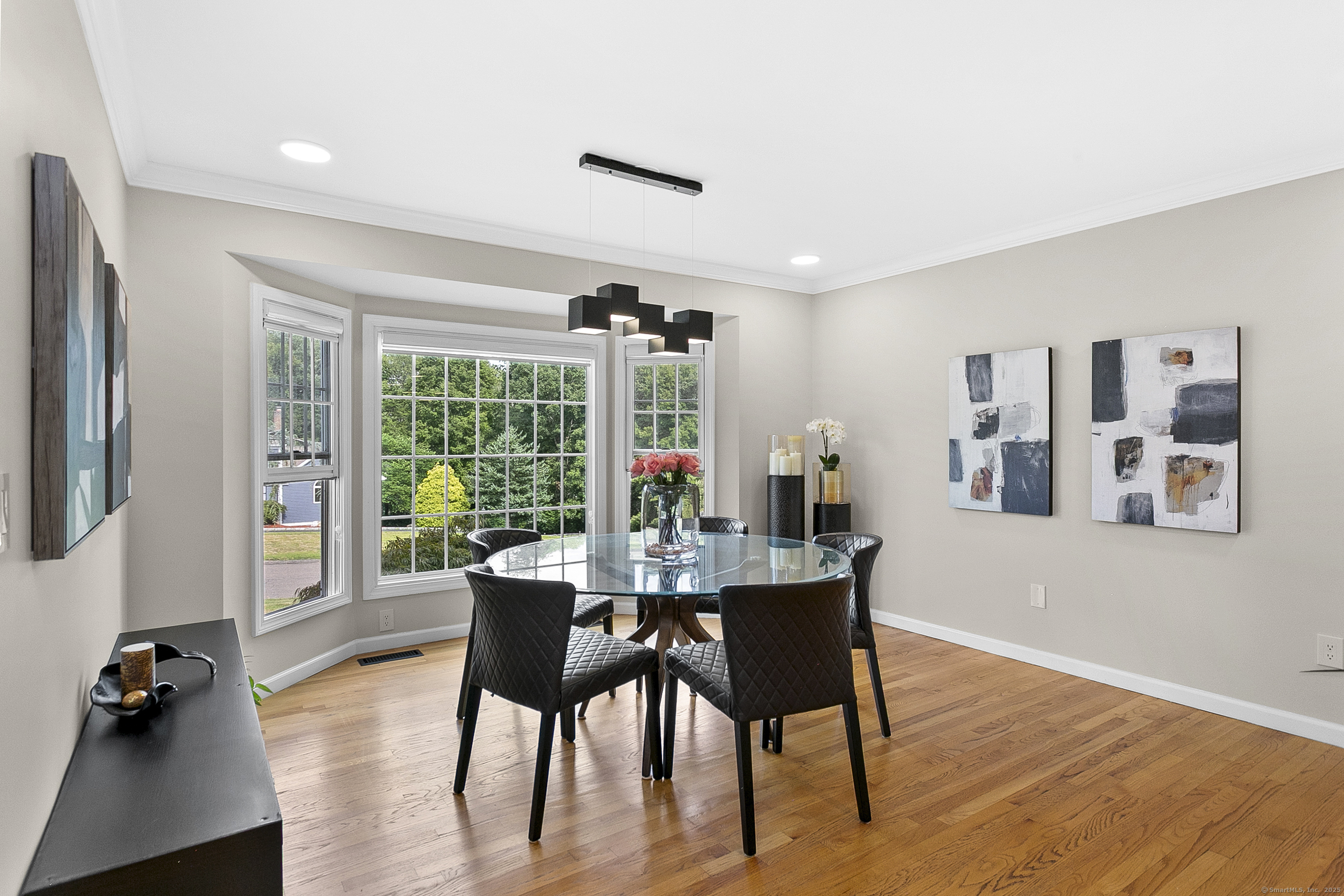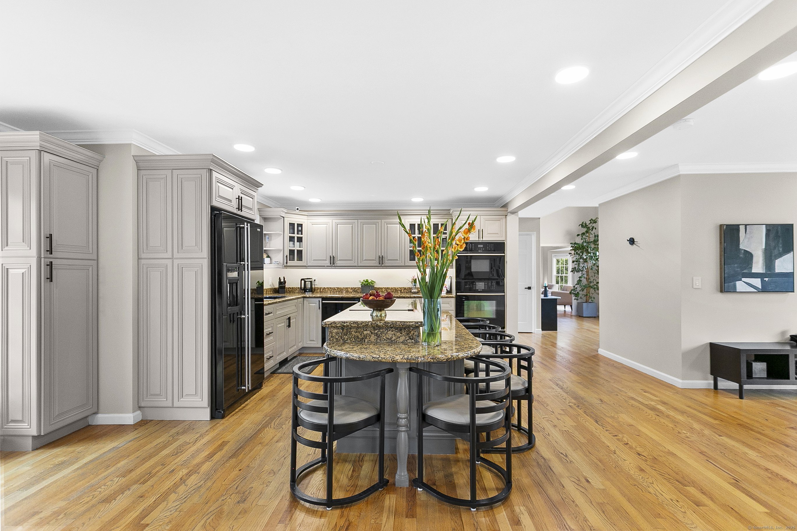 Welcome to a gracious 4,287-sq-ft, 5-bed, 4.5-bath home designed for hosting and everyday ease-set on a private 1-acre lot in Trumbull, tucked away yet 3 minutes to Rt. 25 and connected to Tashua School (K-5), with gas heat and potential space for a future pool. The heart of the home is a massive, chef-ready kitchen with counter bar, cafe bar, twin ovens, and a sunny breakfast nook. It flows and connects to a spacious dining room and out to a rear deck and fire-pit patio-seamless indoor-outdoor entertaining. A secondary pantry doubles as a smart laundry/utility zone to keep cleanup out of sight. An oversized powder room and a welcoming foyer-overlooked by a balcony and statement chandelier-complete the arrival experience. A huge family room with fireplace opens to a large sunroom/office for comfortable living. The first-floor guest suite offers privacy with an en-suite bath and dedicated storage. Upstairs, the vaulted-ceiling primary suite features a bath with dual vanities and a jetted soaking tub. Bedroom 3 includes its own en-suite; Bedroom 4 is served by a twin-sink hall bath. Downstairs, lower level expands your living space and connects to a utility room and an attached three-car garage. Attic storage adds convenience. Nicely done circular driveway, Thoughtful and thorough landscaping ties the outdoor zones together.