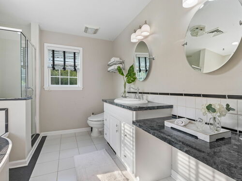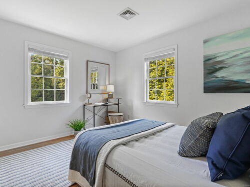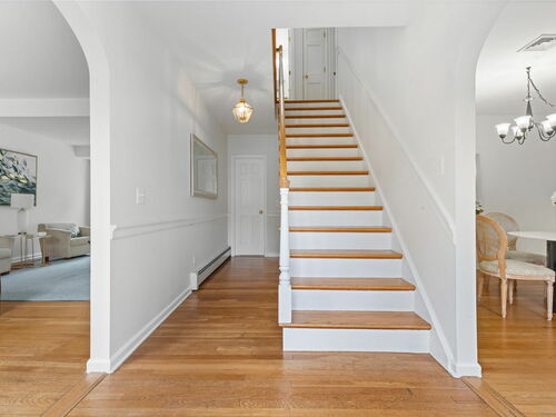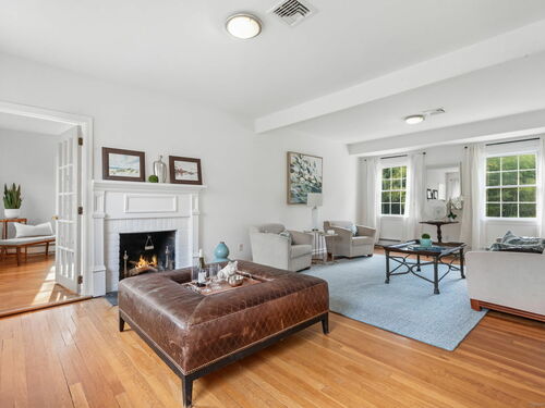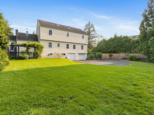 This timeless Colonial, completely rebuilt in 2002 with only the original foundation remaining, was thoughtfully designed for today's lifestyle. Sunlight fills the home through large windows, highlighting hardwood floors throughout and offering water views from several rooms. The main level features a spacious living room with a fireplace, a formal dining room, a comfortable family room, and a generous kitchen with an island, stainless steel appliances, abundant quality wood cabinetry, and ample counter space. A mudroom provides access to the large deck, complete with a pergola draped in wisteria-perfect for al fresco dining. Also on the first floor, a versatile office/bedroom with an adjacent half bath offers flexibility for guests or work-from-home needs. Upstairs, the primary suite serves as a private retreat with a sitting area, spacious walk-in closet, and nicely appointed full bath. Two additional bedrooms share a well designed full bath with double sinks and private shower area, and a convenient hallway laundry closet adds everyday ease. The partially finished lower level offers lots of flexible space ideal for a playroom or gym. Additional highlights include two garage bays, a private backyard, and the coveted perk of deeded water access just steps away at the end of the cul-de-sac. Launch your kayak or paddleboard, or simply enjoy the serene views. Ideally located close to the Riverside train station and all the exceptional amenities Greenwich has to offer