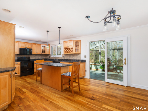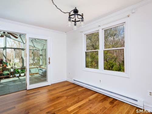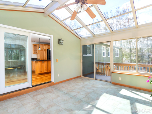 Welcome to this beautifully updated & meticulously maintained home, perfectly situated on a quiet cul-de-sac. Freshly painted throughout, this inviting residence offers a bright open-concept layout seamlessly connecting the living, dining, & kitchen areas-highlighted by newly refinished hardwood floors, granite countertops, a brand-new range & microwave, & newer refrigerator & dishwasher. Just off the dining area, you'll find a stunning four-season sunroom with walls of glass & a glass ceiling, fully heated & air-conditioned for year-round enjoyment. It overlooks a picturesque backyard featuring established perennial gardens and a ready-to-harvest vegetable garden & large shed. The main level also includes a spacious primary bedroom with a double closet outfitted with a California Closet system & a convenient half bath. Two additional generously sized bedrooms & updated hall full bath complete this level. Downstairs, enjoy an expansive family room featuring a cozy fireplace with a wood stove insert-perfect for chilly winter days & sliders that lead to a covered patio ideal for outdoor dining and entertaining. This level also includes a half bath, laundry room & direct access to the oversized two-car garage. Recent updates, exterior of house painted, new louvered closet doors, new dining chandelier, updated hot water tank, new well pump & more. Also included is a portable generator! This exceptional home offers comfort, charm & thoughtful upgrades throughout, truly a must-see!