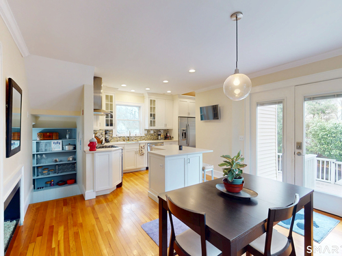 Move right into this fully renovated Colonial directly across the street from Woodland Park and .5 miles to Noroton Heights Train Station, newly built Darien Commons & Heights Crossing. This 2 bdrm, 1.1 bath has over 1,500sqft of living space, high ceilings, central air & hardwood floors throughout. Remodeled eat-in-kitchen w/ granite countertops, dining area, SS appliances, half bath, pantry & double-sided gas fireplace that looks through to the massive living room. 2nd floor has 2 bdrms w/ remodeled full bath and ample closet space. Lower level w/ playroom, laundry and storage space. Step through the French Doors to the fenced in backyard with patio & deck, 1 car garage, and turf for easy maintenance/pet cleanup. New roof, new hot water tank, & new furnace.