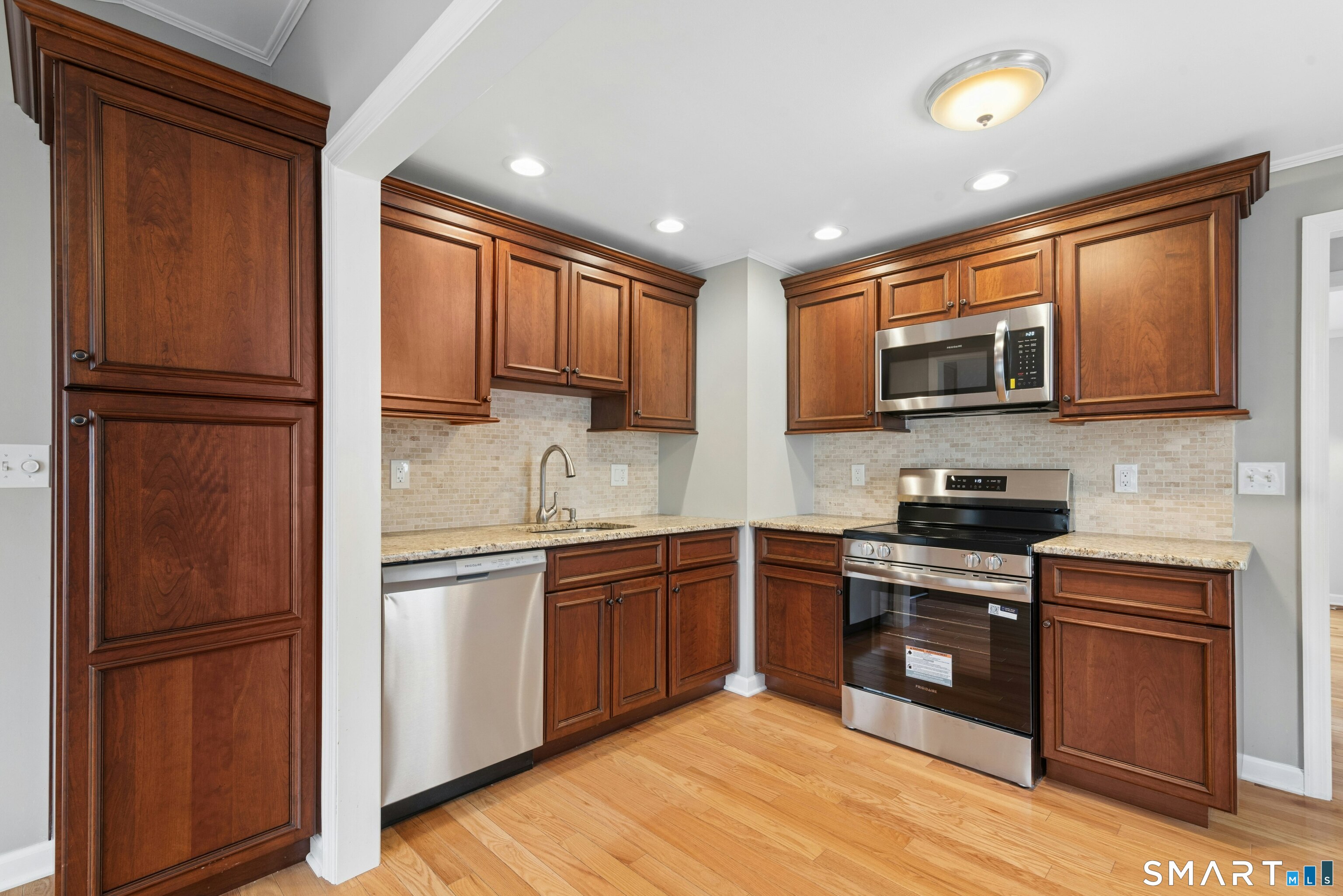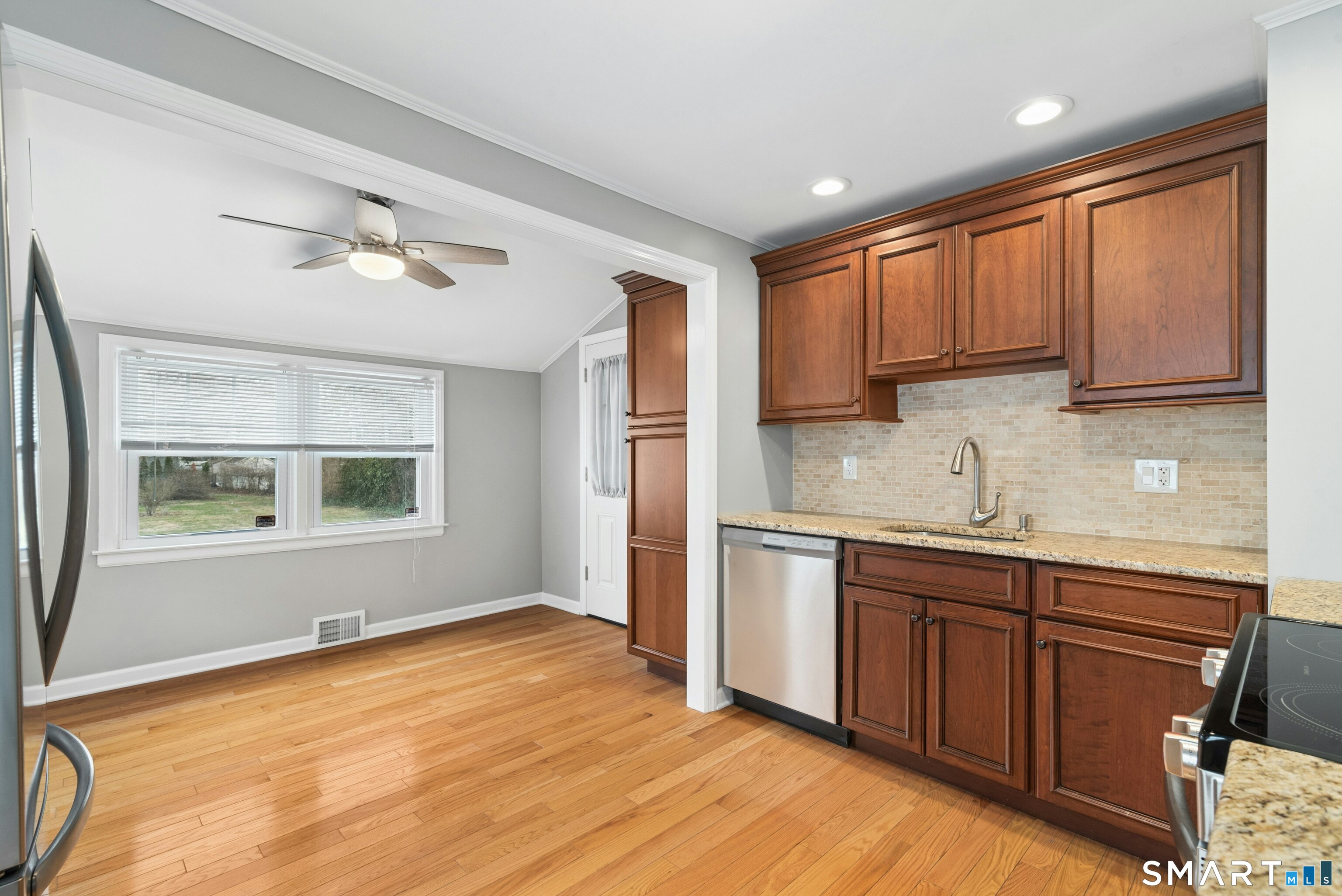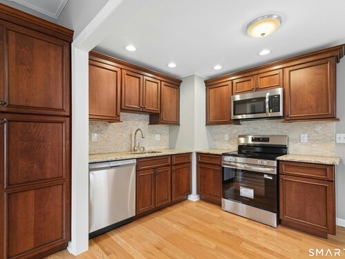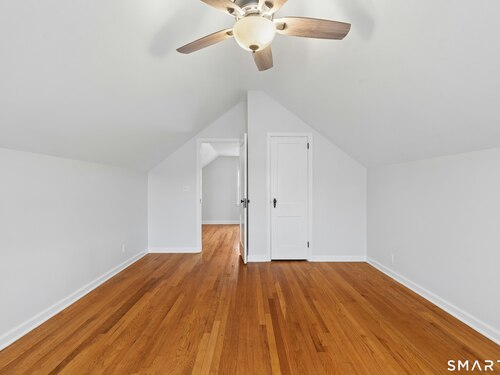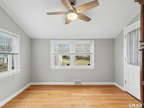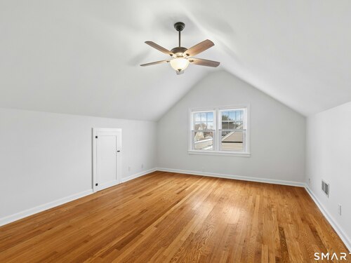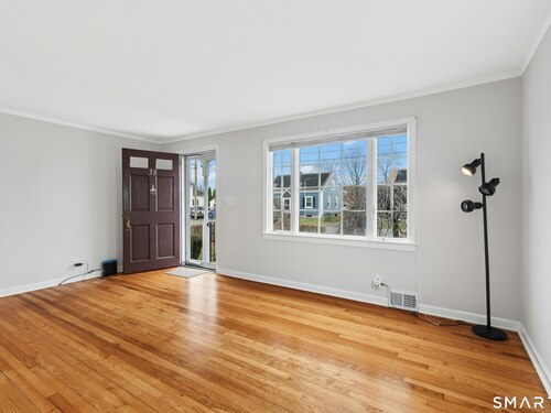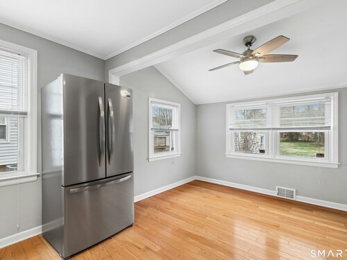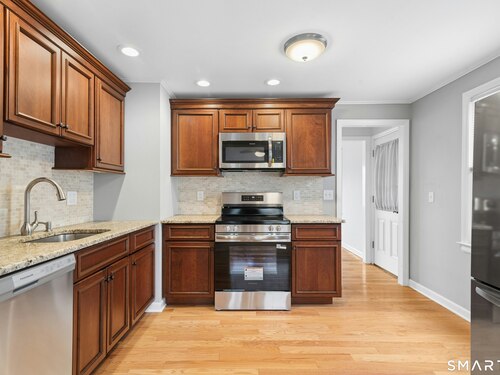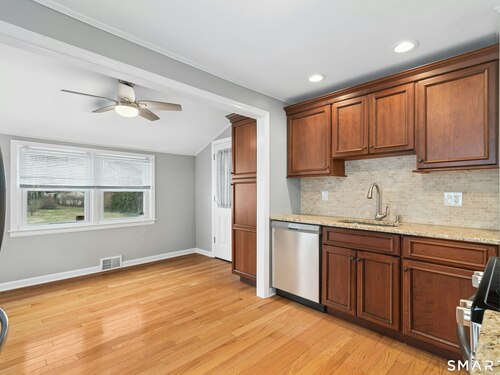 Welcome to this charming cape-style home located on a quiet dead-end street in Stratford's South End, just a short walk to local schools and the town's historic district. Offering nearly 1,300 square feet of living space, this well-maintained home blends classic charm with thoughtful updates. Step inside to find beautiful hardwood floors throughout and a bright, inviting layout. The updated eat-in kitchen features brand-new stainless-steel appliances, granite countertops, a stylish new backsplash, and custom cabinetry, providing both function and modern appeal. A door off the kitchen leads directly to the back deck overlooking a spacious, level yard, perfect for outdoor entertaining, gardening, or relaxing. The main level offers a comfortable living room, two bedrooms, and a full bathroom with tub and shower, providing convenient one-level living if desired. Upstairs, you'll find a generously sized primary bedroom with a landing area, ideal for a reading nook, office space, or additional storage or potential for an additional bathroom. Additional features include a one-car garage and a storage shed, offering plenty of room for tools and outdoor equipment. Major mechanicals have been updated, including an efficient Navien heating system. Enjoy being just a short drive to Stratford's beaches, parks, shopping, restaurants, and major highways, making commuting and everyday conveniences easy. Nothing to do but move in!