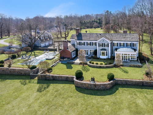Welcome to 384 West Lane, an exceptional Estate Property that defines timeless Connecticut luxury across 13 exquisite, park-like acres- straddling Westchester County & just an hour from NYC. At its heart stands a classic Georgian Manor-7,500 SqFt of architectural mastery where perfectly scaled rooms, soaring ceilings, and refined millwork create an atmosphere of enduring elegance. Designed by the renowned Dinyar Wadia, the Kitchen and adjoining living spaces form the centerpiece of the home, a seamless blend of artistry and functionality. Six private Bedroom Suites include a charming Stone Cottage connected by a graceful porte-cochere, while a bespoke Glass Conservatory invites nature inside. Every detail has been thoughtfully reimagined to meet the highest standards of modern living. The 6 Car heated garage includes an incredible, inspiring studio above. A transformed 9 stall barn now serves as a remarkable entertainment pavilion w/full KIT. Complementing the main residence, a renovated 3BR Guest House ensures privacy & comfort. The Luxury Estate unfolds in layers of beauty-saltwater pool w/spa, outdoor kitchen, bocce court, gardens, fire pit, and root cellar. Perfectly positioned minutes from Silver Spring CC and vibrant downtown Ridgefield, 384 West Lane is a rare composition of classical architecture, contemporary luxury, and cultivated sophistication. Once an Equestrian Farm, the outdoor ring & barn can easily transformed back to how it was. The Ultimate Country Retreat!