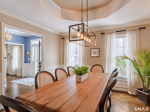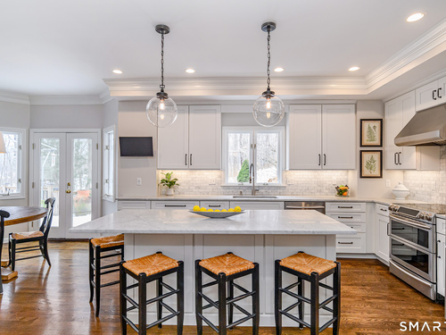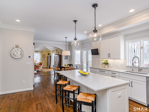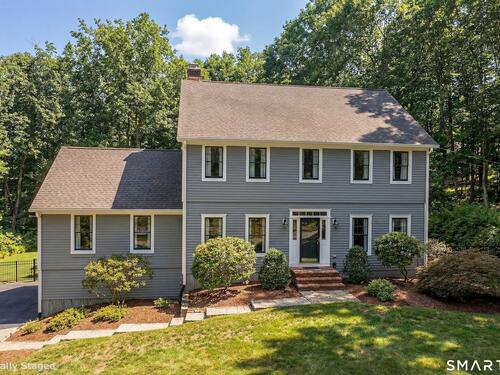 Welcome to 39 Bradley Ln, a stunning four-bedroom, 2.5-bath Colonial that perfectly blends warmth, style, and functionality. From the moment you enter, you are greeted by an inviting atmosphere that immediately feels like home. The remodeled 2017 gourmet kitchen is truly the heart of the property, featuring a large center island, marble countertops, premium finishes, and a beautifully designed walk-in pantry. The open-concept layout flows seamlessly into the sun-filled dramatic vaulted-ceiling family room, highlighted by a striking brick fireplace and expansive windows that flood the space with natural light. A sliding door leads to a spacious deck and patio(built in 2021) overlooking a fenced yard with a beautiful garden area, perfect for relaxing or entertaining. The main level also offers a formal dining room ideal for gatherings and a comfortable living room both connecting effortlessly to the kitchen. Upstairs, the primary suite provides a private retreat with a fully remodeled bath in 2024 and a custom California Closet walk-in. Three additional bedrooms feature thoughtfully designed organizational closets and share a well-appointed full bath. The finished lower level includes a large recreation room with a built-in entertainment center and a generous mudroom area, offering exceptional flexibility, storage, and everyday convenience. This home blends classic Colonial character with modern charm, set on over two acres of private surroundings. Welcome Home!!