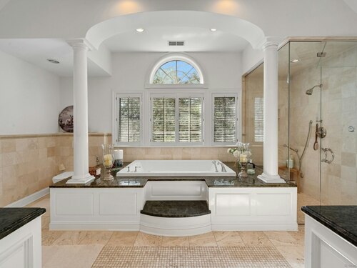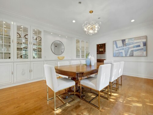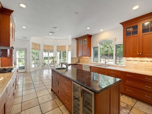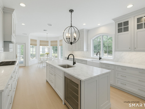 At the end of a quiet cul-de-sac, surrounded by 2.7 acres of privacy, 39 Running Brook Lane combines gracious living with everyday convenience, moments from top schools, parks, Metro North and more. Soaring ceilings, and beautifully proportioned rooms make for inviting yet impressive everyday living and entertaining. The custom Deane kitchen anchors the home with top-tier appliances, a butler's pantry, walk-in pantry, and a sunlit circular breakfast area that flows seamlessly into the family room with fireplace. Formal living and dining rooms extend to bluestone patios, enhancing effortless indoor-outdoor entertaining. A richly paneled study, flexible first-floor guest suite or office, two powder rooms, and a well-appointed laundry room complete the main level. Upstairs, the expansive primary suite offers dual bathrooms and three custom walk-in closets, while four additional bedrooms and three full baths provide generous accommodations for family and guests. The walk-out lower level expands the lifestyle appeal with a brand-new sauna and Himalayan salt room, plus substantial space for a gym, media room, or recreation. Recent improvements include a brand-new high-efficiency boiler, freshly painted interiors and exterior and a resealed driveway. This is one you have to see to truly appreciate!