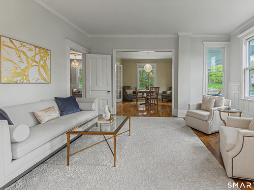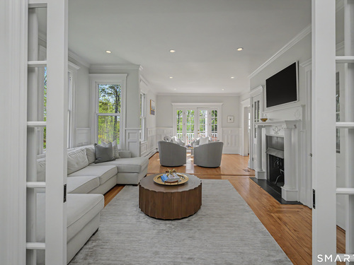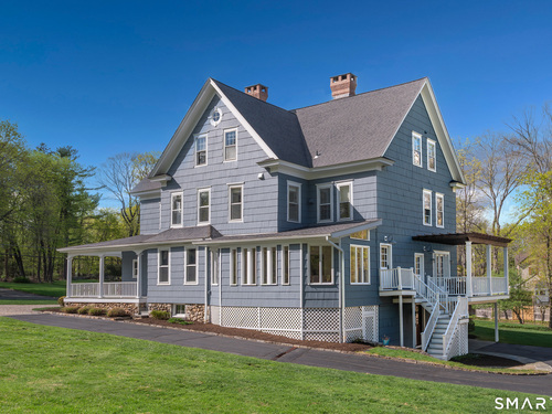Walk to the heart of Ridgefield from one of its most admired residences. This sophisticated Farmhouse Colonial, complete with a legal 2BR, legal accessory apartment, offers exceptional versatility & turnkey living. Gracious entry introduces a wide central hall + beautifully scaled rooms w/high ceilings & rich hardwood floors. Main level features a refined Study, Living Rm, inviting Family Rm w/FP, a stylishly updated Chef's KIT open to an expansive Breakfast Rm. A formal Dining Rm w/FP provides an elegant setting for entertaining. Upper level is anchored by a beautifully designed Primary Suite w/spa-inspired Bath featuring radiant heated floors, soaking tub, glass-enclosed shower & double vanity. Three Add'l Bedrms are served by two renovated Baths + convenient upper-level Laundry. Third Level offers a comfortable Family Rm & a private legal 2BR, 1403 sqft apartment w/separate entrance, KIT, Living Rm, Full Bath, and its own Laundry-ideal for guests, extended living, or income. The level, park-like property is impressive! Outdoor spaces incl: wraparound front porch, expansive rear deck & circular drive leading to a generous parking area. Large Mud Rm + abundant storage. Town water/sewer. Moments to Ridgefield's vibrant downtown-home to premier dining, cafes, boutiques, art galleries, bespoke shopping + renowned cultural venues. Rare in-town offering combining timeless architecture w/modern comfort. Nearby shuttle to Katonah Train Station. Approx. 1 Hour to NYC