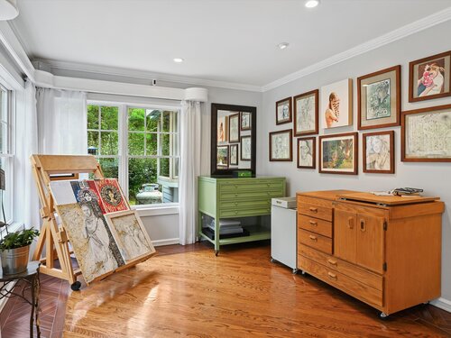 Welcome to this captivating expanded cape retreat in the heart of Westport on a sought after, centrally located, walk to school street. Every aspect speaks the language of artistry and elevated attention to detail. This custom built sanctuary is an artist's haven nestled admist nature's finest tapestry. The residence boasts a thoughtfully designed living space harmoniously arranged on a picturesque one acre canvas. The husband and wife team has effortlessly married the timeless interior elegance of French-inspired craftsmanship with the serene exterior beauty reminiscent of Monet's gardens. Each room is designed with a commitment to detail, offering a beautiful blend of classic design and modern comfort. The bespoke interiors are crafted to evoke a sense of refined sophistication with artisan touches and quality finishes throughout. The piece de resistance is the magnificent primary suite. Not just offering breathtaking views from the balcony of the owner's own realization of Monet's garden, but an alice in wonderland entrance to a sitting room, bedroom with soaring ceilings, gas fireplace and double walk in boutique style closets. Two artistically accented bedrooms sharing a vintage hall bath rounds out the second level living accenting the Parisian inspired, effortlessly chic and timeless primary ensuite. The fourth bedroom resides on the first level boasting two beds hidden in custom cabinetry that currently serves as an office. Wander your way into this wonderland!