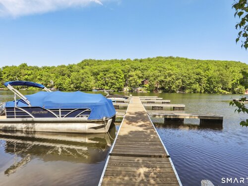 Welcome to the sought-after Hollywyle Lake community in New Fairfield-where lifestyle, comfort, and natural beauty come together seamlessly. This beautifully remodeled 3-bedroom, 2.5-bath home offers a bright and airy open-concept layout, perfect for both everyday living and entertaining. The main level features a spacious primary suite complete with a large walk-in closet and a stunning tiled walk-in shower with a sleek glass door-creating a true retreat. A convenient half bath on the main level adds ease for guests. The second level boasts two large bedrooms, with charming built-in drawers and large closets for additional storage. A second floor full bathroom rounds out the second floor. The heart of the home flows effortlessly from the kitchen to the dining and living areas, all with direct access to a large composite deck-ideal for outdoor dining, relaxing, or hosting gatherings. Step outside and enjoy the beautifully landscaped yard, perfectly positioned directly across from the lake and picturesque waterfalls. Enjoy the peaceful sound of the babbling water right from your front yard.
