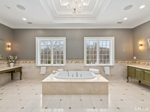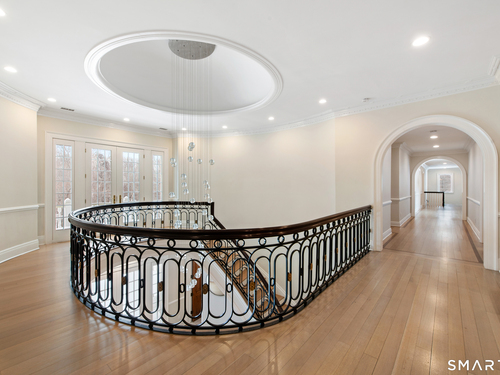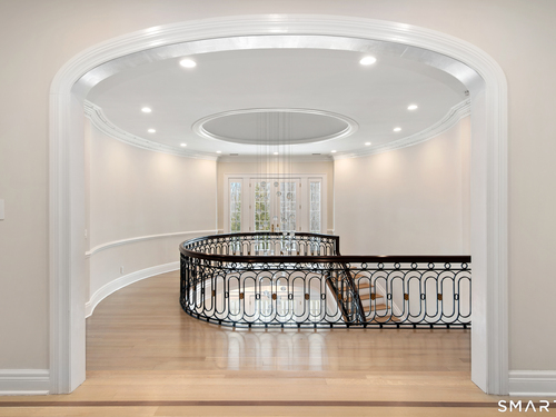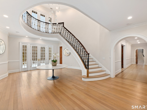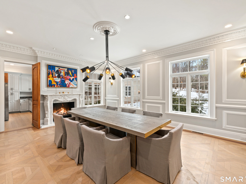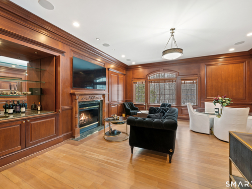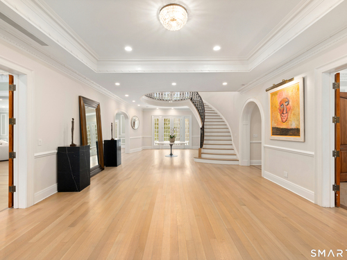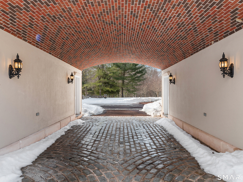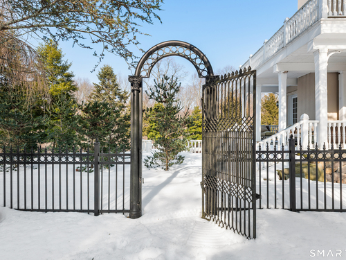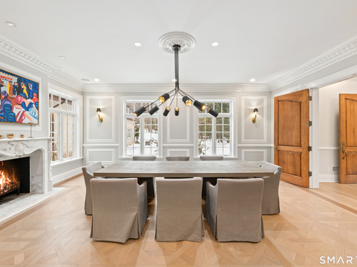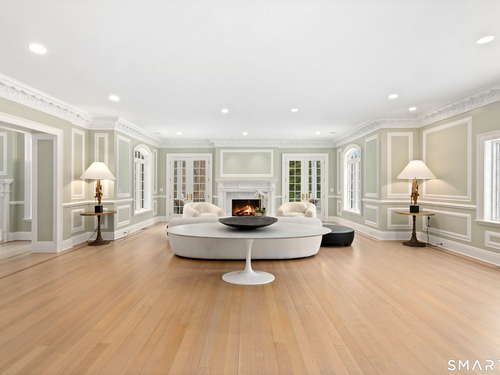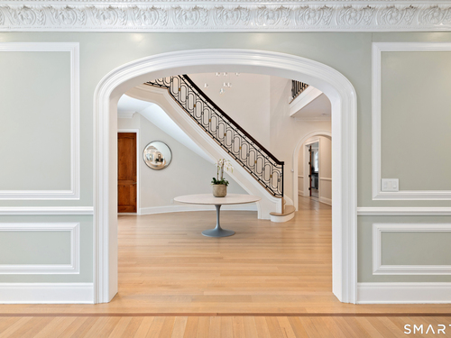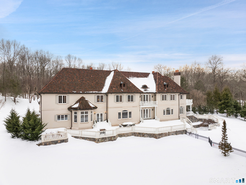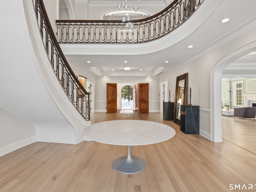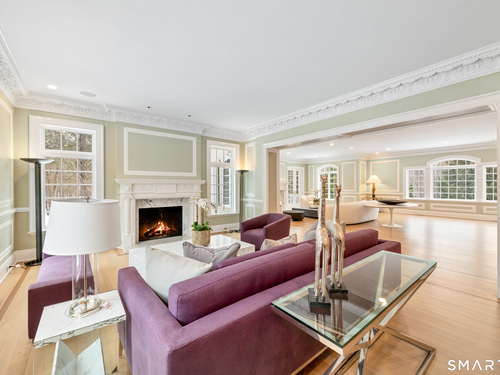 Situated within the gated enclave of Conyers Farm in backcountry Greenwich, this elegant French Chateau embodies architectural distinction, privacy, and resort-style living. Here, heritage and pastoral elegance converge, framed by rolling polo grounds, preserved countryside, and an atmosphere defined by quiet exclusivity. Set gracefully on more than 13 acres, comprised of mature woodlands, and formal gardens, the estate blends timeless European elegance with modern luxury amenities. Designed to accommodate both intimate living and large-scale entertaining, the residence offers thoughtful gathering spaces that balance grandeur with warmth. A dramatic two-story reception hall with a sweeping staircase is most inviting. The formal rooms include a ballroom-style salon, formal living and dining rooms, each anchored by a fireplace, creating a convivial atmosphere. Fine architectural details that include plaster moldings, boiserie library, intricate millwork, and multiple marble fireplaces, further defines the gracious interior. A chef's kitchen equipped with top-tier appliances is supported by a fully equipped butler's pantry, mud porch with tremendous storage +office blends seamlessly into relaxed family areas.