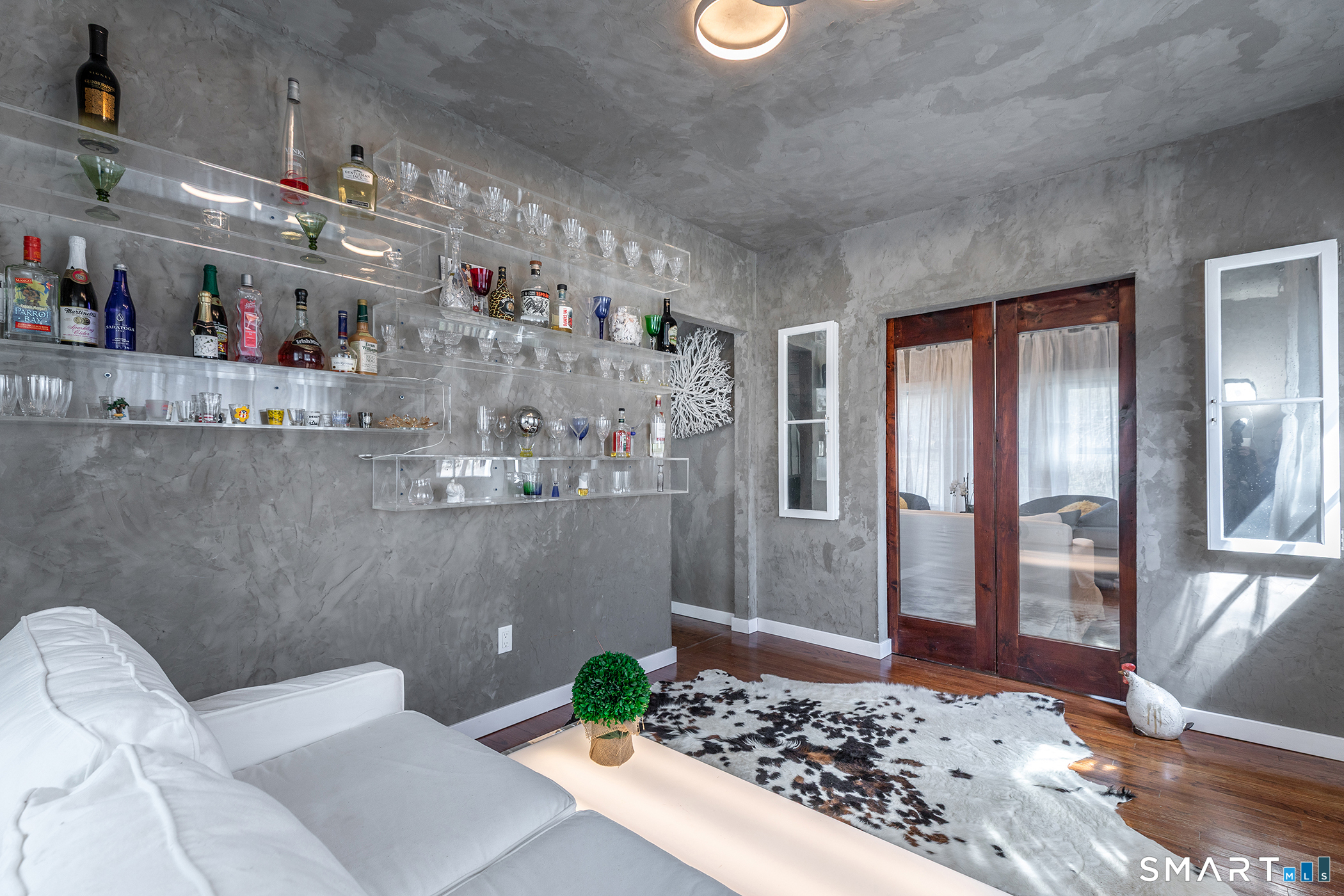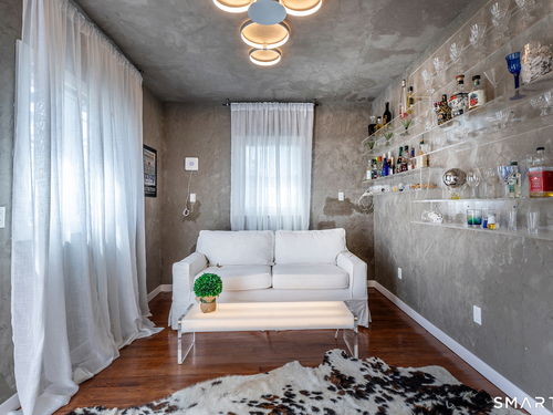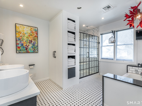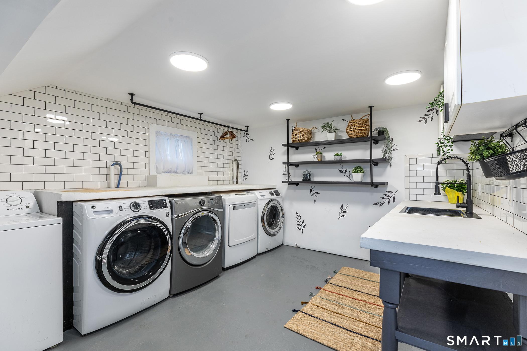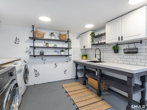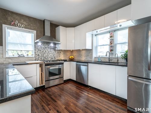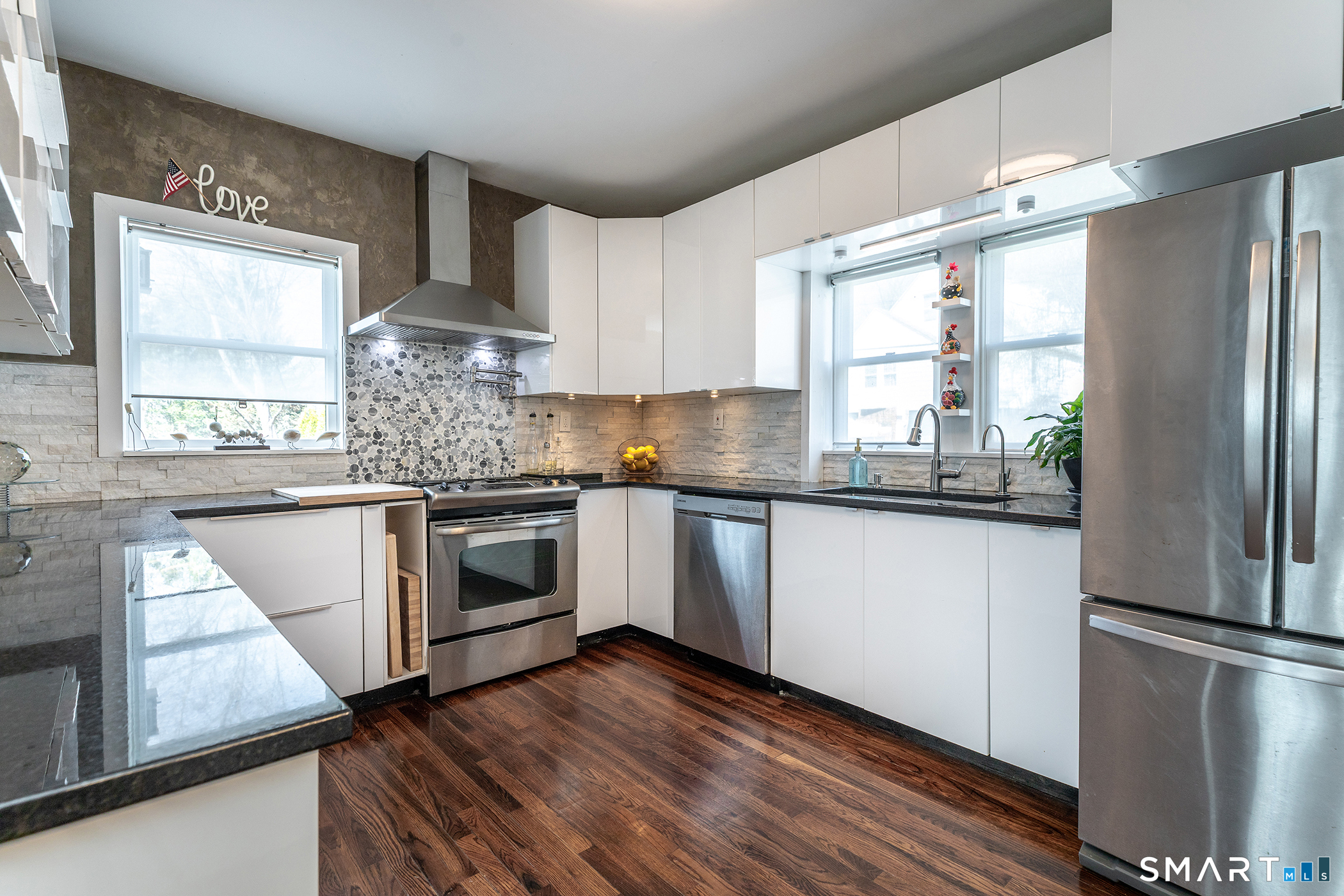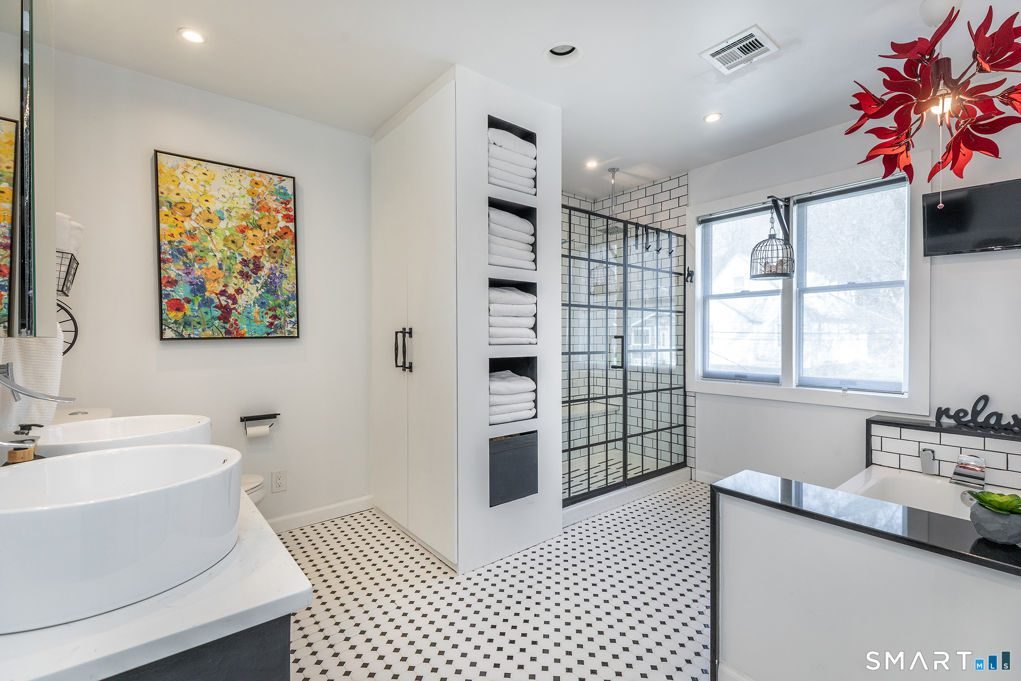 This is a Show-Stopper!!! Presenting 4 Darien Road; an exquisitely reimagined residence that pairs refined modern design with an artful sense of warmth, comfort and sophistication. Beautifully curated interiors, custom finishes, and a seamless blend of texture, light and proportion create a home of exceptional character and style, where every space feels both striking and effortlessly livable. The open floor plan of the main level unfolds with ease, offering a dramatic living room with sleek fireplace feature, an elegant dining area and a designer kitchen appointed with crisp white cabinetry, granite countertops, stainless steel appliances and distinctive tiles. An expansive peninsula with seating anchors the space and encourages gathering, while thoughtful lighting and textural wall treatments set a refined, gallery-like tone. A full bath, dedicated office space and a bonus den provide dedicated living spaces for all the family. Upstairs, the private quarters are anchored by a gracious primary suite reminiscent of a boutique hotel, showcasing a soaring ceiling, richly paneled accent wall and generous walk-in closet space. The adjoining spa-inspired bath features a glass-enclosed shower, deep soaking tub, dual floating vanities and chic monochrome finishes, complemented by 3 additional well-proportioned bedrooms. The lower level expands the home's livability with a stylish lounge area, abundant storage and a thoughtfully designed laundry room with ample work surfaces.