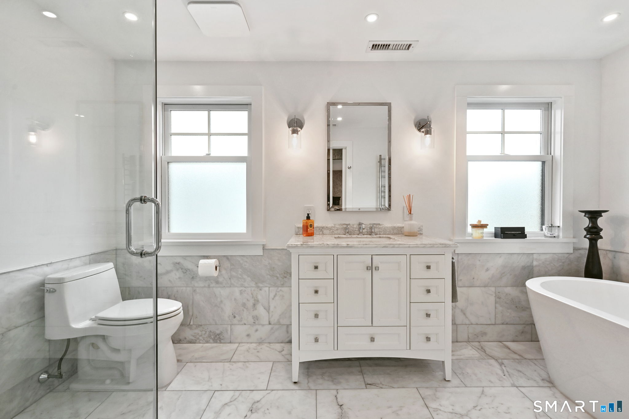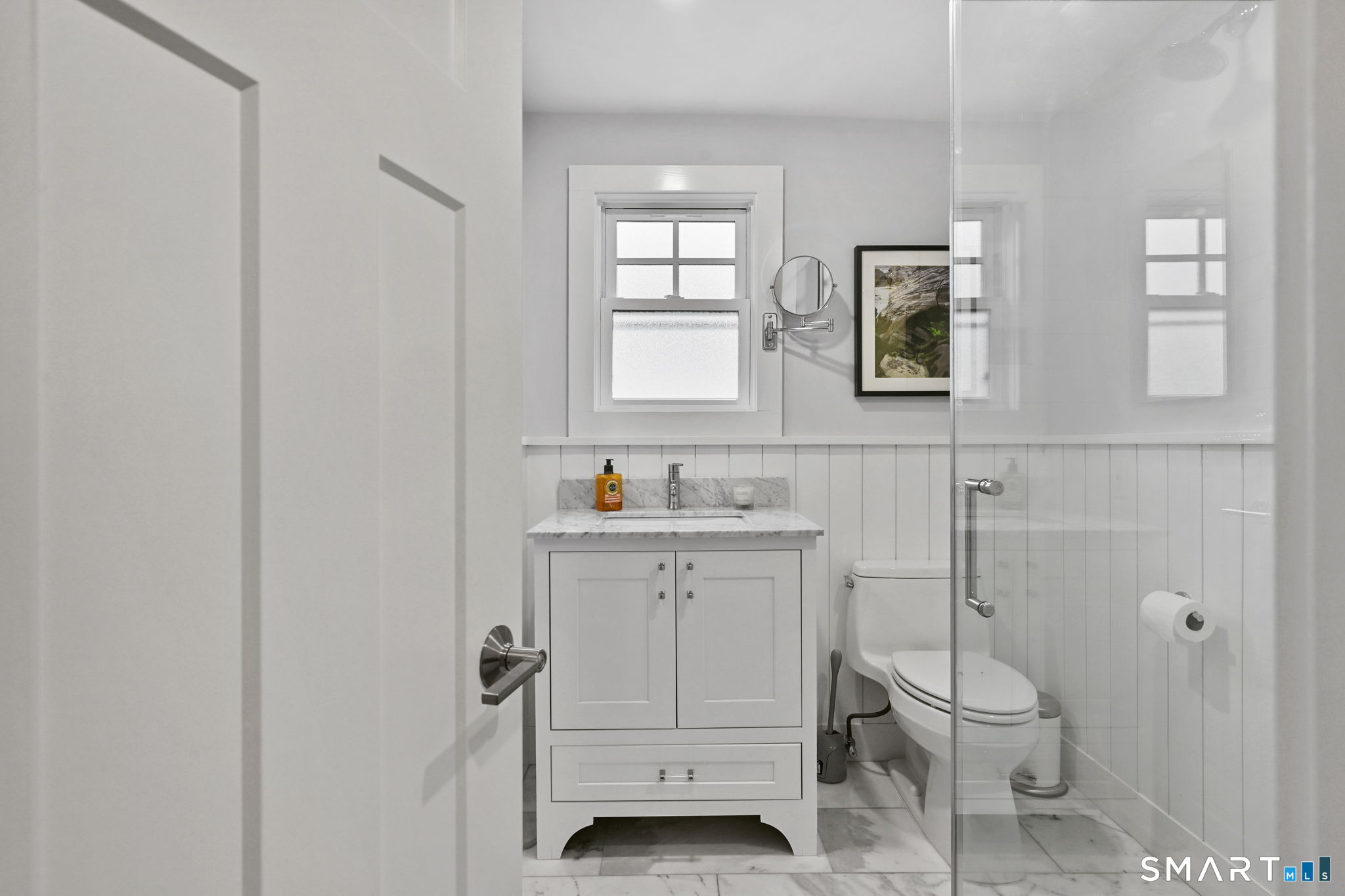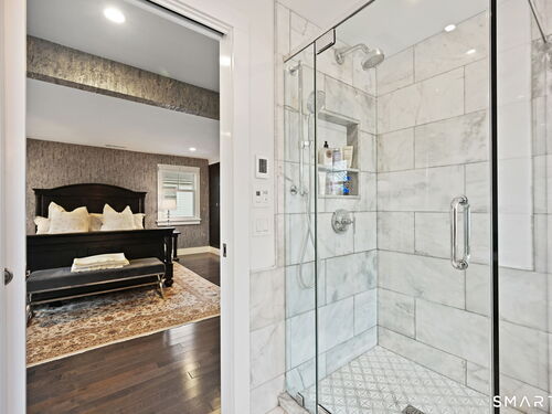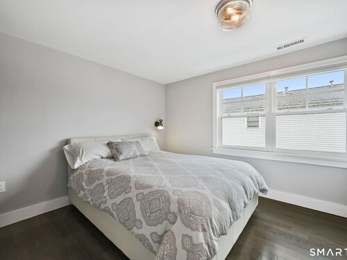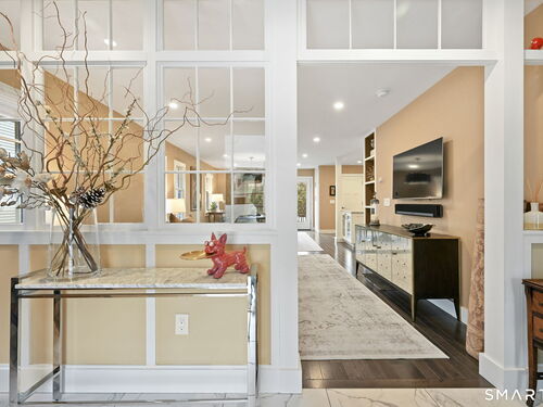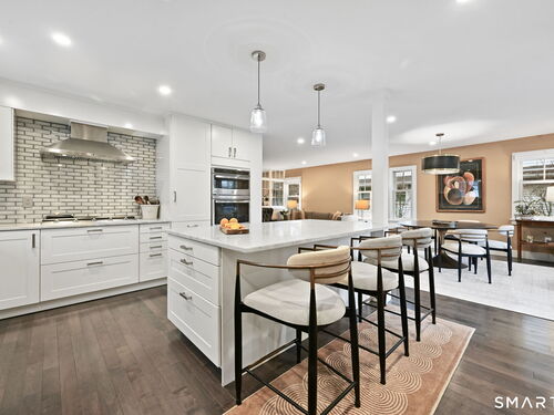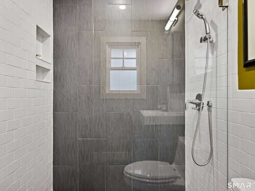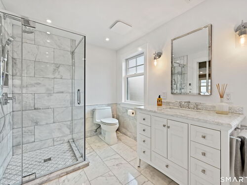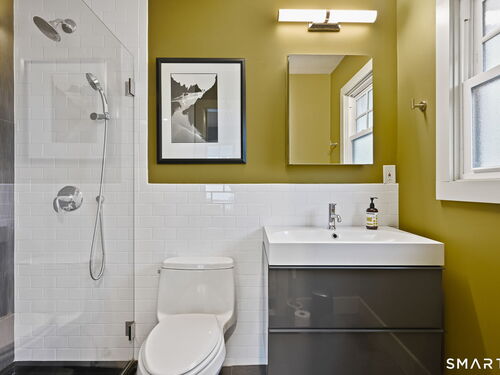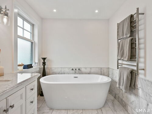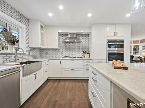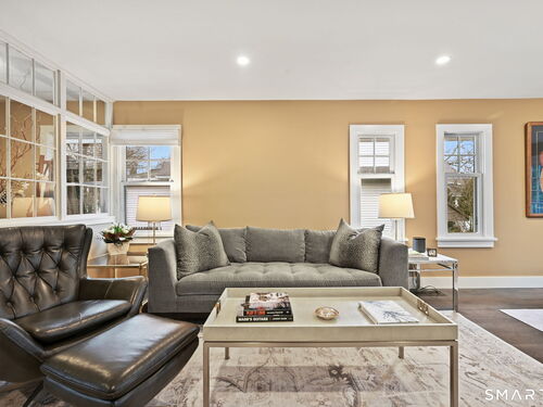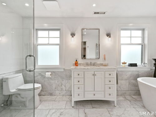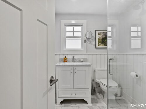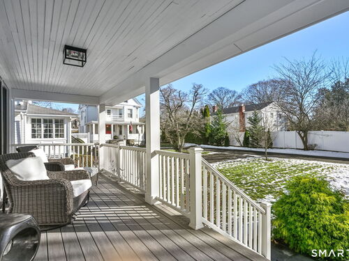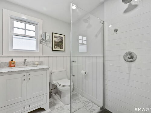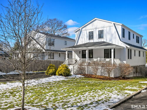 Don't miss this charming, completely renovated home quietly tucked away, yet exceptionally located in the heart of Cos Cob. A beautiful covered front porch leads to the inviting foyer with interior windows, open plan living room, dining area, and gorgeous kitchen featuring a huge island and French door access to deck and backyard. Main level bedroom with barn door and en-suite bath is also the perfect spot for an office. Serene primary suite offers built-ins, spa bath with radiant floors, towel warmer, and soaking tub. Two additional bedrooms, a full bath, and a great laundry room complete the second floor. The lower level was completed in 2025 and you can customize it to fit your needs; using the large space as a playroom, gym, or family room. Also has outdoor access to the fenced-in backyard. Home was fully gutted in 2018 with new roof, siding, electrical, windows and sprinkler system; driveway and Trex deck were redone in the last few years as well. Close to Cos Cob Village, Cos Cob and Loughlin Parks, and enjoy being just minutes away from Cos Cob school, restaurants, and the train. Total sq. footage including finished basement is about 2,260. ALL OFFERS SHOULD BE SUMBITTED BY MONDAY, 1/26 3PM.