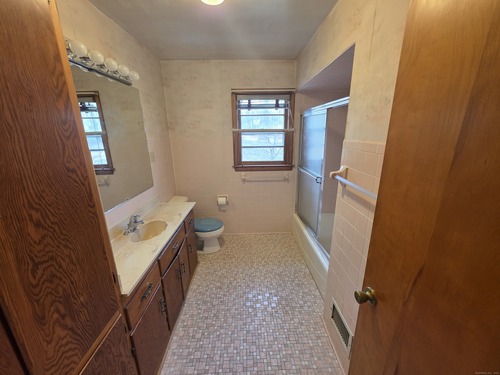 This 3 bedroom home with 2 full baths home sits on a generous lot in a prime, central location offering classic features and solid infrastructure ready for your personal touch. Two fieldstone fireplaces anchor the living spaces with timeless character. Pegged hardwood floors throughout the main level. Eat in kitchen offers built ins, functional breezeway and two car garage. Great potential in the finished basement with laundry room, service bar and a full bath Enjoy outdoor living on the flagstone patio, plus peace of mind with central air and a whole-house generator. Large level site offering 2 acres with mature plantings. Easy access to I-84, shopping, services, restaurants and nearby corporate centers.