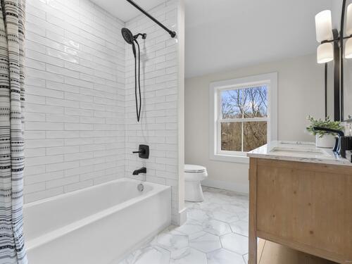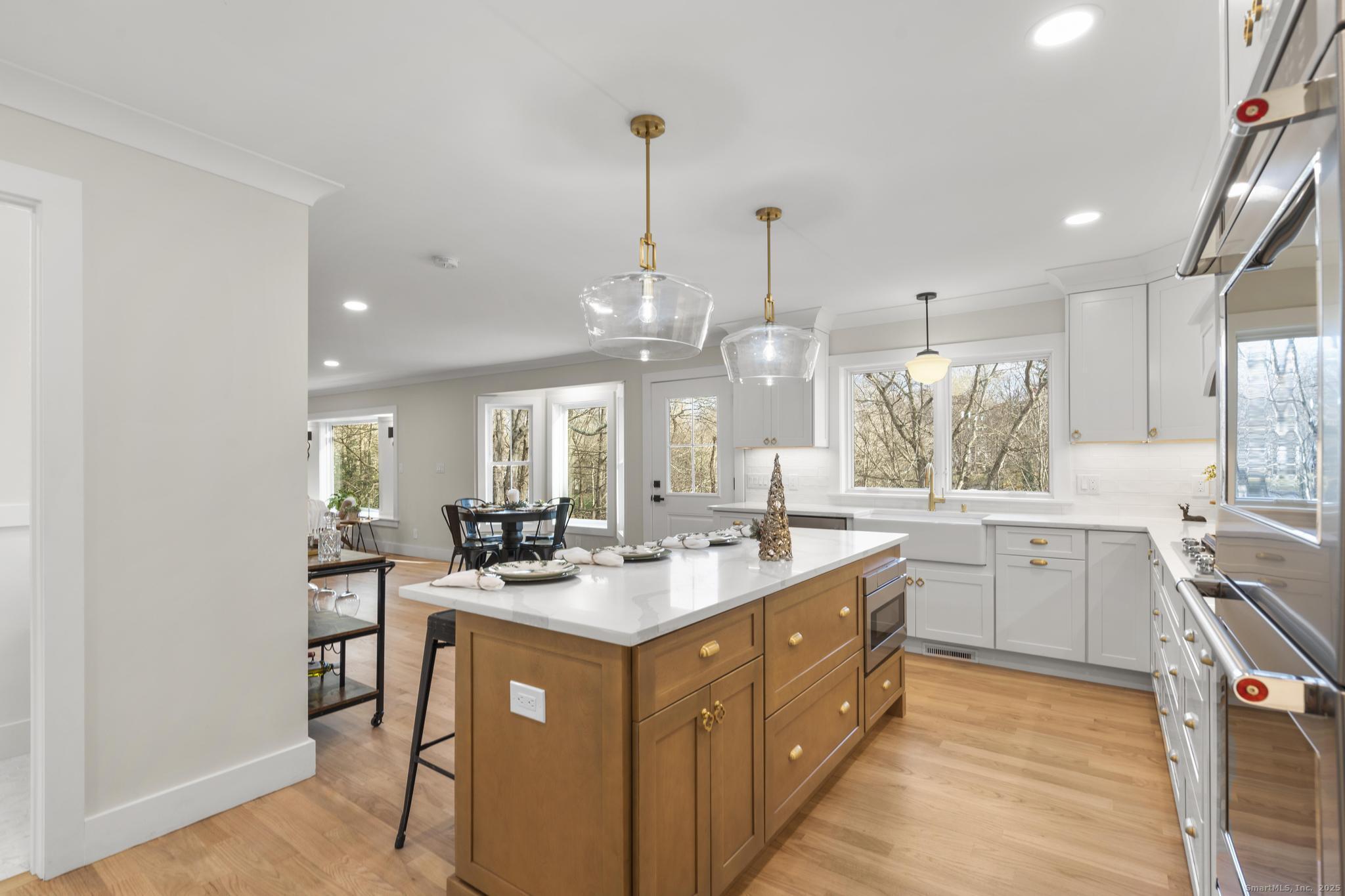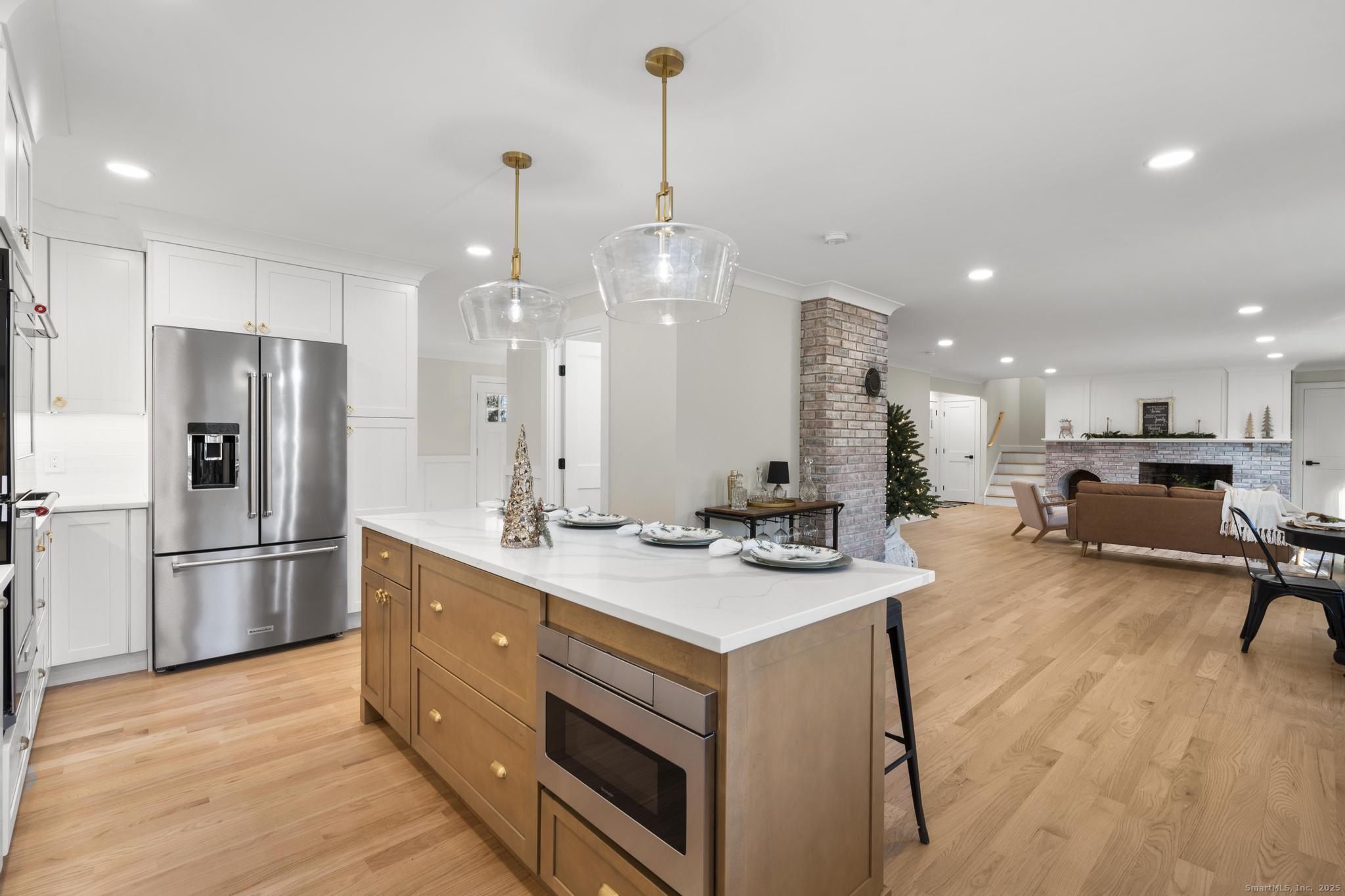 Looking for privacy, look no further! Welcome to this stunning home set on 2.60 picturesque acres overlooking a tranquil pond in the heart of Huntington Center. Taken down to the studs and rebuilt, it lives like new construction with a warm and inviting open floor plan. Enjoy the oversized brick wood-burning fireplace or relax at the picture window seat with serene pond views. The family room flows to the breakfast nook and gourmet kitchen featuring a large island with built-in microwave, KitchenAid appliances, double ovens, gas cooktop and plenty of storage. Formal dining room, powder room and home office complete the main level. The 2nd-floor primary suite offers a spa-like bath with stand-alone tub, large walk-in shower, walk-in closet and attic storage. Two additional bedrooms and a stunning full bath complete this level. A flex space boasting approximately 473sqft of living space, with stylish full bath and pond views is perfect as a 4th bedroom, guest suite, media room or playroom, the possibilities are endless! Enjoy additional living space of approximately 826sqft in the walkout lower level with an electric fireplace, laundry room, half bath, generous storage and sliders to a 12'x31' stone patio leading to the expansive yard. Enjoy morning coffee or grilling on the 12'x16' deck overlooking peaceful water views. New 5,000sqft paved driveway is just one of many new features. Too many details to list! Start enjoying the holidays in your dream home!