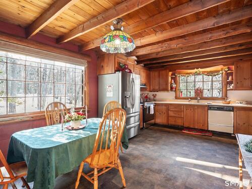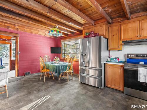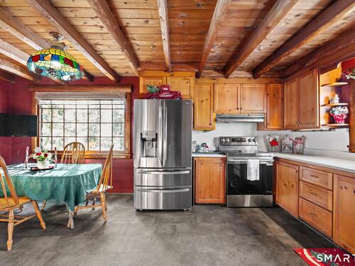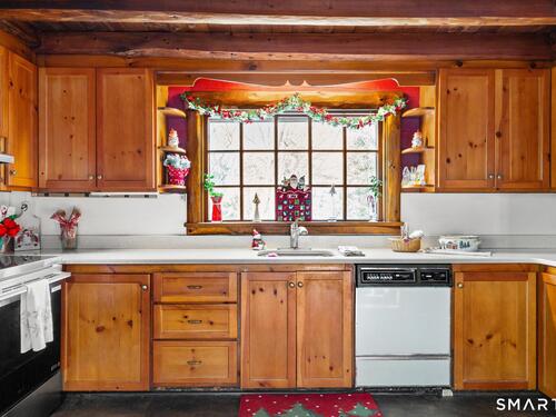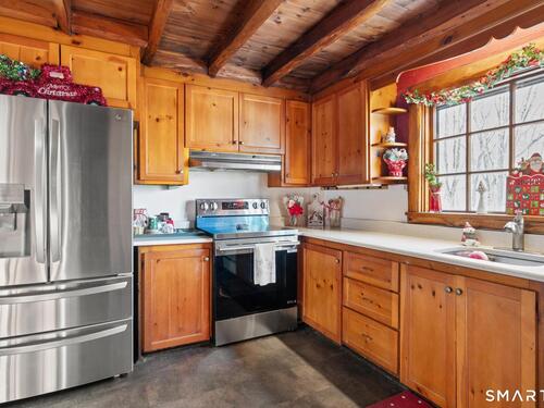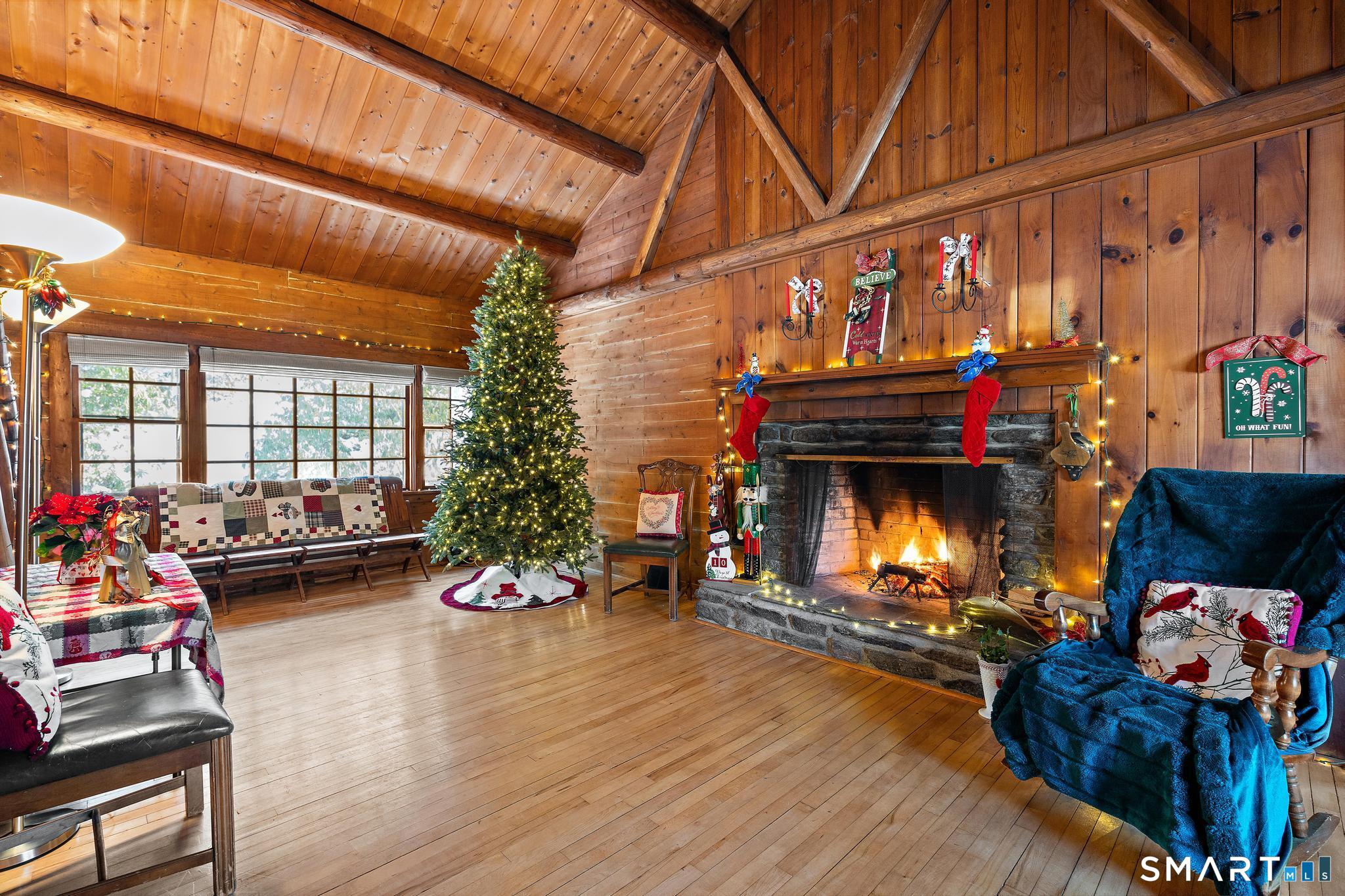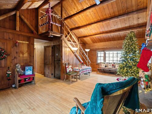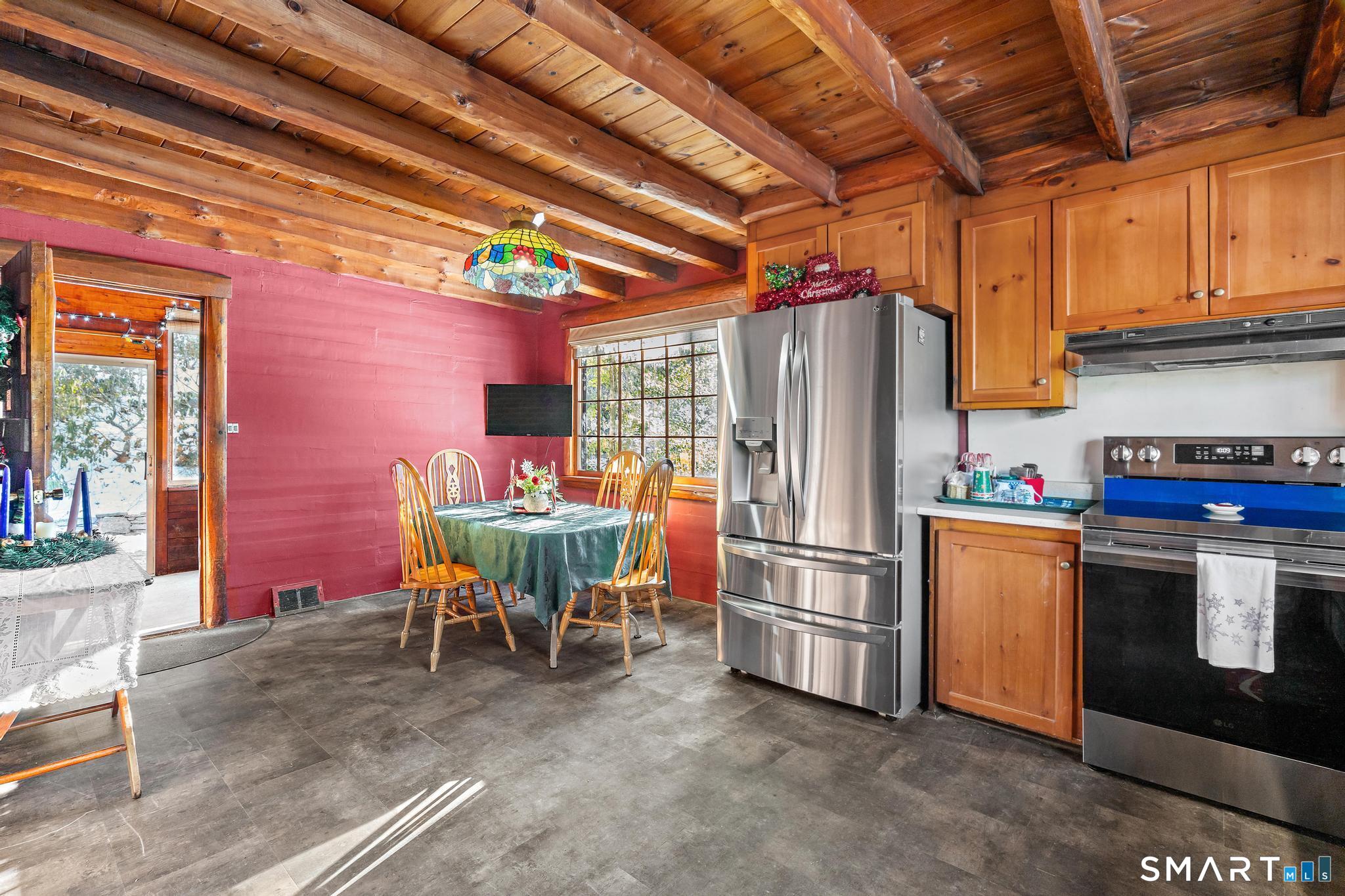 Tucked away on a private road, 4 Rowledge Pond Road offers a rare opportunity to own a true log cabin retreat with picturesque views of Rowledge Pond. This 3-bedroom, 2-bath home blends rustic charm with everyday comfort, featuring warm wood interiors, exposed beams, and inviting living spaces that capture the essence of cabin living. Enjoy shared access to the lake, perfect for fishing, swimming, kayaking, and entertaining, making this a truly special place to call home. Large windows frame tranquil pond views and fill the home with natural light, while the open living and dining areas create an easy flow for both relaxing and entertaining. Each bedroom offers a cozy escape, and the two full bathrooms provide convenience for guests or everyday living. The home is topped with a durable metal standing seam roof, offering longevity and low-maintenance appeal. Additional highlights include ample storage in the walk-in attic and a finished lower level with in-law setup potential. Step outside to the bluestone patio off the back sunroom and enjoy the peaceful setting, ideal for morning coffee, evening sunsets, or simply taking in the natural surroundings. Located just minutes from Sandy Hook Village, shopping, dining, and commuter routes, this unique property delivers an ideal balance of privacy, character, and location.
