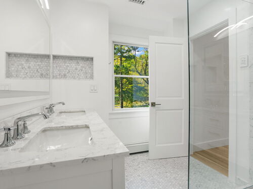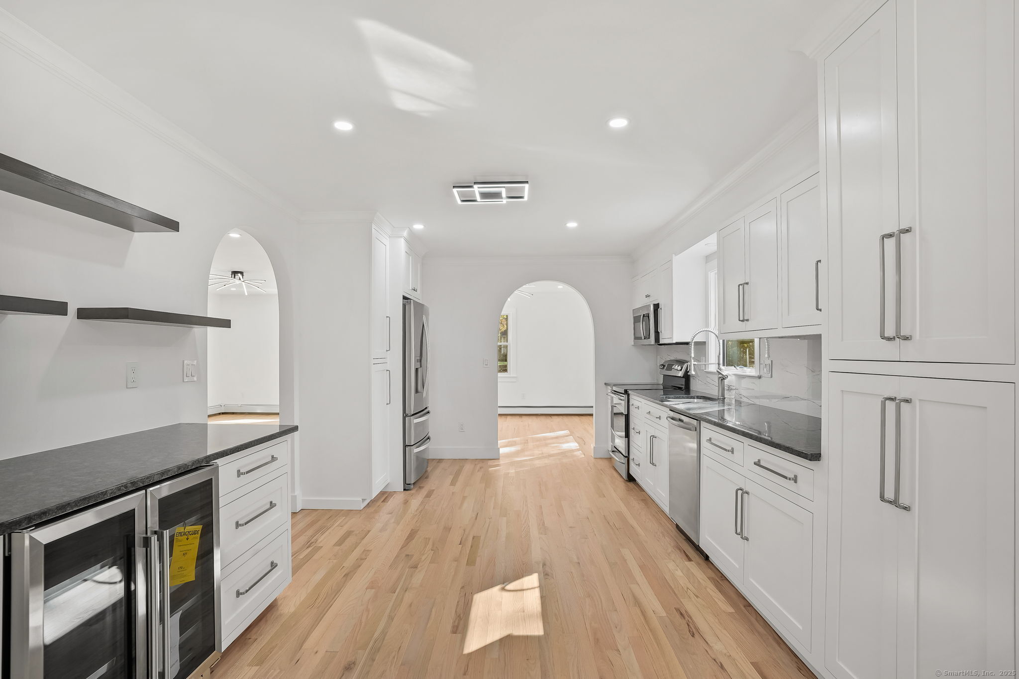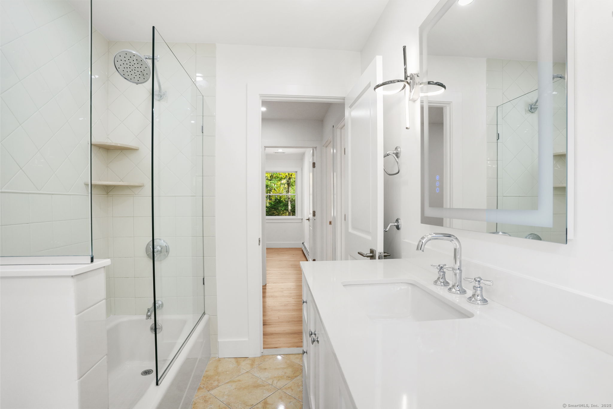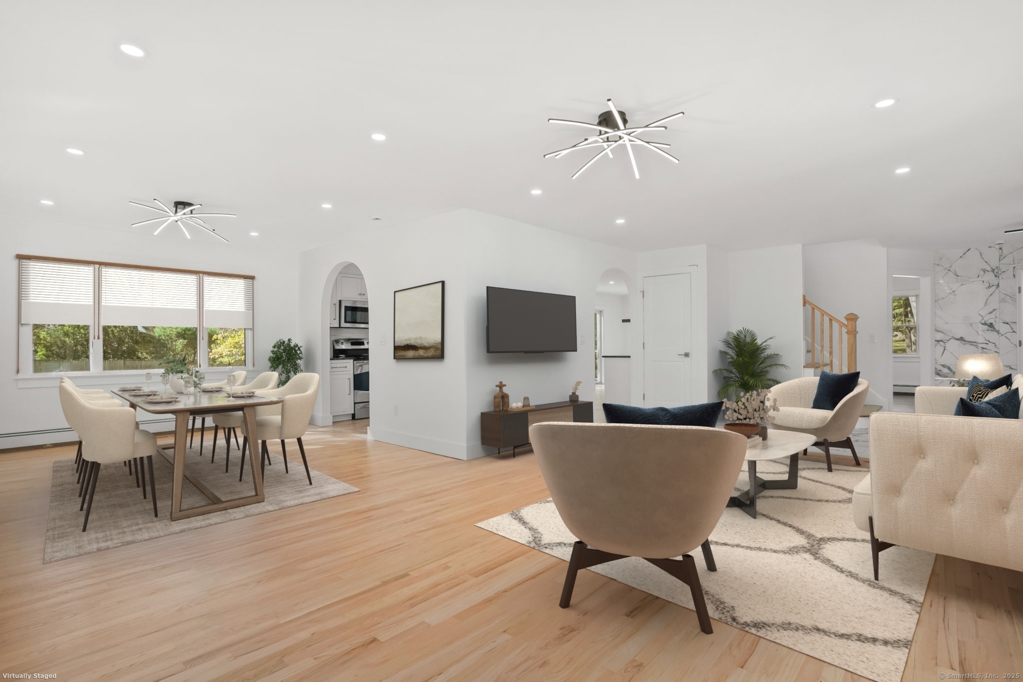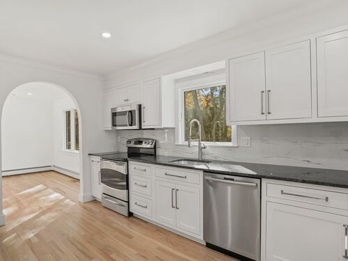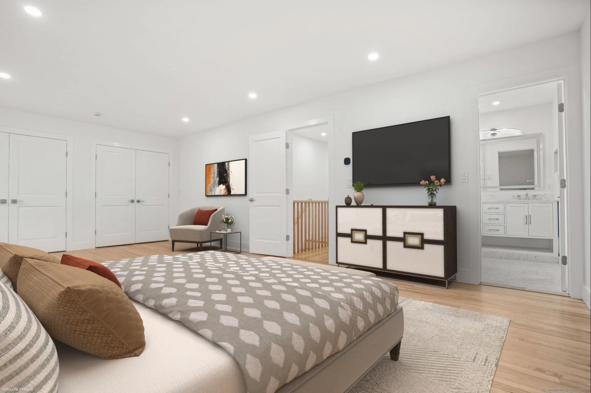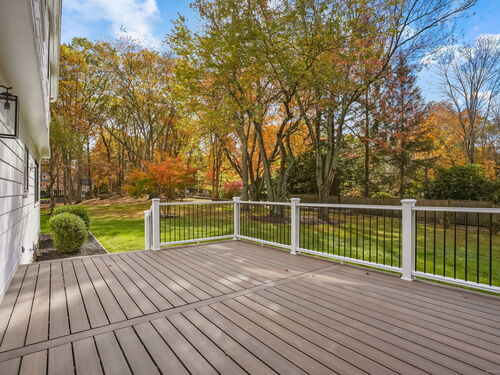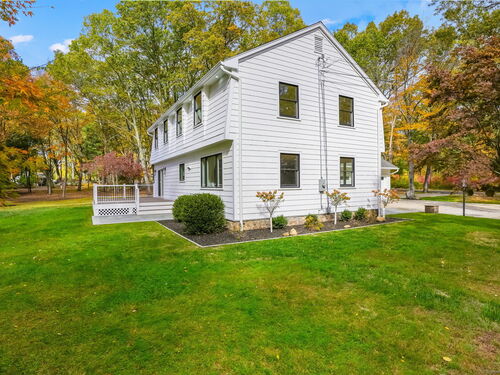 This beautifully renovated 5-bedroom Colonial in Lower Weston, Connecticut, exemplifies exceptional craftsmanship and attention to detail throughout. Set on a level, two-acre corner lot, the home offers both privacy and a tranquil setting. The modern kitchen features top-quality finishes and flows seamlessly into the family and dining rooms, overlooking a picturesque backyard. The living room, with a wood-burning fireplace and sliding doors to the deck, is perfect for indoor-outdoor entertaining. A sun-filled first-floor bedroom provides flexibility as a guest room or home office. Upstairs, the primary suite is a true retreat, featuring a brand-new bathroom with radiant-heated floors, generous closet space, and a quiet, private setting. 3 additional bedrooms on the second floor provide comfortable accommodations for family or guests, complemented by an attic that offers additional storage. The basement provides 1,372 sq. ft. of flexible space, ideal for a home gym, media room, or recreation area. Outside, the home is surrounded by tranquil, well-maintained grounds, creating a peaceful and inviting setting perfect for relaxation, recreation, or entertaining. Located just minutes from Weston's top-rated schools, shops, restaurants, and recreational amenities. Convenient access to the Merritt Parkway and Westport Metro-North Station, offering a direct commute to NYC's Grand Central Station in just over an hour.