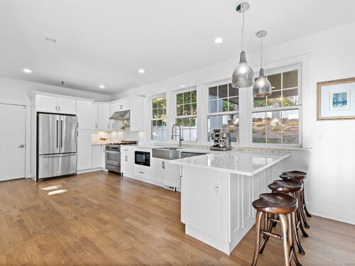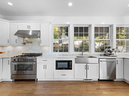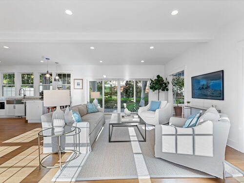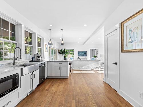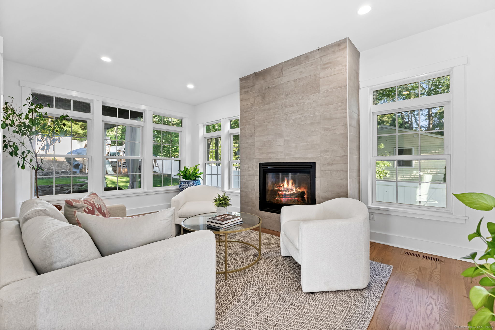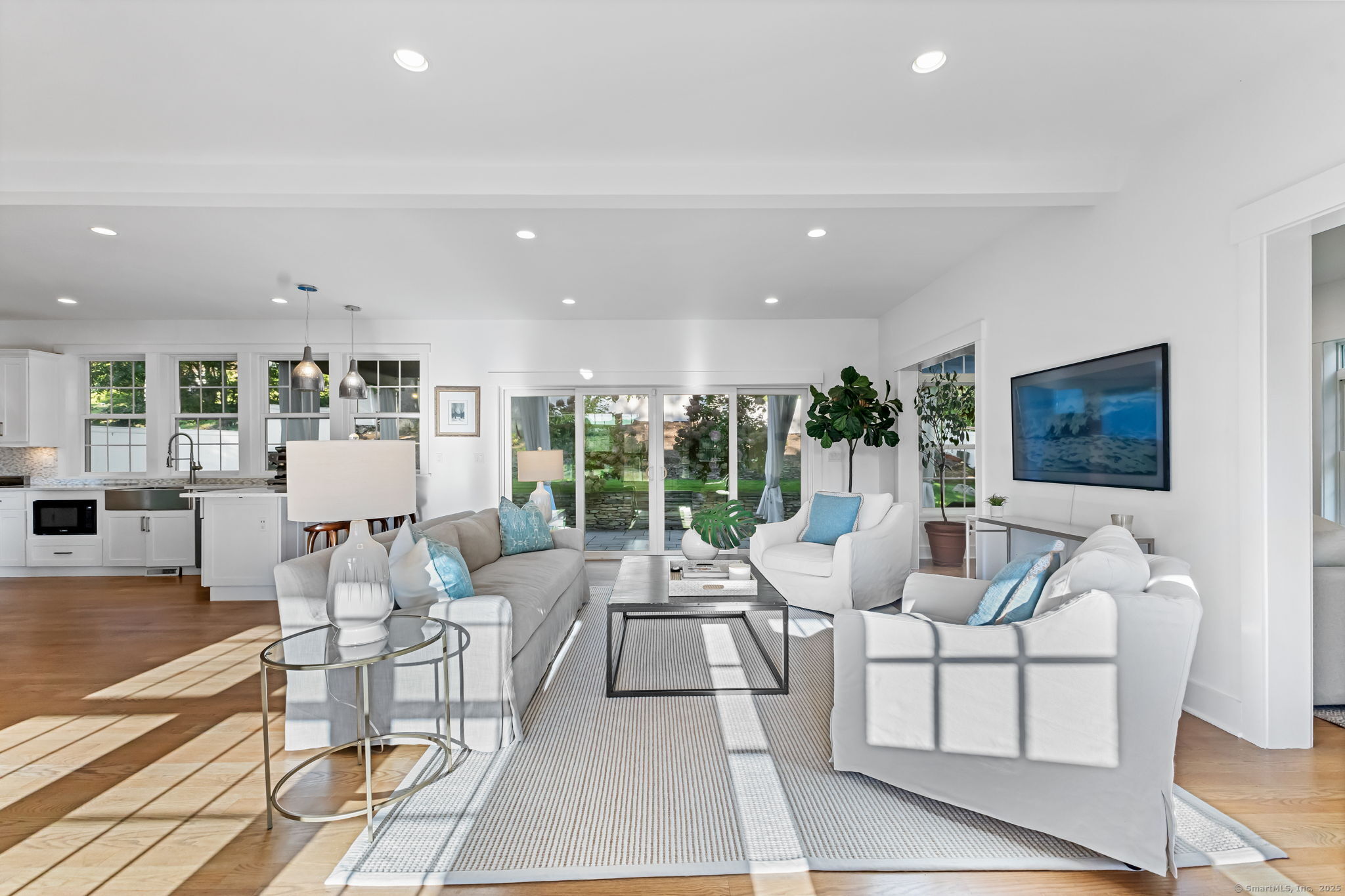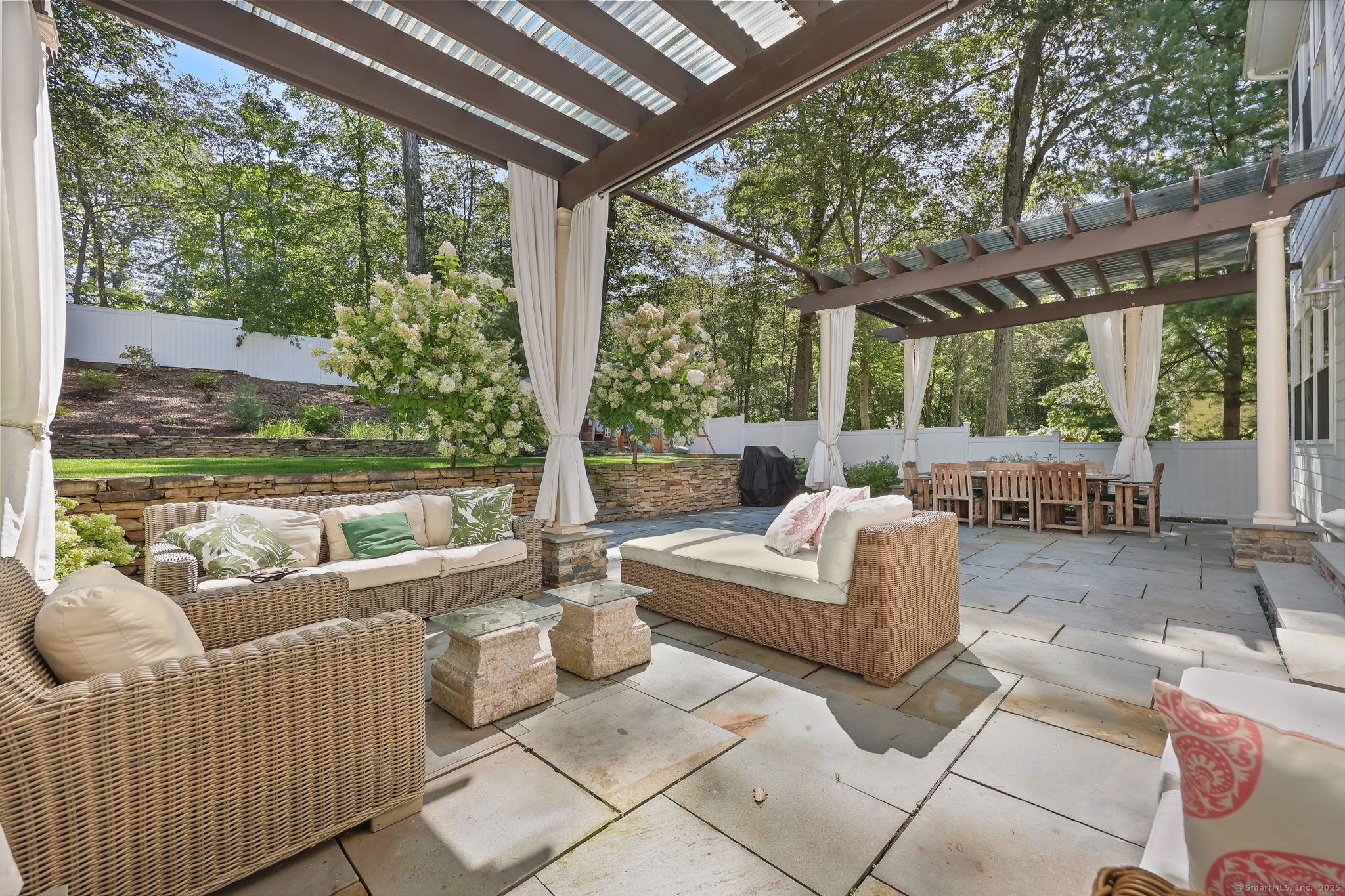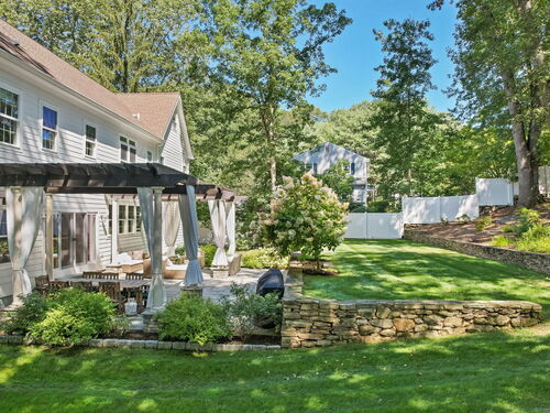 Welcome to 40 Arnold Lane, a charming oasis nestled in a peaceful cul-de-sac in Rowayton. This spacious 3,319 square foot home, re-built in 2017, checks all of the boxes. Upon entering, you are greeted with a gracious open-concept living room and chef's kitchen, seamlessly connected to a formal dining room and cozy den with a gas fireplace. On the second floor, you'll find the master suite, 2 additional bedrooms and bathrooms, and the laundry room along with a connected in-law apartment featuring a 4th bedroom and bathroom, kitchenette, and separate entrance from the backyard. The outdoor living area is equally impressive, with expansive back patios adorned with tall pergolas, offering a serene setting for outdoor gatherings. Enjoy the spacious, flat backyard or unwind on the welcoming front porch. The attached 2-car garage and full semi-finished basement provide the home with ample storage space. Centrally located, this home is a quick walk to the train, walk to town, bike to the beach, and a 5 minute drive to all your local amenities including the new Wegman's and Target.