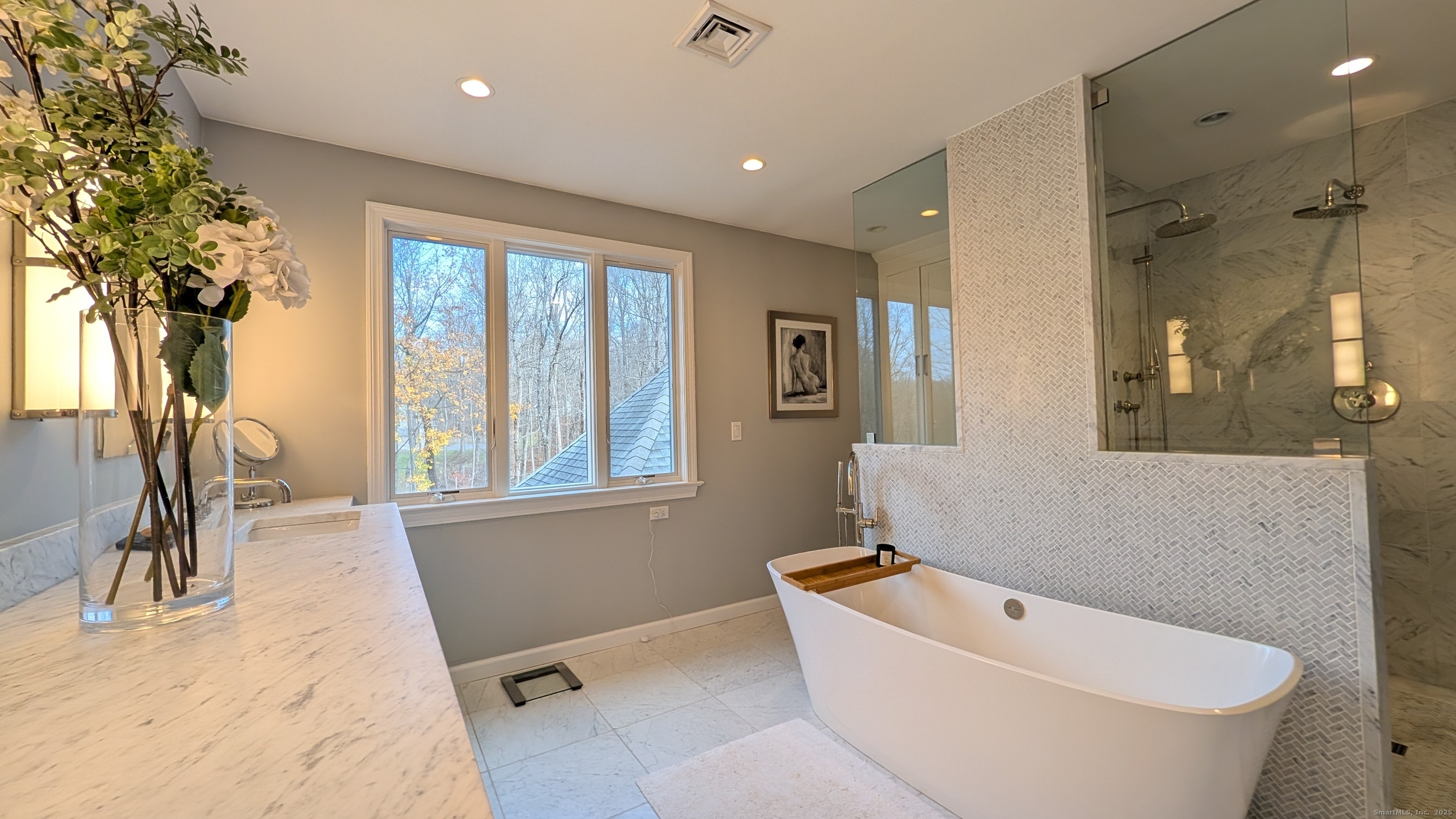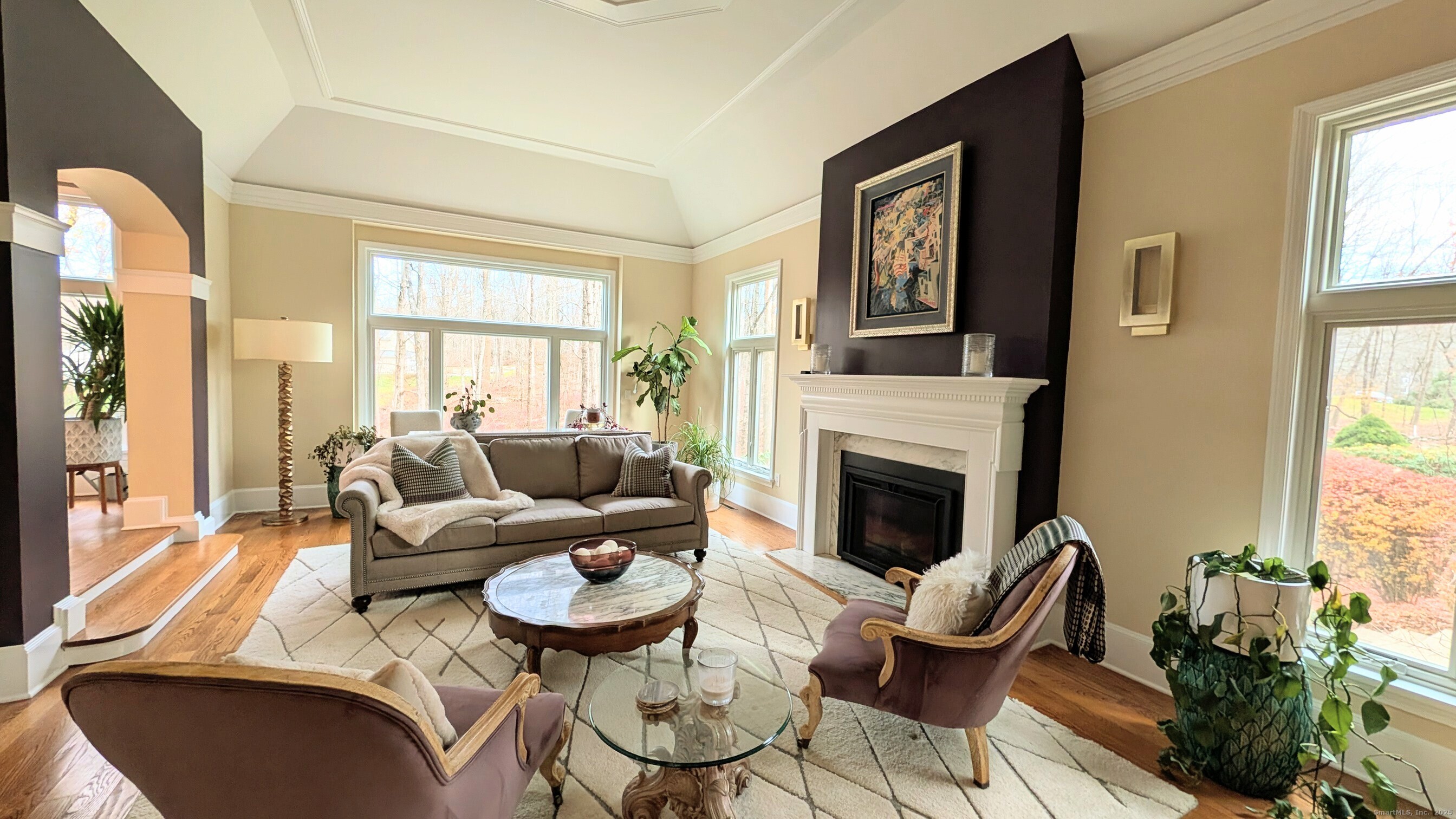 Timeless French Colonial Luxury in a Premier Ridgefield Enclave! Experience the epitome of sophistication at 40 Hull Place, a magnificent French Colonial estate nestled on a pristine, level one-acre plus lot at the end of a private cul-de-sac. Surrounded by lush landscaping and bordered by protected open space, this home offers a perfect blend of privacy, elegance, and distinction. Step through the grand two-story foyer and discover refined interiors designed for luxurious living. Graceful formal spaces flow seamlessly into casual gathering areas, featuring three fireplaces, gleaming hardwood floors, and sun-drenched rooms that exude warmth and character. The gourmet eat-in kitchen with skylight and luminating Quartzite Island countertop anchors the main level, with top-tier appliances, subzero, wolf, and cove, opening to a spacious Dining rm and family rm and French doors leading to an expansive deck overlooking manicured grounds, an entertainer's dream. Upstairs, the primary suite offers a serene sanctuary with a spa-inspired bath and abundant closet space, and secondary baths have been thoughtfully re-imagined with exceptional finishes, creating spa-like retreat, reflecting the owners' commitment to long-term comfort and quality. Additional bedrooms are generous in size and beautifully appointed, providing comfort for family or guests.