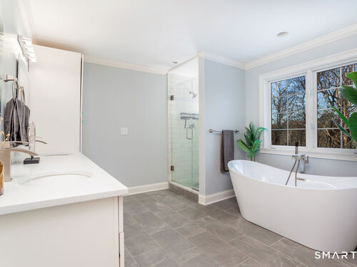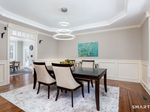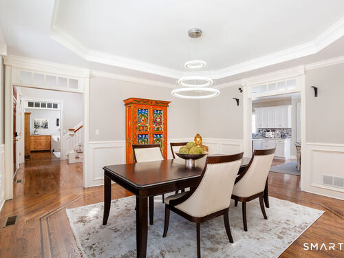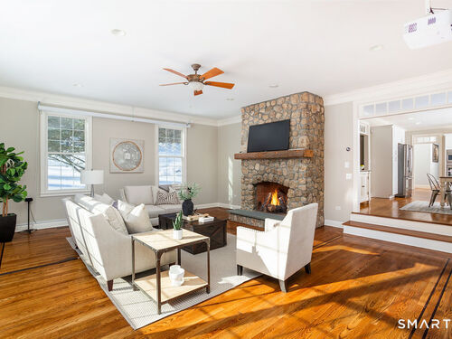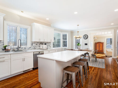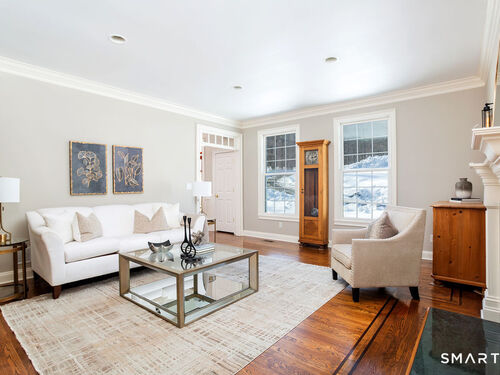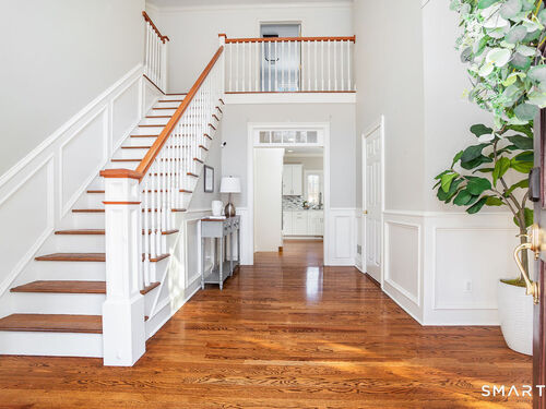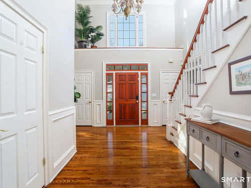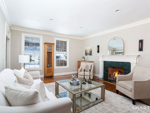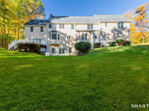 Beautifully updated five-bedroom "smart-home" offers an exceptional blend of state-of-the-art amenities, thoughtful upgrades, & refined design for effortless, elegant living. A dramatic two-story foyer sets a striking first impression, opening to gracious entertaining spaces including a formal dining room & an inviting living room w/fireplace. At the heart of the home is a stunning chef's kitchen, w/a large Carrara quartz island, & premium high-end appliances. A sun-filled study/library w/custom built-ins provides the perfect work from home retreat. A thoughtfully designed secondary rear staircase w/a chairlift, discreetly positioned for convenience, offers enhanced functionality, flexibility for multigenerational living. The expansive family room features a magnificent stone fireplace & French doors that lead to a spacious deck, ideal for indoor-outdoor entertaining. The second level continues to impress w/a luxurious primary suite, w/ fireplace, sitting room, dressing room, & an expansive walk-in closet. The spa -inspired marble primary bath offers a true retreat-like experience. Four additional generously sized bedrooms share two well-appointed Jack-and -Jill bathrooms. The walk-out lower level, boasts high ceilings & an additional 2089 sq. ft. The home has numerous capital upgrades, including a new furnace,new water heater, updated septic system, whole house generator, comprehensive smart-home monitoring system & a three-stage reverse osmosis water filtration system.