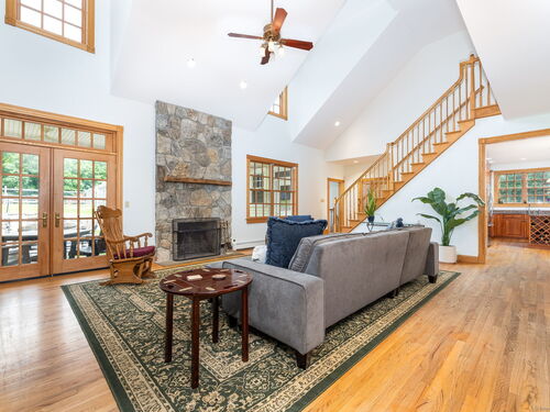 Step into your dream home where timeless craftsmanship meets resort-style living. This stunning custom-built residence blends elegance, comfort, and function. From the moment you arrive, you'll notice exceptional details: rich hardwood floors, custom millwork, and soaring 9-foot ceilings throughout. Designed for both grand entertaining and everyday living, the layout flows from a welcoming entry to a formal living room and spacious dining area. At the heart of the home is a chef's kitchen featuring a gas Viking stove, stainless steel appliances, granite countertops, and custom cabinetry-both beautiful and built to perform.The spectacular family room boasts cathedral ceilings, a dramatic stone fireplace, and sunlit windows leading to a covered patio, perfect for coffee mornings, brunch gatherings, or evening cocktails. The main-level primary suite is a luxurious retreat with a spa-like en suite bath and generous walk-in closet. Upstairs, you'll find three sizable bedrooms, a private home office, and a versatile recreation room ideal for movie nights, gaming, or creative projects. Step outside to your own private oasis: an expansive custom patio with a built-in fire pit, a 20x40 ft in-ground pool, and not one but two pool houses-ideal for entertaining or relaxing weekends.This home isn't just a place to live, it's a lifestyle upgrade. Come experience comfort, elegance, and everyday luxury.