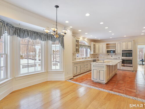 Bay/Bow Window, Dining Area, Island, Hardwood Floor, Tile Floor