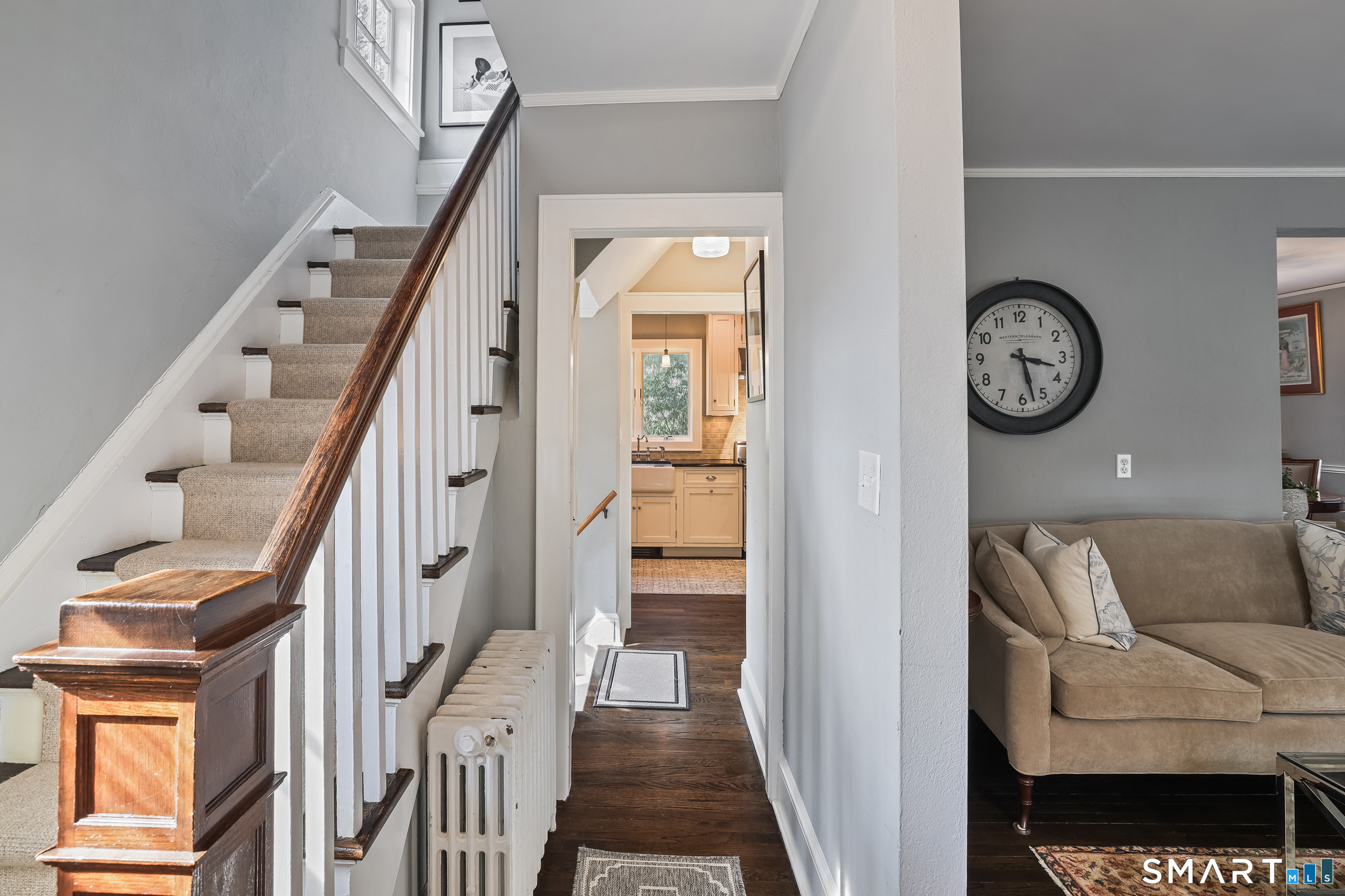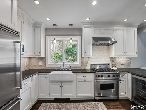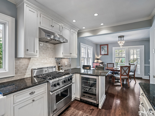 Move-in-ready, renovated New Canaan charmer. This three-bedroom home is a true gem, featuring 1930s vintage architectural details alongside extensive recent updates. Key highlights of the property include: Main Level: An updated kitchen with top-of-the-line stainless appliances and a sitting island, opens to the dining room, and a living room. Easy access to outdoor patio. Second Floor: An owner suite with hardwood floors and a large walk-in closet, plus two additional bedrooms, a full bath, and a large linen closet. Lower Level: A finished recreational playroom, laundry area, workroom, and storage closet. Additional Storage: Plentiful space in the walk-up attic. Exterior: A level backyard with a two-car garage and a private courtyard patio, perfect for relaxation and entertaining. Ideally located for commuters, this home offers easy access to West Elementary School, the town center, Metro-North, and the Parkway.