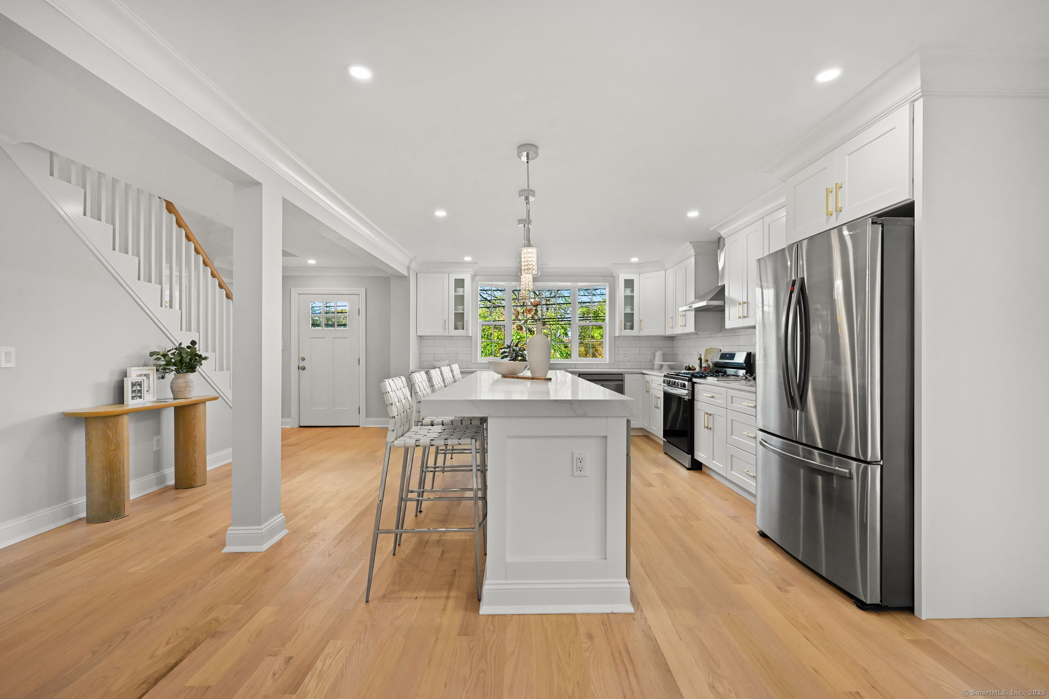 Newly rebuilt modern Colonial blends timeless charm with high-end craftsmanship. Over 3,000 sq ft of luxurious space includes 4 bedrooms, 3 baths, and sun-filled open living areas perfect for connecting with family and guests. Enjoy this gourmet chef's kitchen with quartz countertops, stainless appliances, and custom cabinetry, a large sunny family room with fireplace, and access to outdoor patio. Upper level offers a primary suite retreat with spa bath and walk-in closet and two generous bedrooms and a full bath. its 4th bedroom on main floor offers an individual access can use as home or commercial office. Every detail shines-from rich hardwood floors and elegant crown molding to new mechanical equipment, roof, and siding. Truly like a brand new house! Located in Nichols section and only minutes from Rt 8, Rt 15, parks, and shopping-move right in and experience elevated Trumbull living.