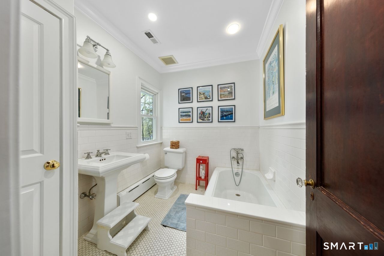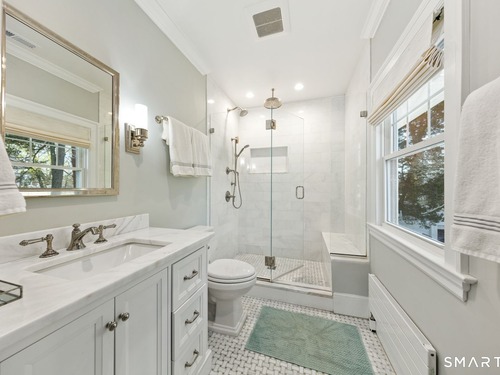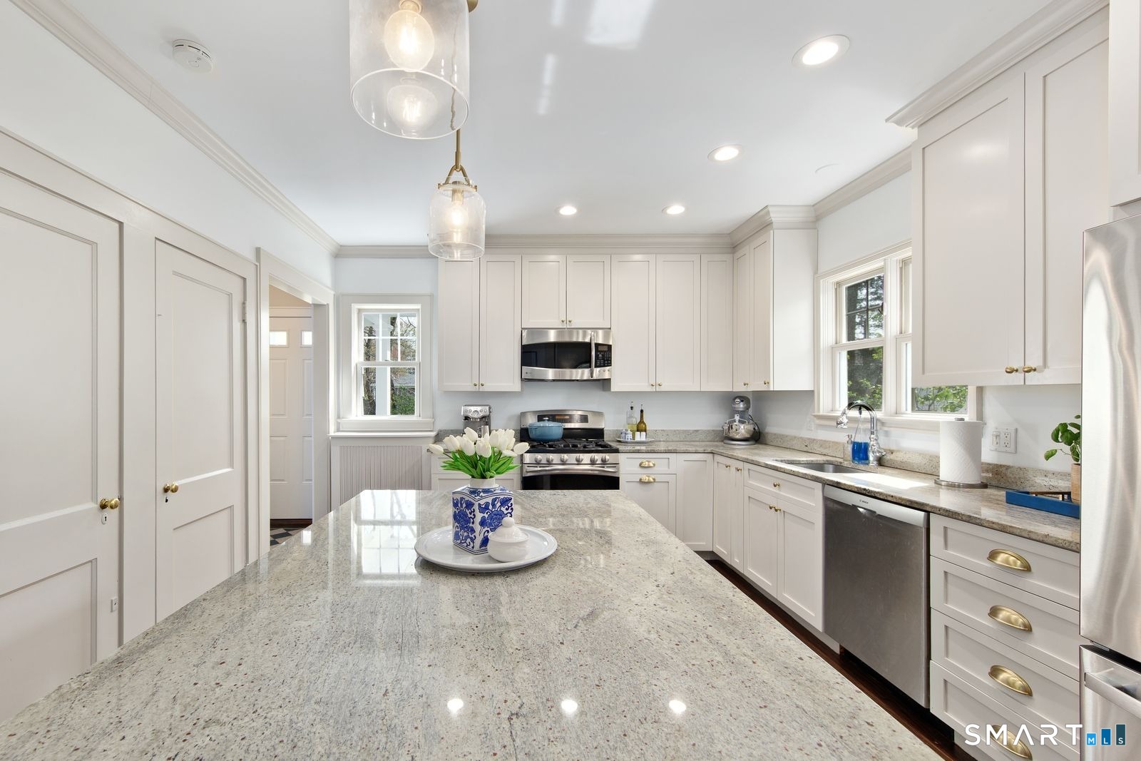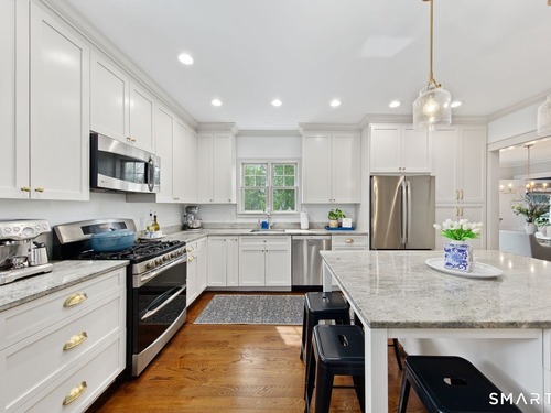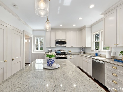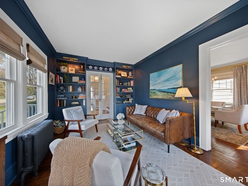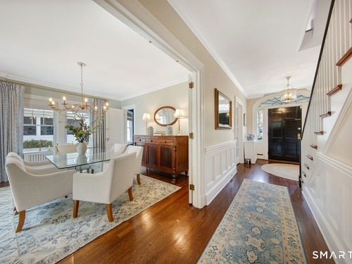 If you've been waiting for that classic New England Colonial that actually lives up to the charm, 41 Chester might be it. Tucked on a quiet, tree-lined street yet a short walk to grocery, coffee, gym and more, this location nails the balance of neighborhood feel and everyday convenience, with easy access to Metro-North, downtown, I-95 and the Merritt. Inside, it's the layout buyers want: true center-hall flow with a bright living room, dining room, updated kitchen, and a study with custom built-ins that works as a second living space or home office. Just off the main living space, the screened-in porch extends your living area and is the spot for morning coffee or relaxed summer nights. Upstairs, the renovated primary suite offers dual closets and an updated bath, while additional bedrooms are well-sized and an expansive walk-up attic offers great storage or future upside. Features two staircases, including a rear staircase off the kitchen for easy second-floor access and a practical everyday flow. The backyard is set up for real use with a new bluestone patio, fire pit and level yard, plus easy indoor-outdoor flow. Major upgrades include 200 amp electrical, new boiler, newer hot water tank, attic spray foam, second floor AC, exterior paint, drainage, repaved driveway with Belgium block, and French drains and sump pump in the basement. This is the one where you get all the charm and no projects.