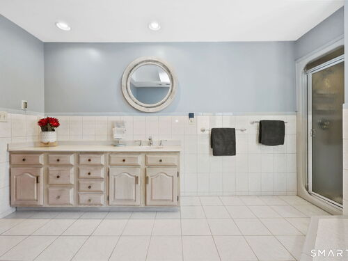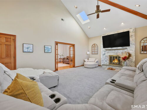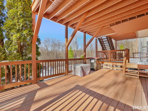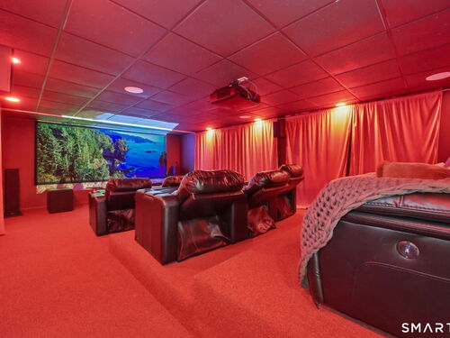 Tucked away at the end of a quiet cul de sac colonial gorgeous home. It's Blend modern luxury with thoughtful design and quality throughout . Be wowed by the timeless curb appeal as you approach this elegant 5 Bedroom home. Step into the welcoming foyer and be struck by tons of natural light. The adjacent office and recreation room offers a multifunctional space that can be used for both work and relaxation, promoting a better work-life balance. One the first floor there is a 1,200 SQFT 2 bedroom-law-apt with great kitchen, living room, breakfast area with private deck. Upstairs the Family room with fireplace and vaulted ceilings, stunning living room and dining room create the perfect backdrop for intimate gatherings or formal entertaining. Kitchen with granite counters tops & skylights, spacious master bedroom suite and two other bedrooms all with gleaming hardwood flooring.The primary suite is a private retreat, complete with a luxury bath with hot tub. Step thru the breezeway to an expansive deck terrace where indoor and outdoor living merge effortlessly, with views of the private grounds, take a break and relax by the fire pit. Downstairs the house offers the private cinematic luxury home theater for entertainment zone with starlight ceiling. The Gym gives a productivity design of fitness area and the sauna a meditative space for peaceful escape. The Property offers unmatched luxury, this is a home of exceptional lifestyle, a move-in-ready home with no detail overlooked.