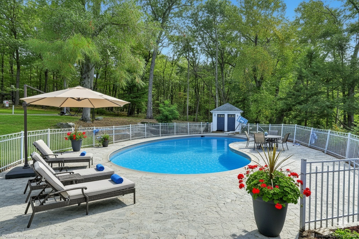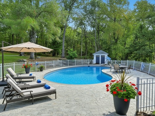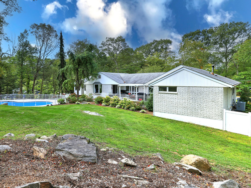This custom-built, oversized 4-bedroom, 3.5-bath ranch is a rare gem, set on over an acre of professionally landscaped, park-like grounds. Step inside to find a completely renovated main floor featuring updated bedrooms and bathrooms, a stunning kitchen, and gleaming hardwood floors throughout. The luxurious primary suite includes a full bath, dressing room, and French doors for a private retreat. The partially-finished basement adds incredible versatility, offering 1 additional in-law suite with a full bath and living room space, a home gym with sauna, and plenty of space for guests, work, or recreation. Outside, enjoy resort-style living with a newly renovated backyard oasis-complete with a playground, basketball court, deer fencing and an upgraded pool. Entertain on the beautiful patio or relax in the serene outdoor setting. Additional updates include new water tanks, a new heating system, central air, and a 4-car garage. (See attached document for all new updates) This home truly has it all - space, style, and luxury. Don't miss your chance to make it yours - schedule a showing today!