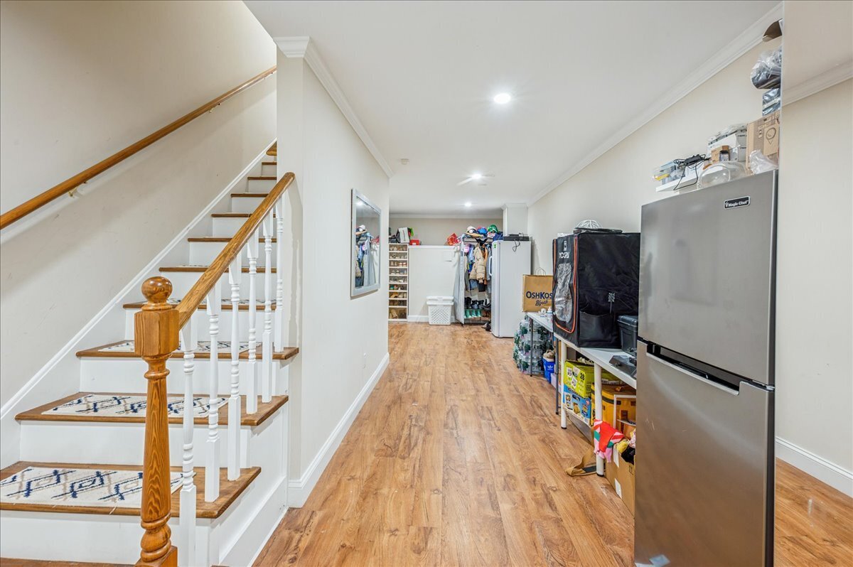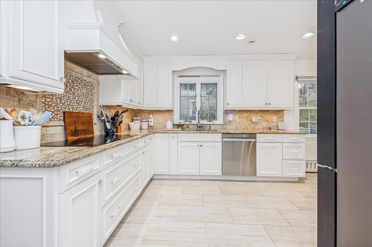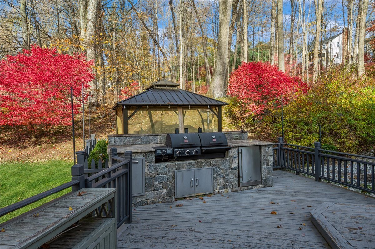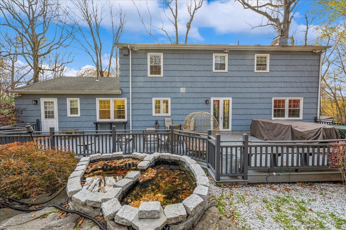 Immaculate Colonial that is spacious and bright with an open floor plan while keeping the charming colonial feel. Inviting foyer leads to the Living room with gleaming hardwood floors and fireplace. The gracious dining room with french doors to the deck. The large updated kitchen has granite counters and new stainless steel appliances and a wine cooler . A mud room is tucked off the kitchen by the back door that goes out to the deck and lovely private back yard. There is a family room with built ins and shelves. The office also has built in cabinets and shelving. The powder room completes the first floor. The spacious master bedroom has a bath and walk in closet. There are 3 other bedrooms and a bath. The lower level has a rec room, laundry room, storage and media room and leads to the spacious 2 car garage . The backyard is quite nice with a pergola, outside kitchen and patio along with a fish pond. A tranquil retreat is right here. Property goes way back past the bushesand can be flattened which adds a lot more flat yard. Sellers will be making a decision for offers on Friday 11/21/25 by the end of the day.