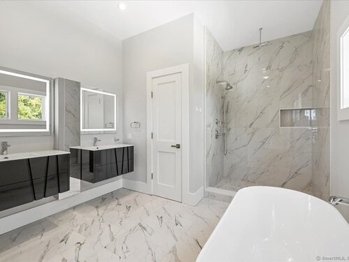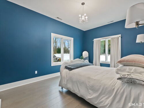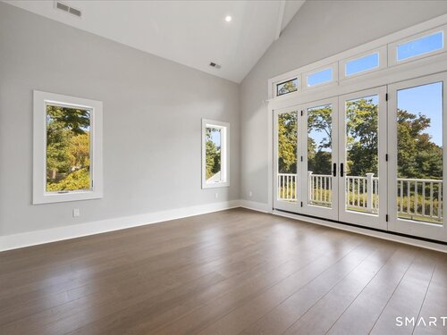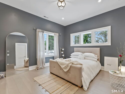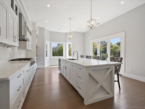 Newer construction featuring elegant French provincial design on over 2 lovely open acres of rolling land bordering an estate area of Greenwich and enjoying a Greenwich address. Driving time to downtown Greenwich is 14 minutes. Flexible open floor plan features eat-in gourmet kitchen w/breakfast room and center island w/stool seating. The large adjacent family room has a fireplace and a wall of oversized picture windows providing dramatic views of the open lawns. The primary bedroom, with balcony, also enjoys lovely easterly views of the morning sun. The primary bath has both a shower and soaking tub. Additional bedrooms, multiple baths, office/den, formal dining room & mudroom with laundry completes the 1st level. Two bedrooms and bath on the 2nd level, plus a walkout lower level offers endless options for this distinctive home. Stamford schools:Roxbury Elem, Cloonan MS & Westhill High.