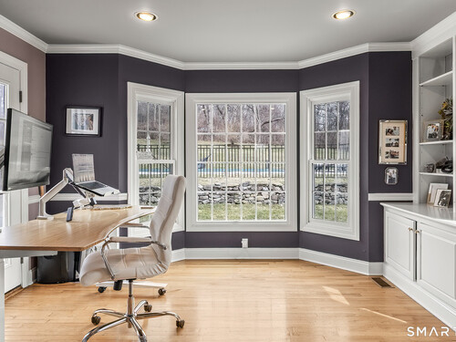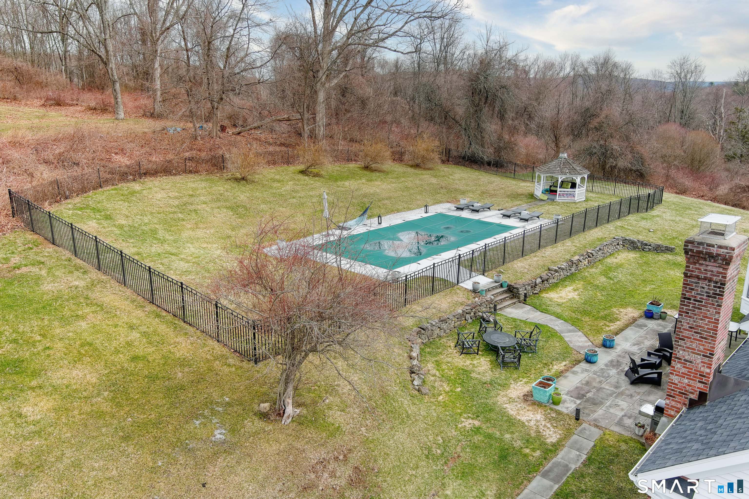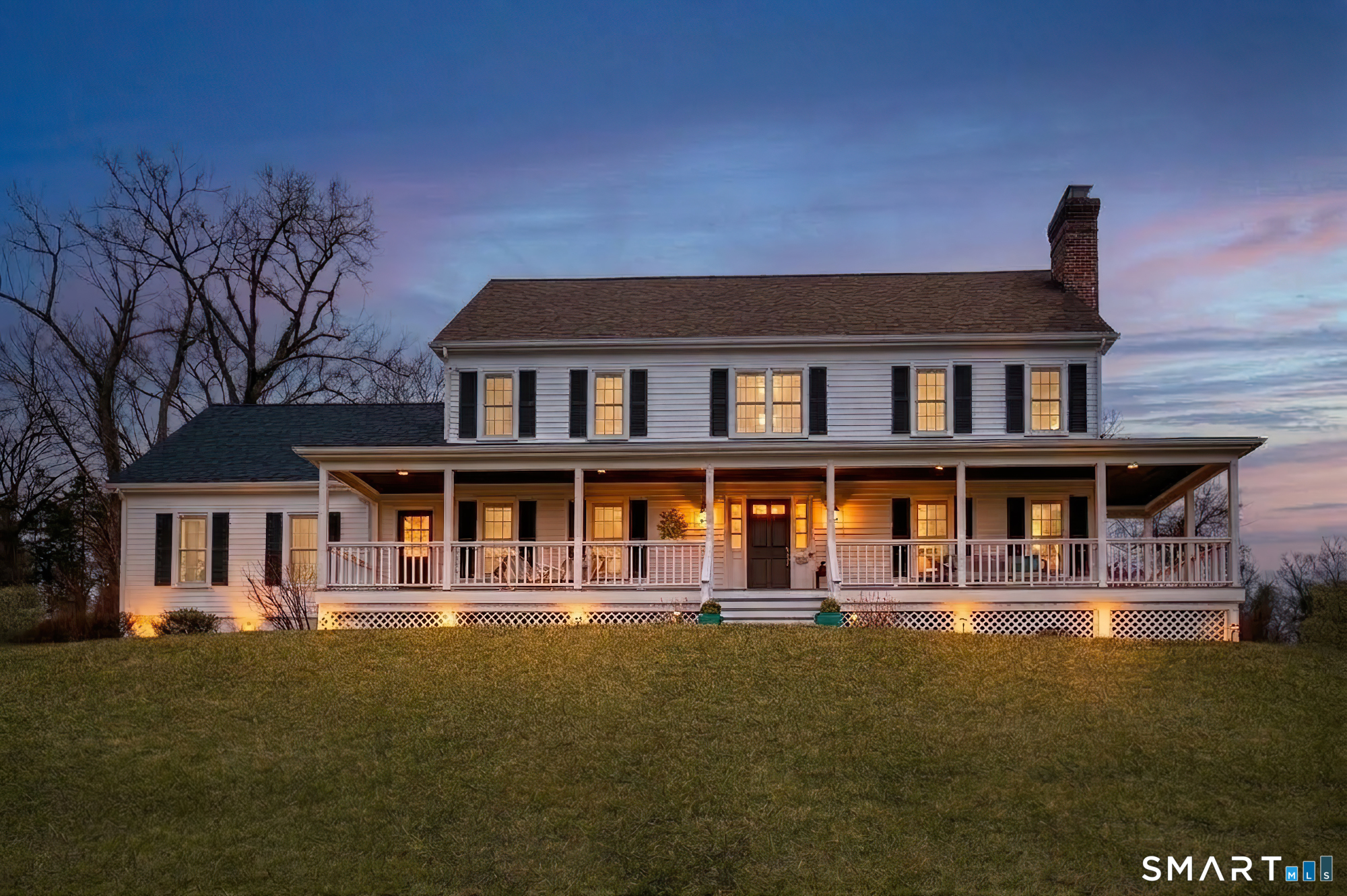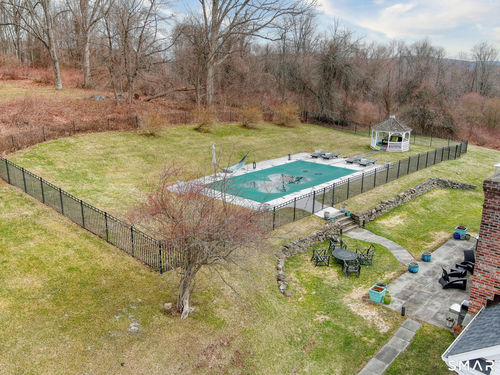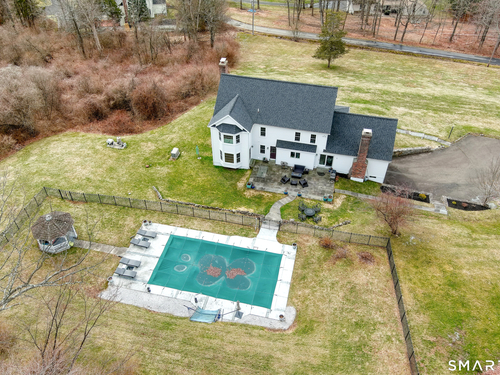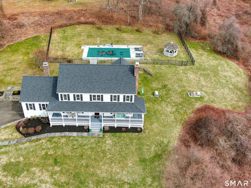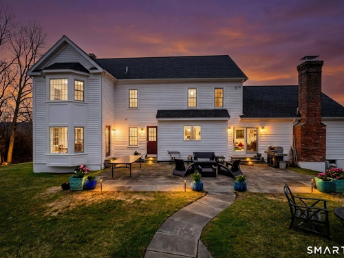 Magnetically sited on a picturesque three-acre lot, this beautifully updated Colonial Farmhouse offers the perfect fusion of timeless charm and modern luxury. This turnkey, four bedroom, 3.5-bathroom residence provides an unmatched lifestyle with exceptional features both inside and out. The home features an expansive, open floor plan designed for sophisticated living and seamless entertainment. The main level includes a Formal Living Room with a fireplace, a Formal Dining Room, & a Office with custom built-ins. The large Eat-In Kitchen is open to a huge Family Room with a second fireplace, creating a warm and inviting hub. A main-level Laundry Room and Powder Room add convenience. The Primary Suite is a true retreat with double walk-in closets and stylish new suit bathroom. Additional three generous bedrooms are upstairs and a finished lower level with a full bathroom complete the spacious layout. Experience unparalleled outdoor living in your own private sanctuary. Stunning views greet you from all rooms. The backyard is a true resort-style oasis featuring a Gunite pool, Gazebo, back yard. Multiple outdoor spaces-including a wrapped front porch, bluestone patio facing the pool, are ideal for al fresco dining and year-round enjoyment. Whole house generator. The 3-acre property is lush, private landscaping and amazing sunsets to ensure a magical and secluded escape. This home blends style with functionality, and a prime location just ten minutes to Main Street and highway.