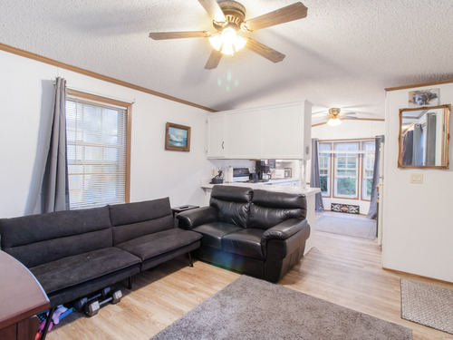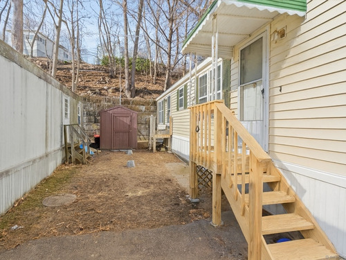Welcome to Shelton! This charming 2-bedroom, 1-bathroom manufactured home is situated on leased land within the Fairchild Heights community, tucked away at the end of a quiet dead-end road. It features a driveway with additional parking available across the street. The white kitchen boasts an open floor plan with a designated dining area and a breakfast bar for extra seating. The home features new flooring and a fresh coat of paint throughout, a recently updated bath and brand-new washer and dryer units conveniently located in the bathroom. A detached shed provides additional storage space. The monthly land lease fee is $424, which includes land rental, garbage collection, snow removal, water, sewer, and park maintenance. The location offers easy access to public transportation and is within walking distance of numerous stores, hotels, and amazing restaurants. It is conveniently located near Route 8 and the Merritt Parkway. Financing is available through mobile home financing companies. Prospective buyers must meet with park management for approval, with a non-refundable fee of $180. The property must be owner-occupied and is being sold "as is, where is." It cannot be rented out. Pets are allowed but require approval from park management. Experience the perfect blend of comfort and accessibility in this ideally located home. Subject to seller finding suitable housing.
