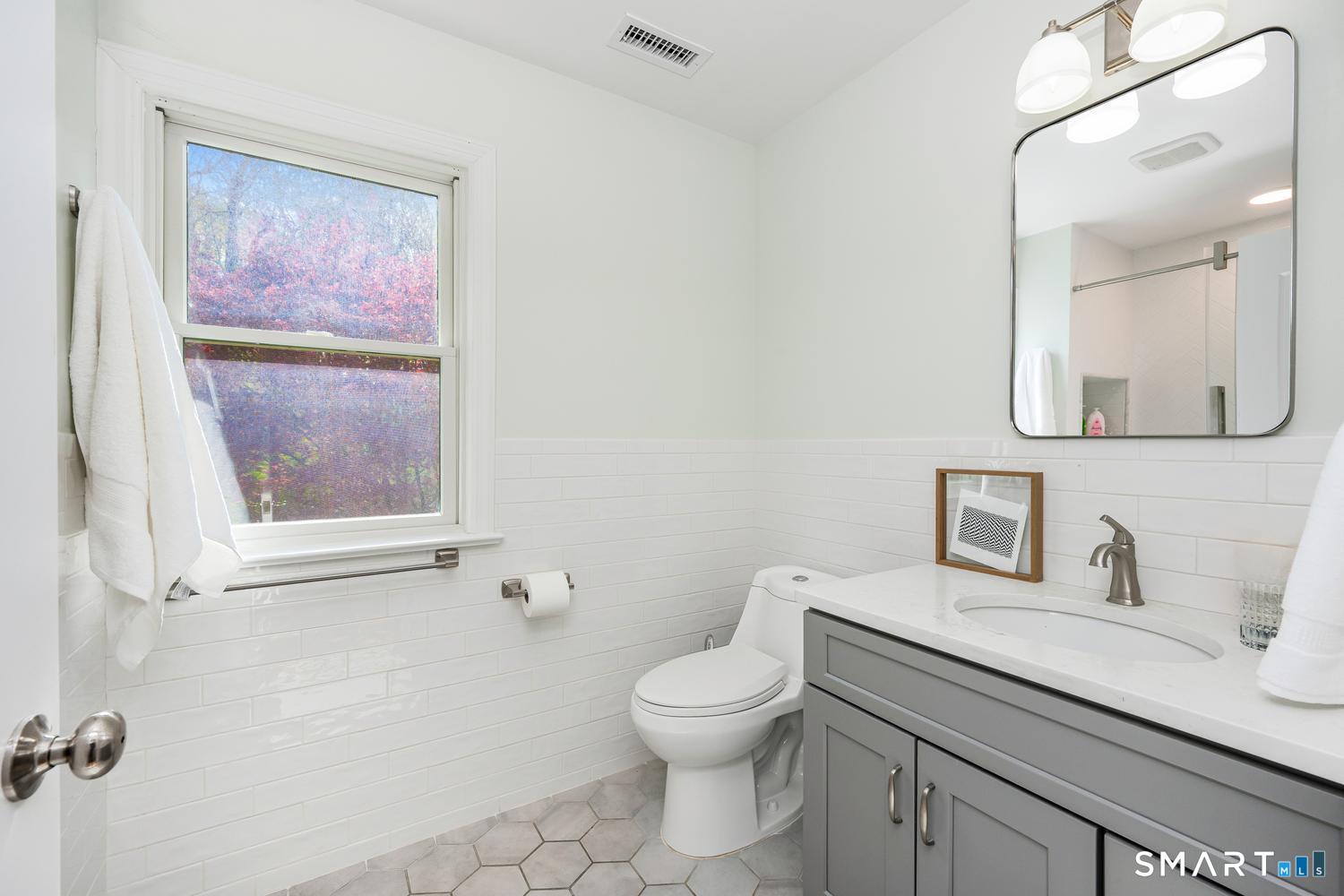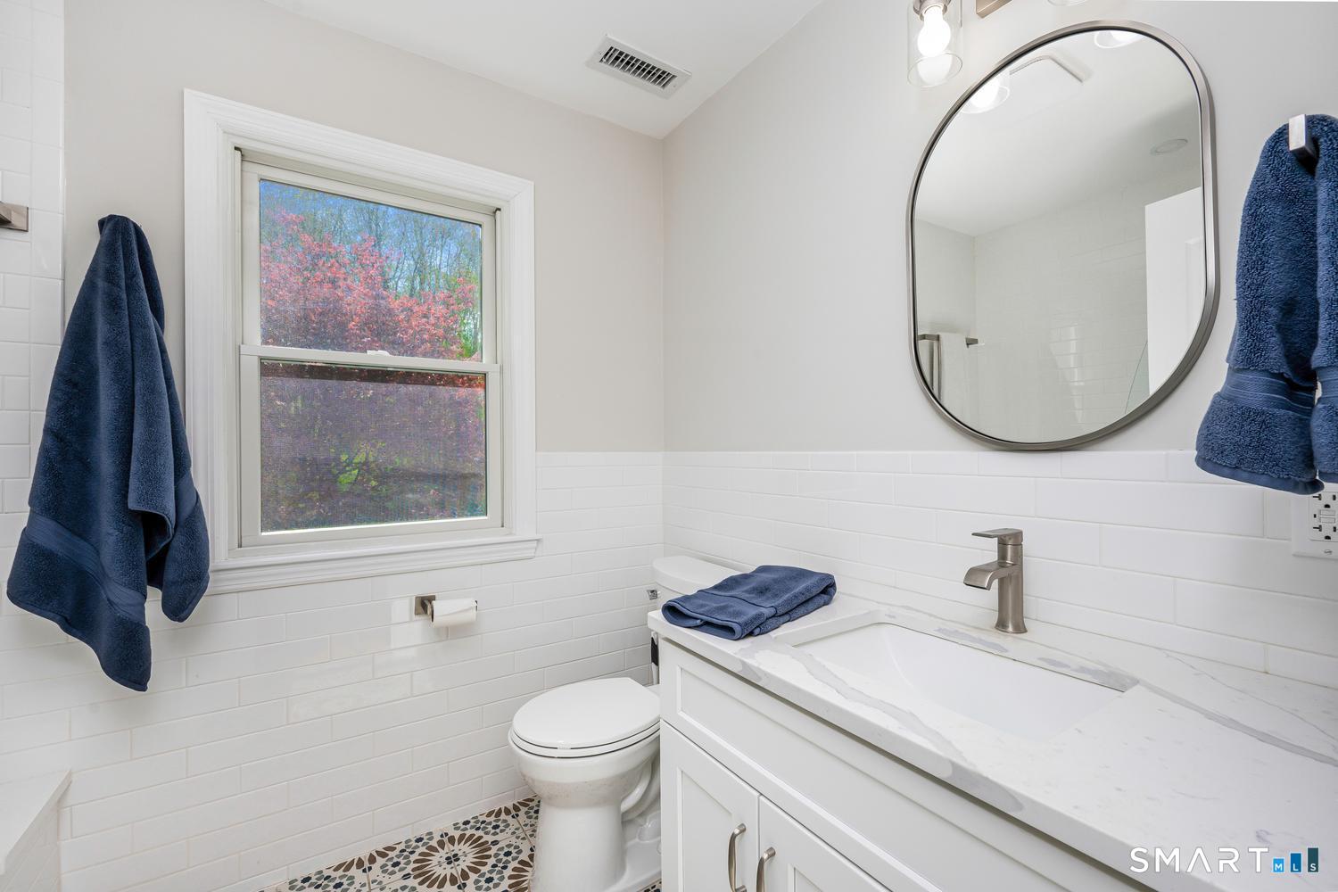 Full Bath (Upper Level)Quartz Counters, Tile Floor