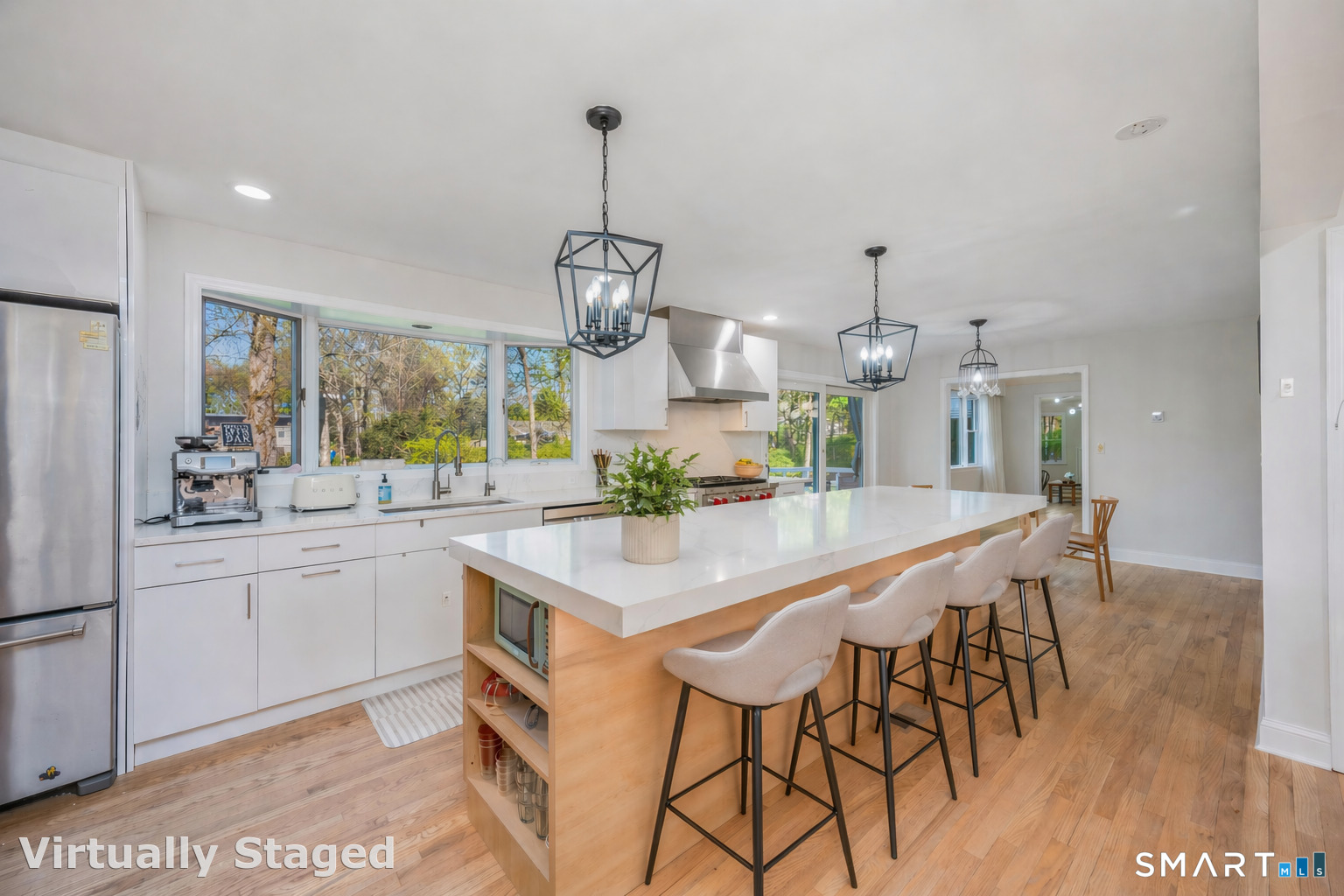 Eat In Kitchen (Main Level)Quartz Counters, Dining Area, Island, Sliders, Hardwood Floor