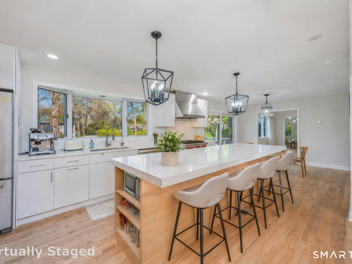 Nestled at the end of a quiet cul-de-sac in sought-after South Wilton, this expanded 5-bedroom Colonial offers the perfect blend of space, style, and convenience. Beautifully renovated throughout, the home features a stunning chef's kitchen with a 10-foot quartz island, 6-burner Wolf gas cooktop, and sliders that open to a spacious deck overlooking a level backyard, ideal for entertaining and everyday living. The main level boasts generous gathering spaces, perfect for both relaxed living and hosting , along with a dedicated home office. Upstairs you will find a 5 bedrooms, including a well-appointed primary suite with another home office, and a luxurious bath with heated floors, large shower and separate tub. Two more fully renovated full baths and laundry is conveniently located on this floor. Extensive updates include: new AC systems, new windows, completely renovated kitchen and baths, refinished floors, a new portico and more! (Please see full list of improvement in documents) Enjoy move-in ready living in a prime location just minutes from downtown Wilton, top-rated schools, major highways, and easy access to NYC! *Deck to be painted when weather permits.