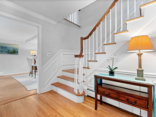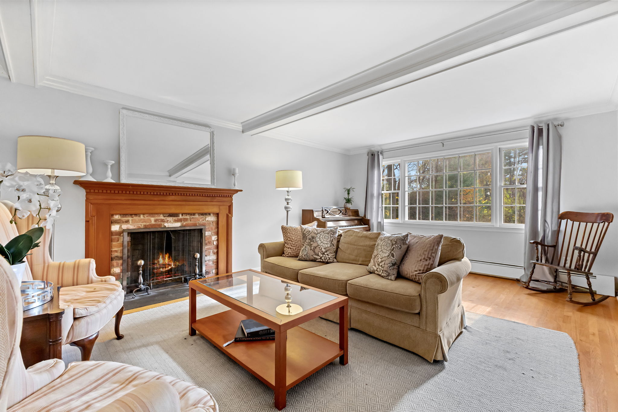 Classic 5-bedroom Colonial in the coveted Behind the Y neighborhood-just a short walk to schools, the YMCA, and Waveny Park. With over 3,500 sq. ft. of living space, this home features a front-to-back living room with fireplace, a sun-filled dining room, and a kitchen that opens to a step-down family room with fireplace and French doors leading to the terrace and private backyard. A study with fireplace provides a quiet retreat, while the flexible layout includes an au pair or in-law suite with sitting room and separate entrance. This home also offers a lower-level playroom and attached potting shed. With great bones and a fantastic location, it offers an excellent opportunity for updates and personal touches to make it your own. With sidewalks to town, you cannot beat this location. Welcome to 44 Putnam Rd!