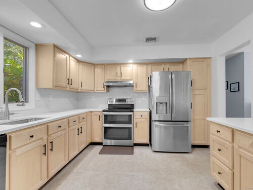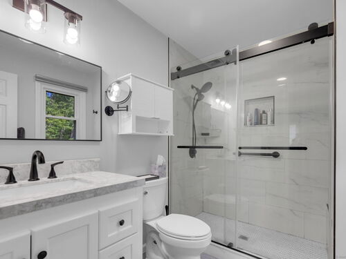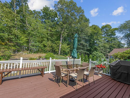 Meticulously Maintained and move in ready Raised Ranch. Recent upgrades include: New roof, gutters, leaf guards and soffit, new boiler, new thermopane windows, renovated kitchen with quartz countertops, renovated master bath with walk in shower. Renovated hallway bath with new tub, new bluestone walkway and front porch, irrigation system, new garage doors and new air conditioning system. Open concept floor plan with generous living and entertainment spaces. The lower level space (with half bath) offers endless possibilities: home office, gym, media room or guest suite. Outside, rolling grounds and a spacious backyard provide the perfect backdrop for summer barbecues, gardening and play. A rare combination of privacy, style & convenience!