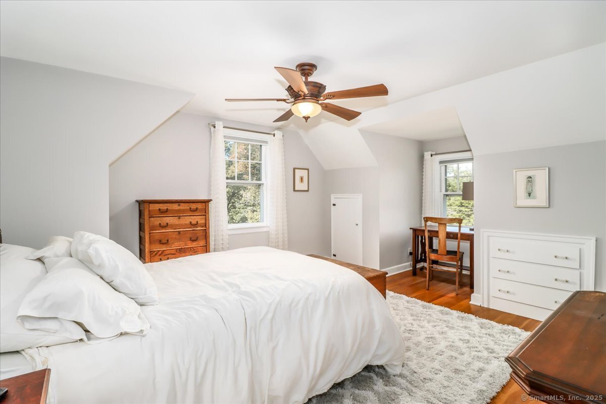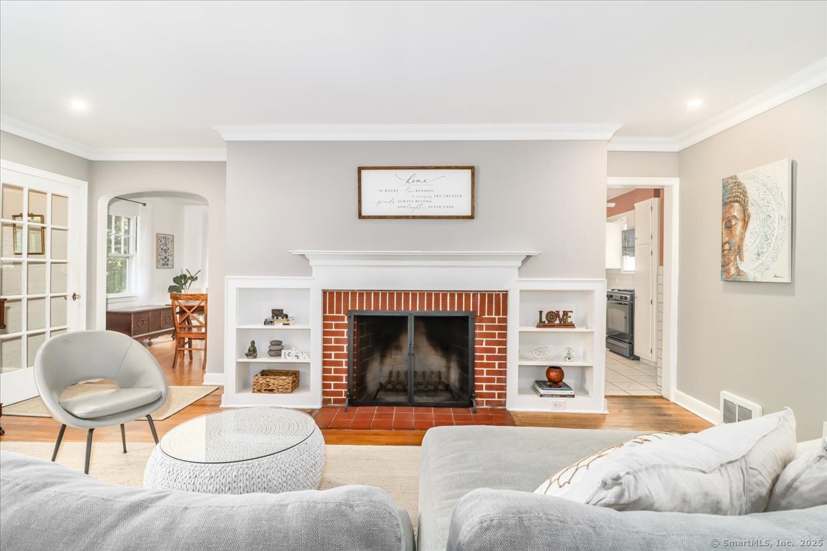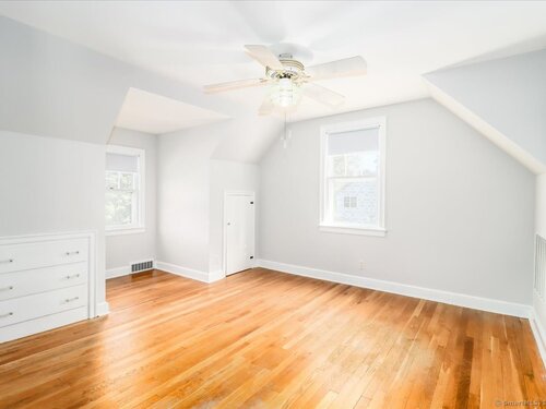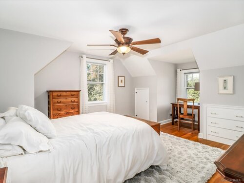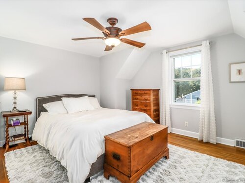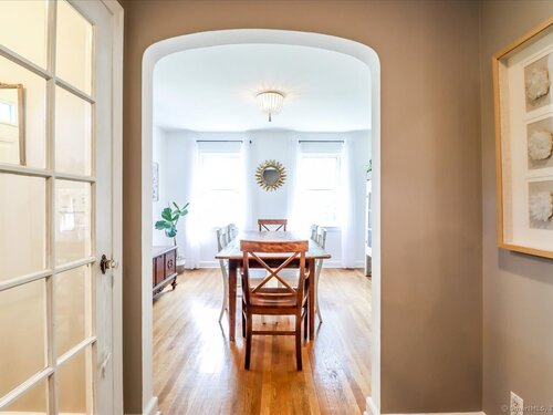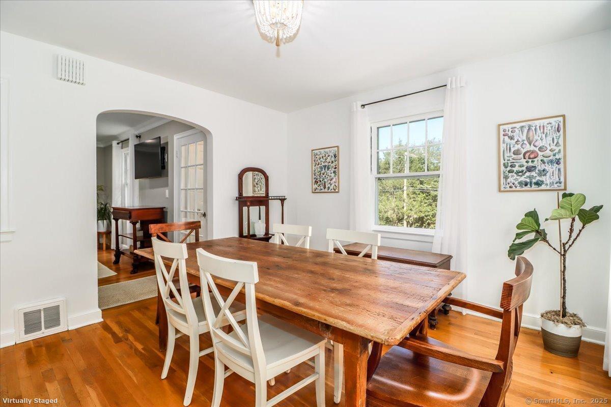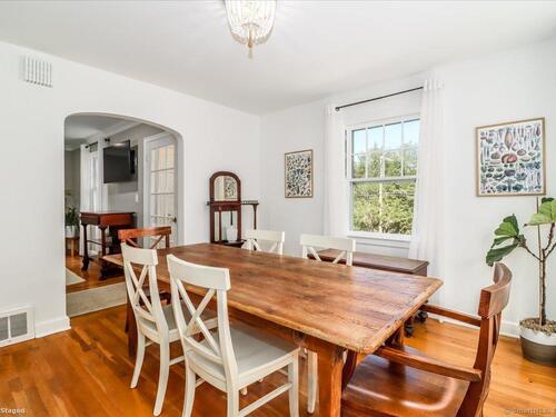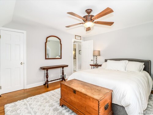 Catch the breezes atop this stylish custom built Cape loaded with charm and a great find in a vibrant community. Arched doorways, glass door knobs, wood railings, built ins, and crown molding offer a unique combination of beauty and history. The main level arrangement is a welcome surprise featuring a full size family room with a brick fireplace, recessed lighting, and oversized windows for natural light. The eat in kitchen has plenty of counters and cabinets for those who like to cook. The formal dining room is a perfect gathering space for hosting guests. The multipurpose flex room has its own door and its primary benefit is versatility. The first floor is complete with a convenient half bath. The upper level features two generously sized bedrooms with lots of drawers and closet space for storage. The top of the line spa inspired full bath was remodeled using cutting edge technology and premium materials. Both levels are surrounded by hardwood floors. The home sits on a deep lot, has a private level backyard, and tons of off street parking. The yard has irrigation, walkways, patios, and winding paths that will help calm your mind. The garage has room for expansion to accommodate more vehicles or workspace in the future. The lower level has added space that was originally a root and wine cellar. Enjoy energy efficient mechanicals, central air, natural gas, copper gutters, and new paint. Minutes to schools, recreation, golf, and walking trails. Come take a look.