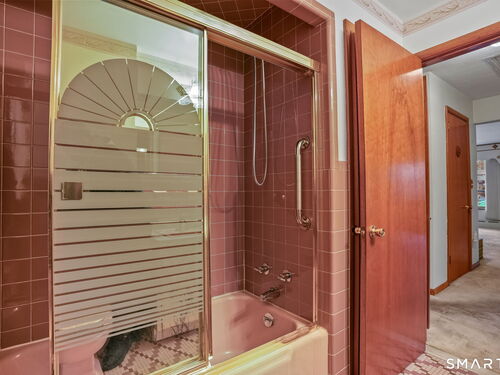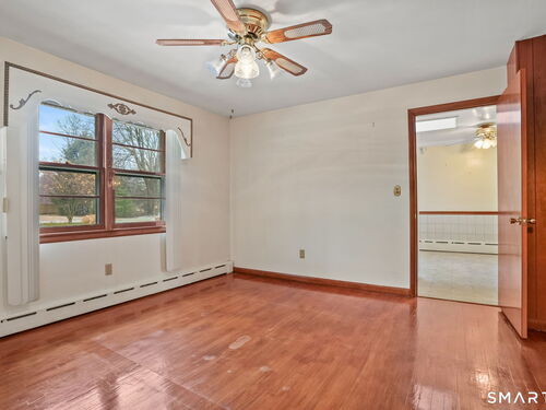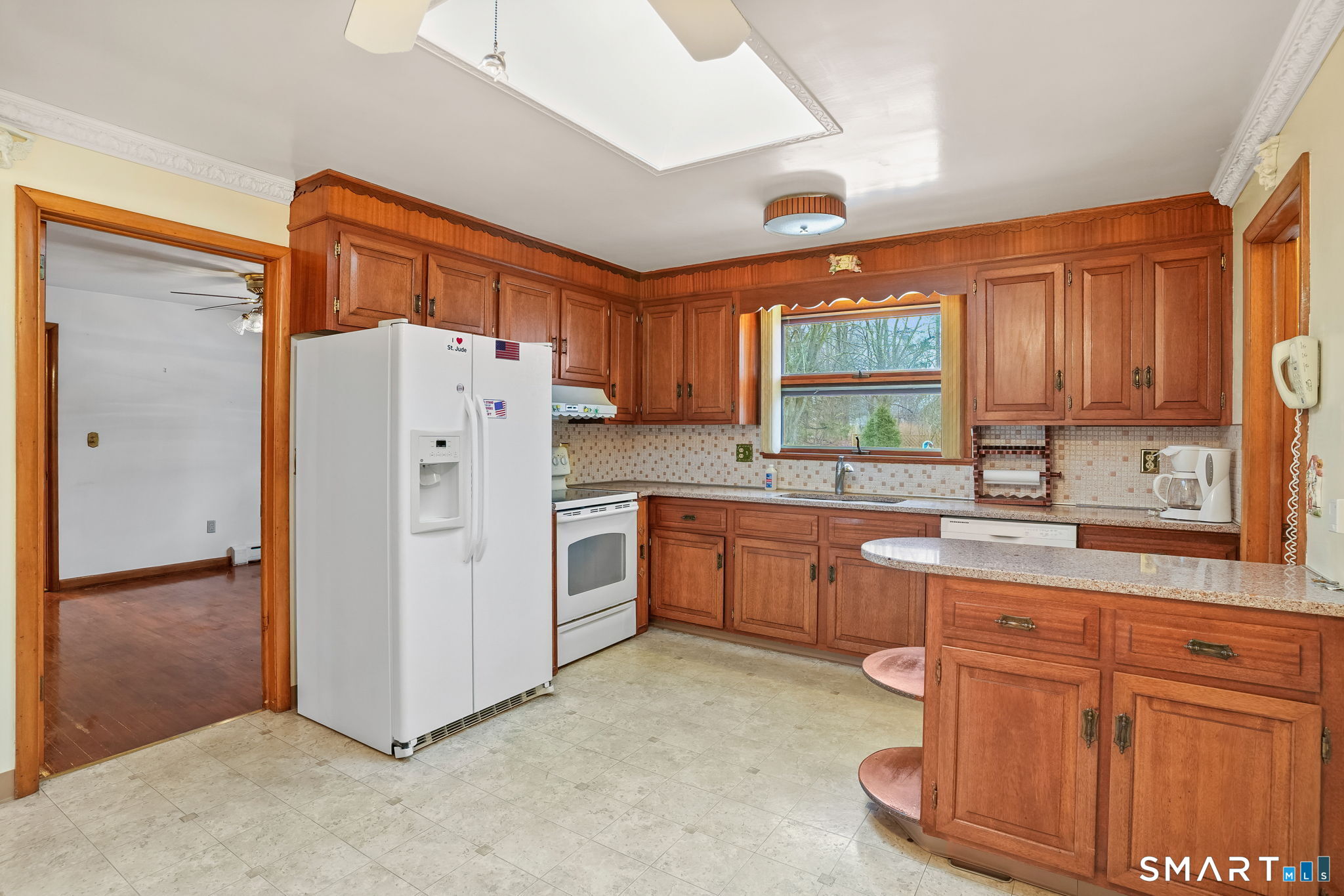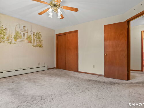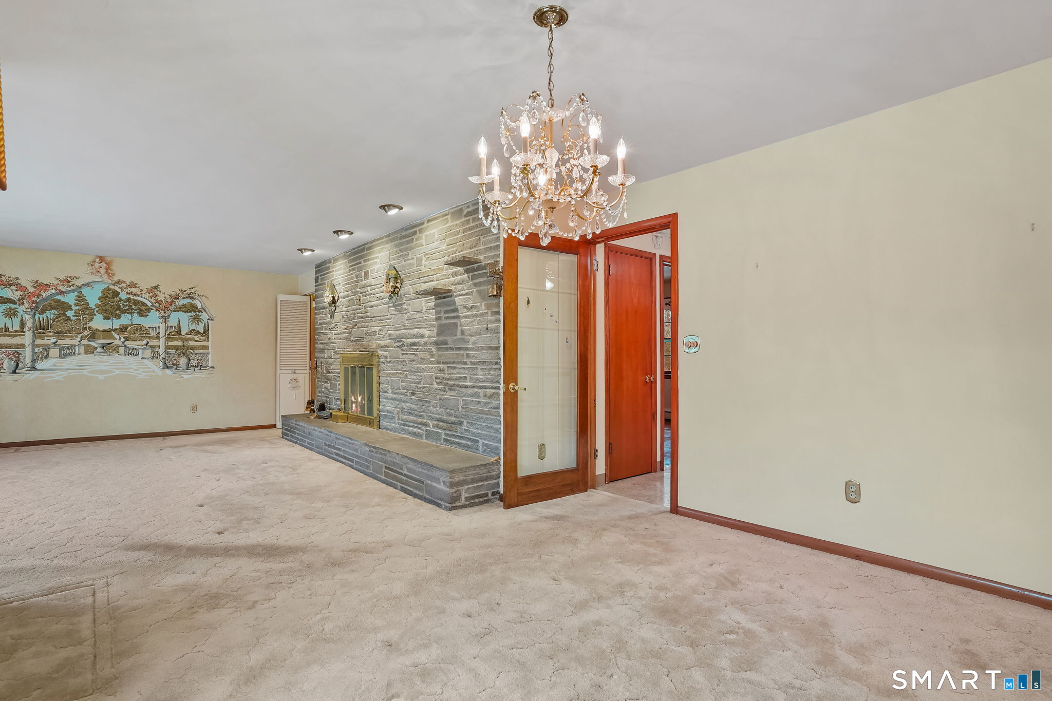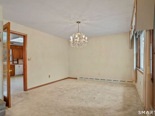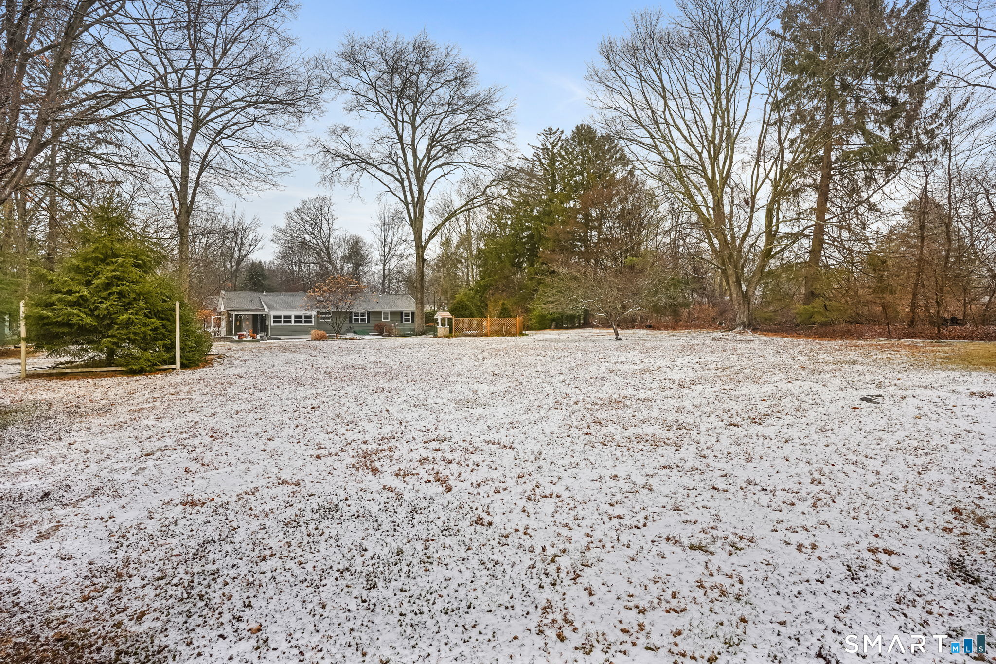 Sun-filled 7-room, 3-bedroom, 2 full bath ranch set on a picturesque, level 1.07-acre park-like lot in a desirable Trumbull neighborhood near Canoe Brook Lake, schools, parks, shopping, and highways. This home offers the ease and comfort of single-level living, ideal for downsizers or those seeking convenience without sacrificing space. The expansive living room features a dramatic wall-to-wall, floor-to-ceiling natural stone fireplace with raised hearth and a large bay window that fills the home with natural light. Hardwood floors run throughout the main level beneath wall-to-wall carpeting. A generous dining area with picture window flows seamlessly from the living room. The spacious eat-in kitchen offers cherrywood cabinetry, granite countertops, vinyl flooring, skylight, ceiling fan, and ample dining space. Two fully tiled full bathrooms, each with shower stalls. Bedrooms are generously sized with excellent closet space. Enjoy a bright four-season sunroom with windows on all sides, sliding glass door, cast-iron baseboard heat, and its own zone. The finished lower level offers approximately 1,000 sq ft of additional living space with bar, carpeting, baseboard heat, and laundry area. Oversized attached two-car garage, newer roof, new state-of-the-art heating system, new hot water heater, stone patios, paved driveway, and a tranquil backyard complete this exceptional opportunity. With some light modernization, this home offers tremendous potential to make it your own.
