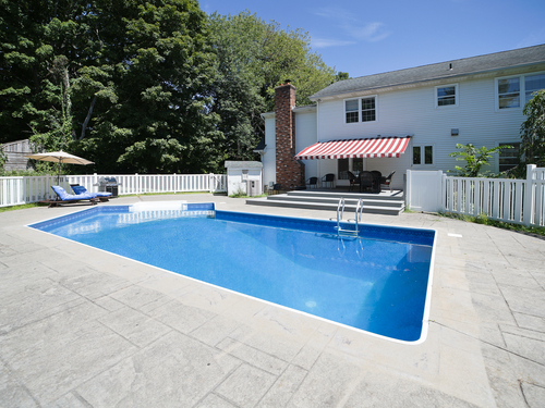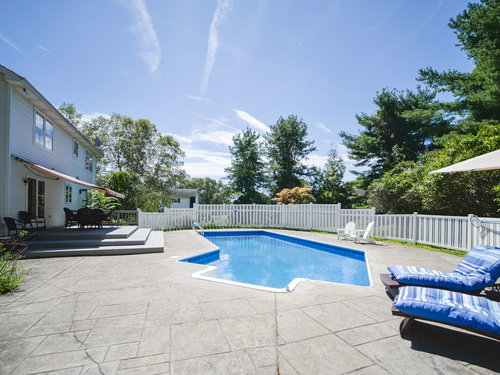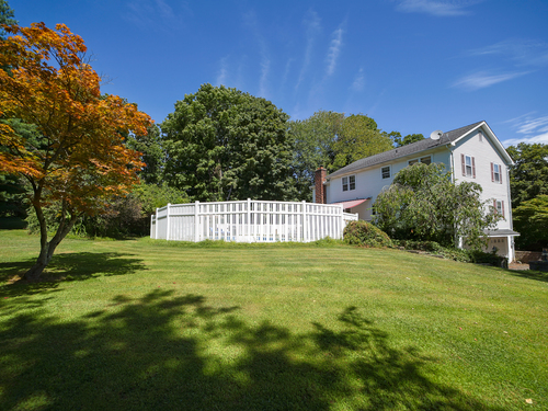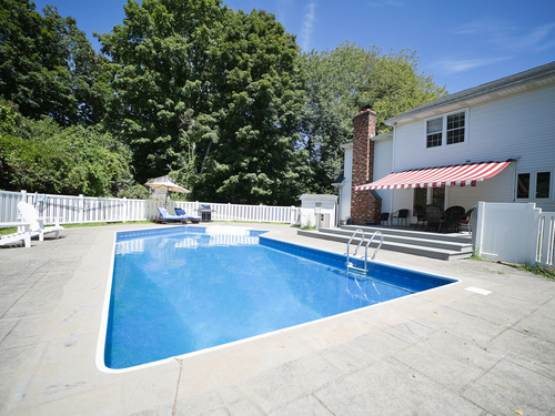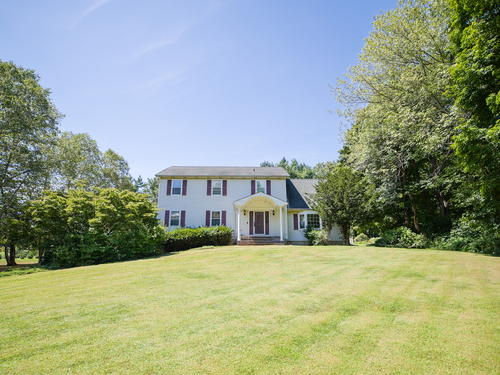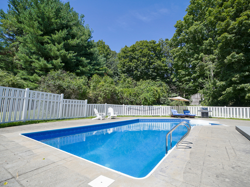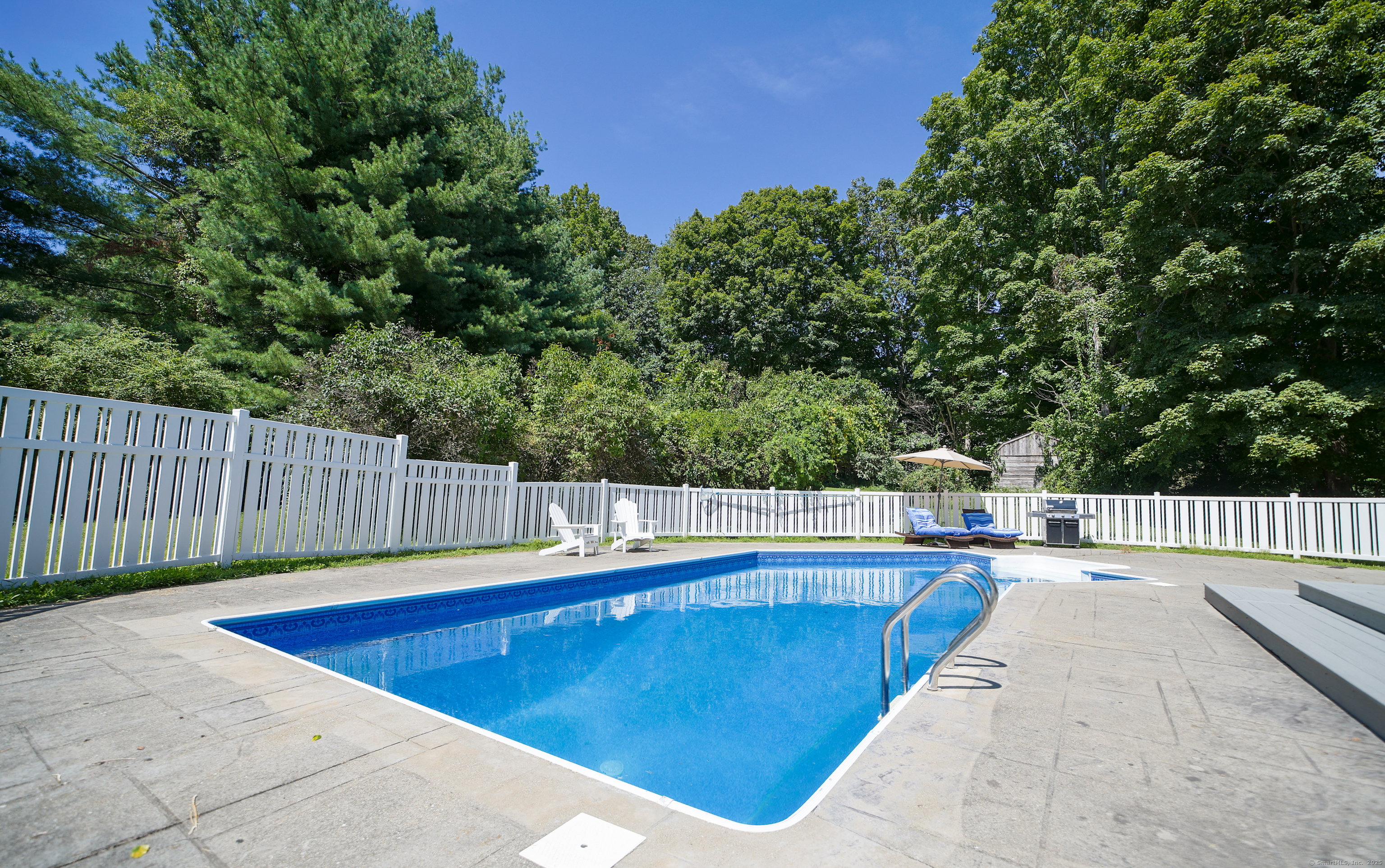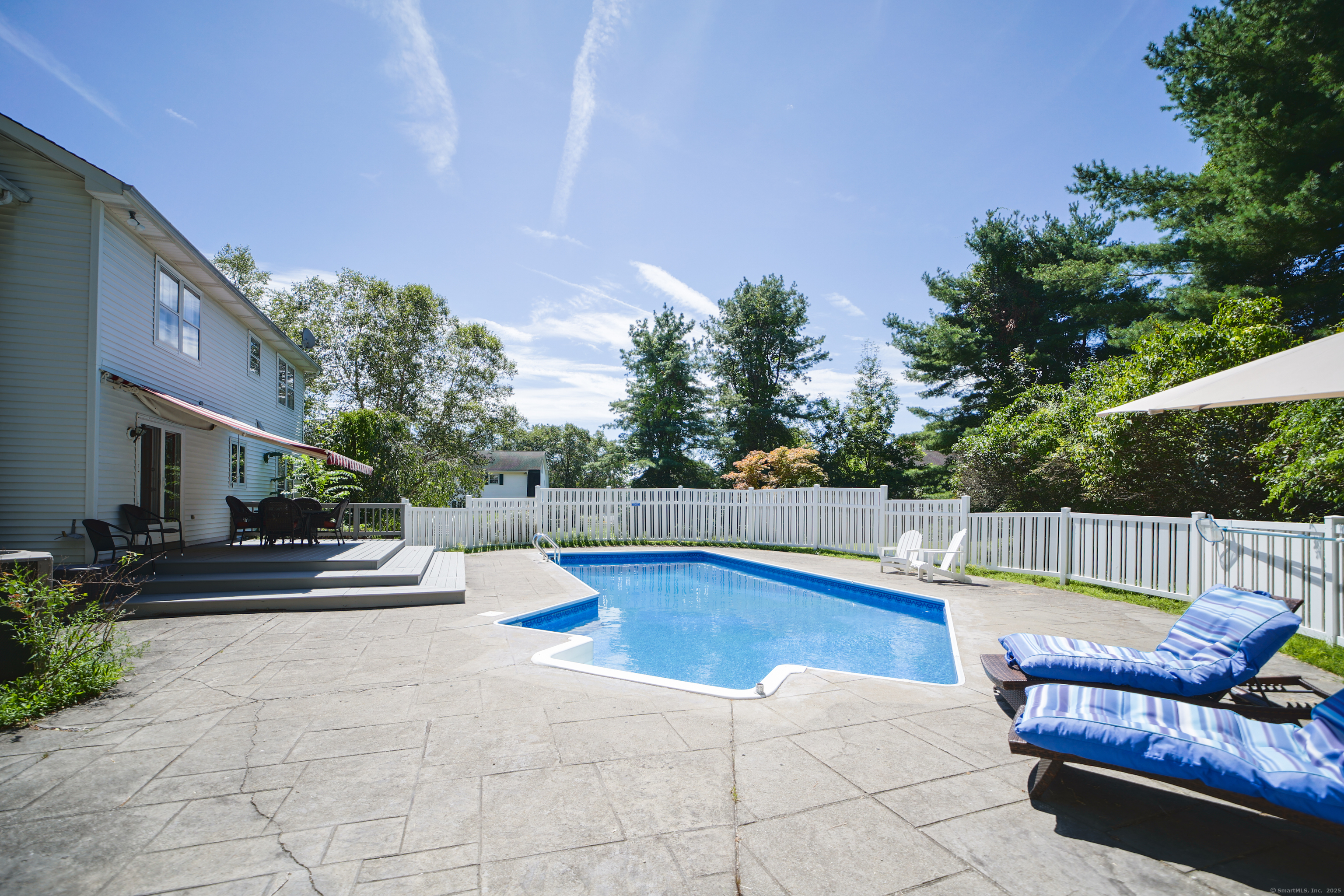 Welcome to this beautiful West Side 4-bedroom center-hall colonial in desirable New Fairfield. Set back from the road, the home makes a great first impression with lighted stone pillars and a nearly level driveway. Inside, a wide foyer opens to a spacious living room and connects seamlessly to the formal dining room-ideal for gatherings. The kitchen is both functional and inviting, with ample cabinets, modern appliances, and a sunny eat-in area. French doors lead to the back deck where you can enjoy sunsets overlooking the heated inground pool. The sunken family room, complete with a cozy fireplace, offers the perfect spot to unwind. Upstairs are four generously sized bedrooms with hardwood floors throughout, including a serene primary suite with its own bath and space to relax. The lower level provides a two-car garage, laundry, recreation room, and storage. Outside, your private oasis awaits with a fenced-in pool, patio, and yard designed for summer fun and entertaining. Located close to schools, shopping, restaurants, recreation, and major highways, this home blends comfort, convenience, and lifestyle-truly a place to love.